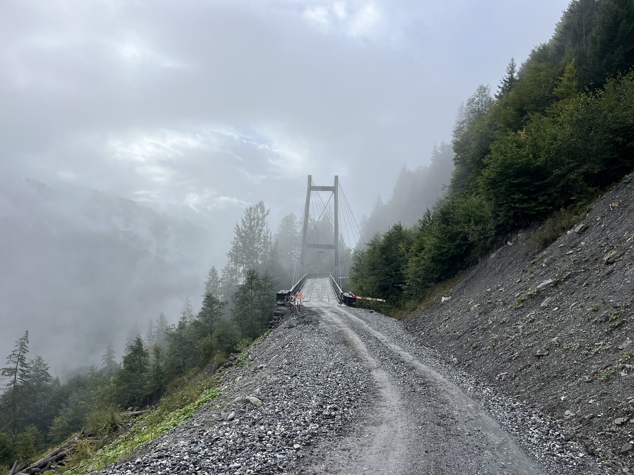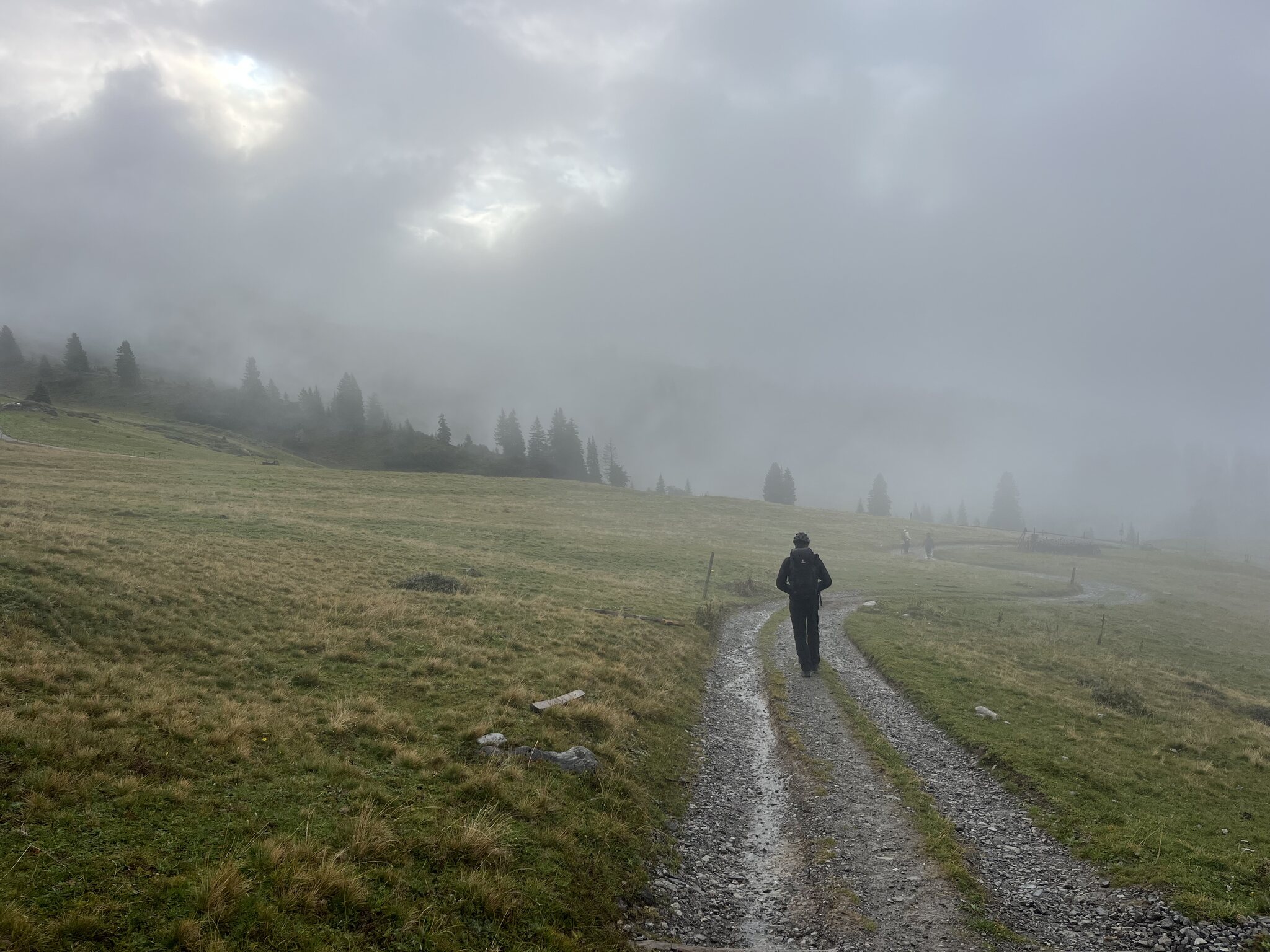 In SAC-Hütten ist ein frühes Frühstück nicht ungewöhnlich. Längeres Warten hätte vermutlich auch nicht allzu viel gebracht. Zwar hätte es dann nicht mehr geregnet, aber die Strasse wäre wohl noch lange nass gewesen und hätte gespritzt.
