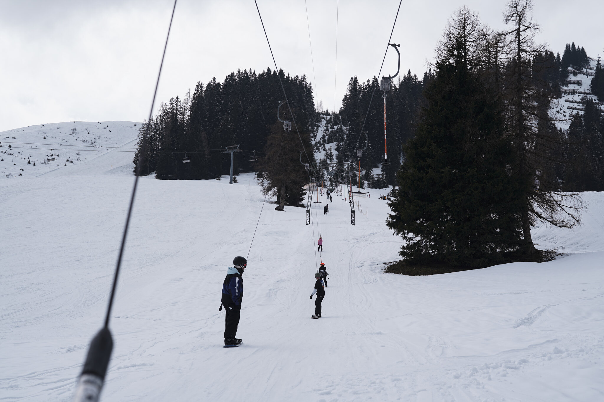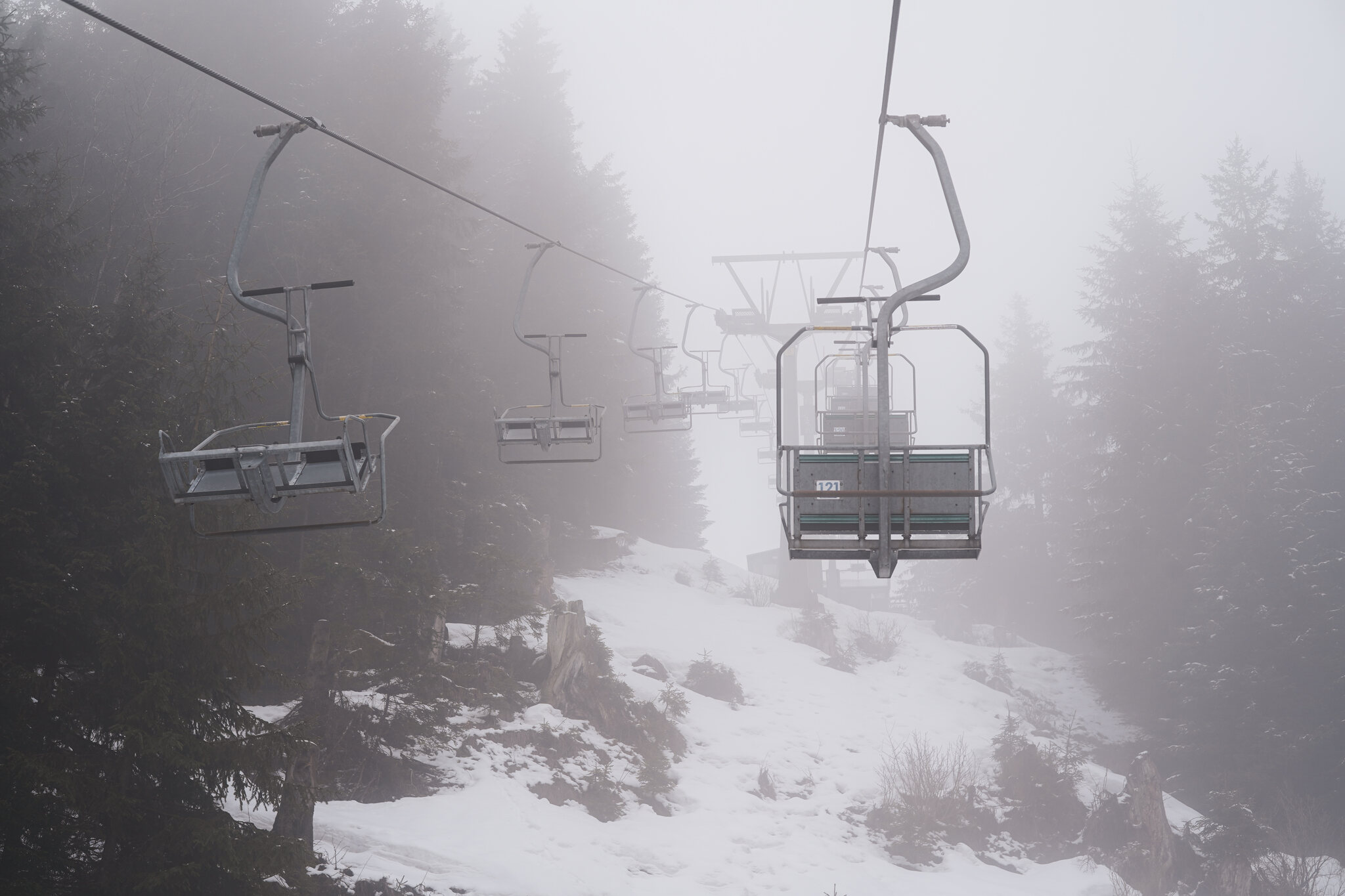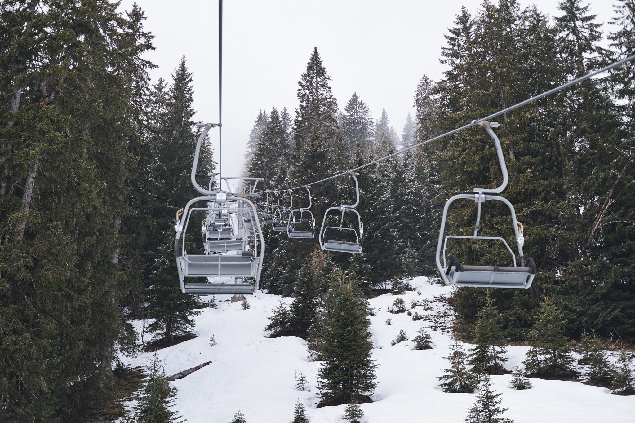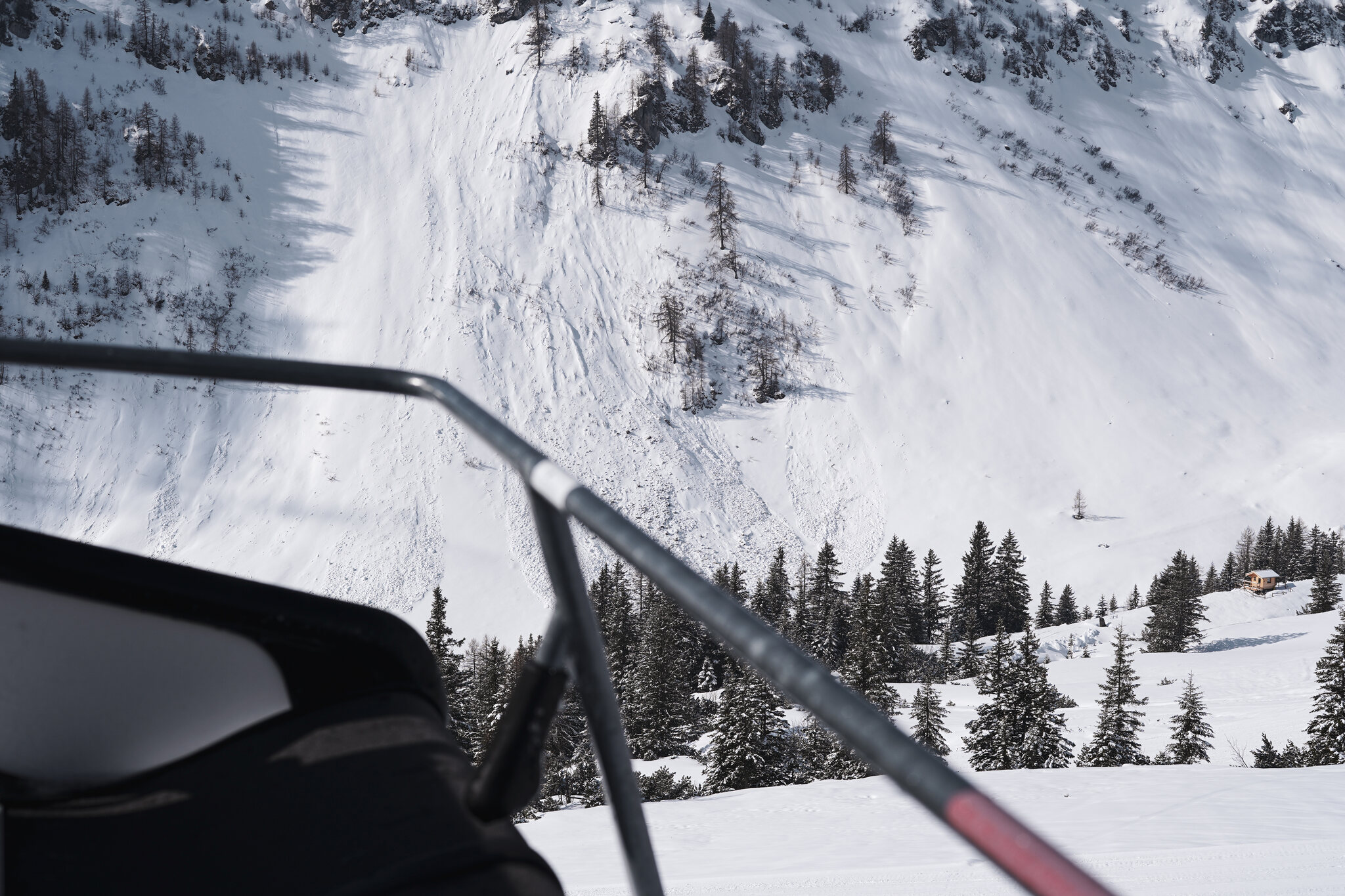Beim Auswählen der Bilder habe ich mir noch überlegt ob es überhaupt auffällt, aber offenbar werden die Fotos sehr genau angeschaut. Am letzten Betriebstag fehlte wohl die Motivation und der Lift drehte leer seine Runden. Nach der Fahrt wusste ich auch weshalb, die Stelle war von der Talstation aus nicht sichtbar. Ich war mit dem guten Material unterwegs und bin zum Glück ohne Kratzer davongekommen.