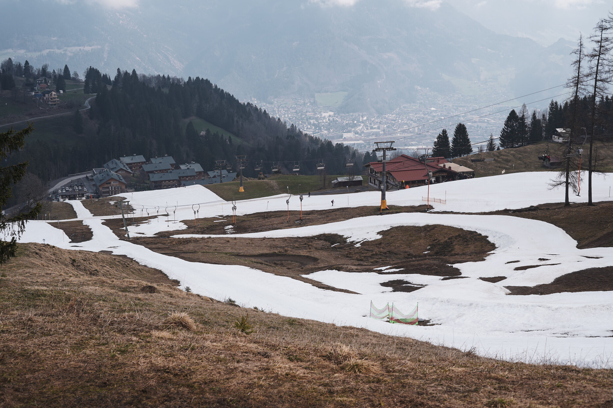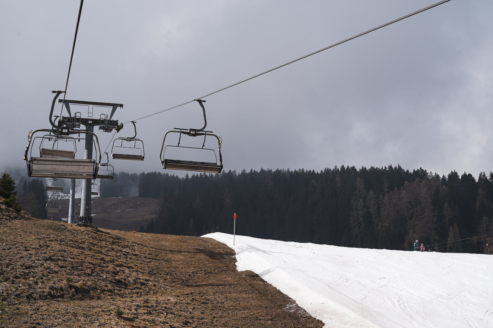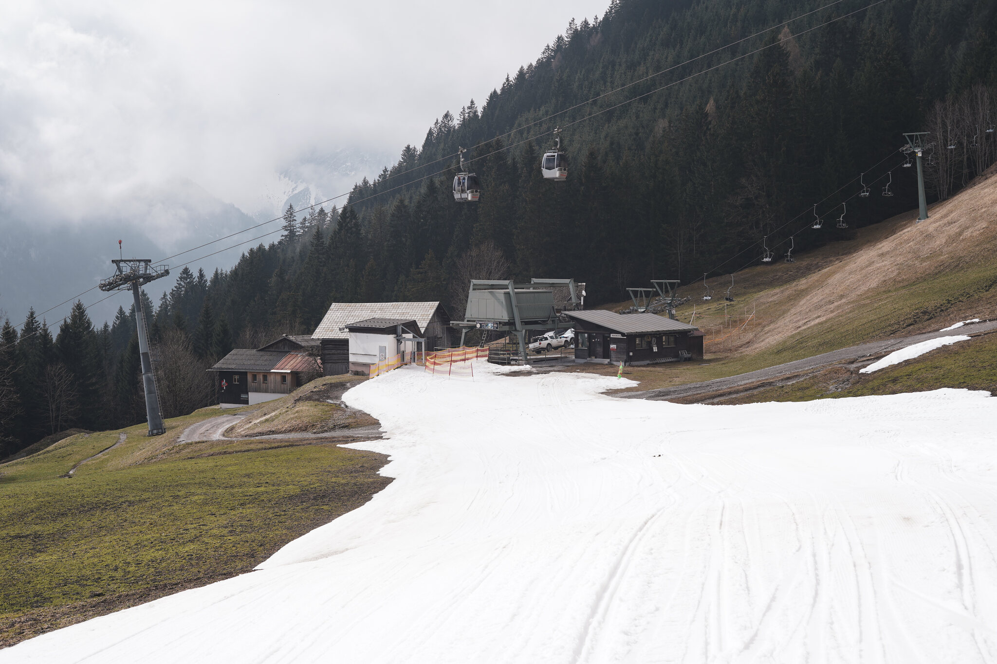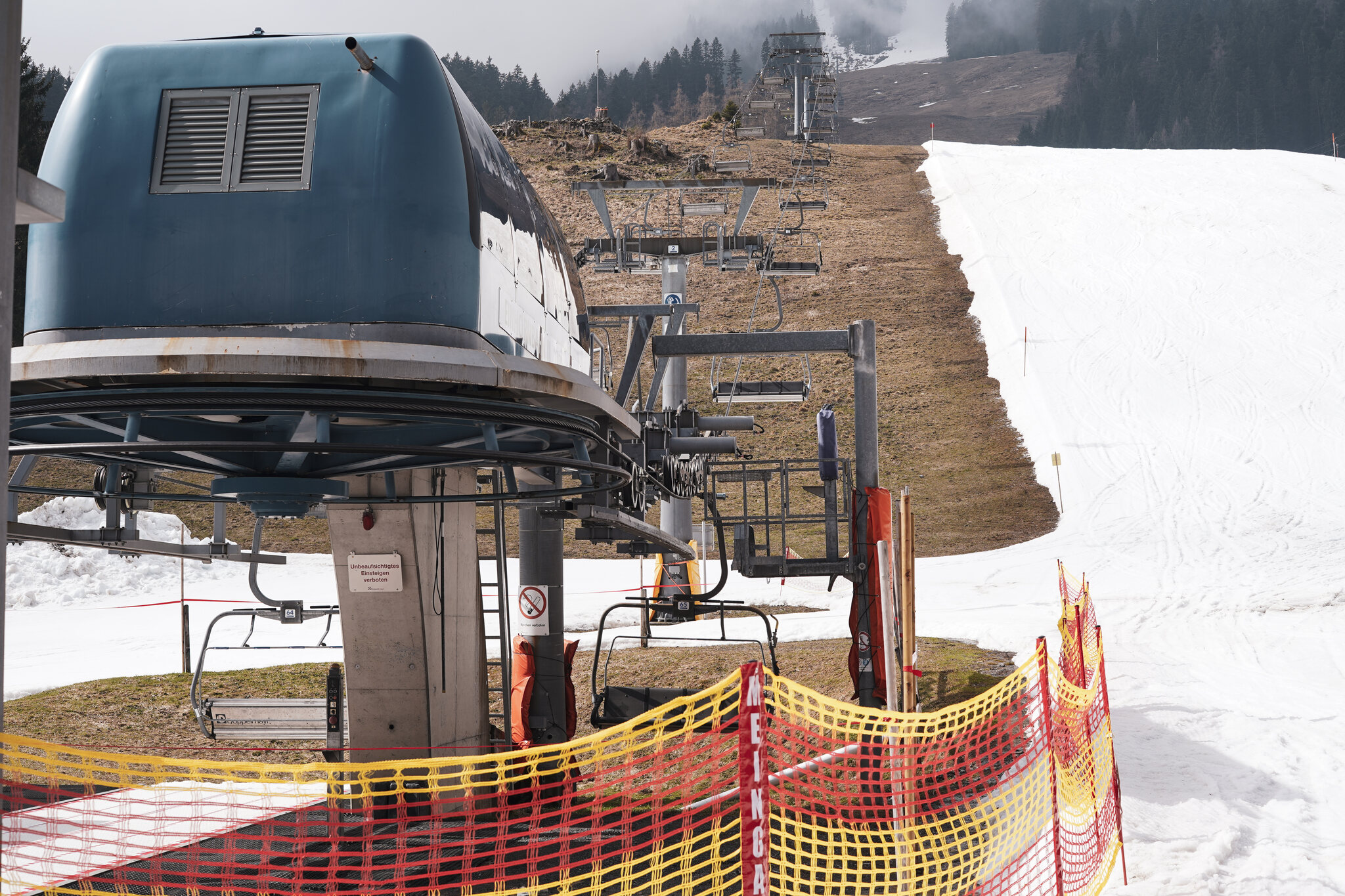 Beim Skilifttrasse fehlt ein Stück Schnee