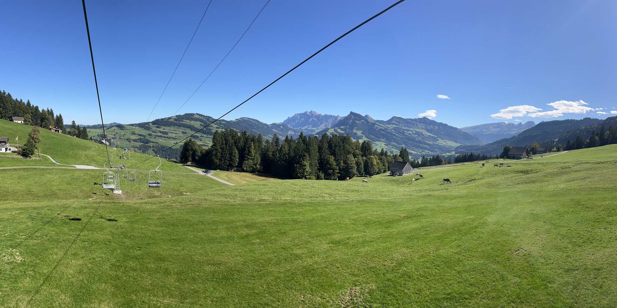 Zuerst ein Besuch der Wolzenalp. Mit 1.5m/s tuckert die DSB in 25min nach oben. Nach diesem Besuch weiss ich, dass ich hier im Winter nie vorbeikommen muss. Viel dümmer kann man ein Skigebiet kaum mehr anlegen. Aber immerhin gibt es ein Pistenfahrzeug mit Winde. Bei der Talfahrt bietet sich ein Panorama, das man bei dem dümmlich platzierten Bergrestaurant nicht hat. Anschliessend fahren wir nach Wildhaus. Der Schönenbodensee (in einzelnen Quellen auch Schönebodsee ua. genannt) ist ein Bijou. Wieso man den so doof mit einer Badi umzäunen muss, erschliesst sich mir nicht. Aber immerhin hat man auch bei geschlossener Badi Zutritt.