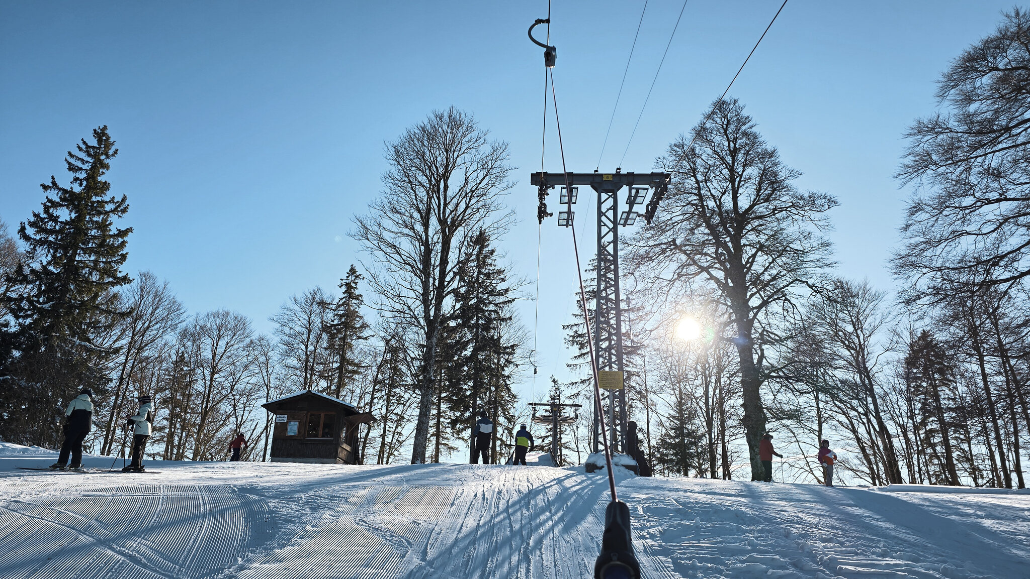 Die Pisten sind nicht lang, nicht spektakulär, aber genau darin liegt der Charme. Vor allem der Blick über die nördlichen Jurahöhen und die umliegenden Dörfer verleiht dem Skifahren hier eine besondere Note. Wenn alles verschneit ist, entfaltet sich ein malerisches Panorama, das man in dieser Form im Jura nur noch selten antrifft. Der einzige Wermutstropfen an diesem Lift ist der Einstiegsbereich. Er ist so unpraktisch angelegt, dass nicht selten ein Bügel leer den Hang hinaufschwebt, während sich unten eine kleine Schlange bildet. Ein mühsames Schauspiel, das man mit etwas Geduld hinnehmen muss.