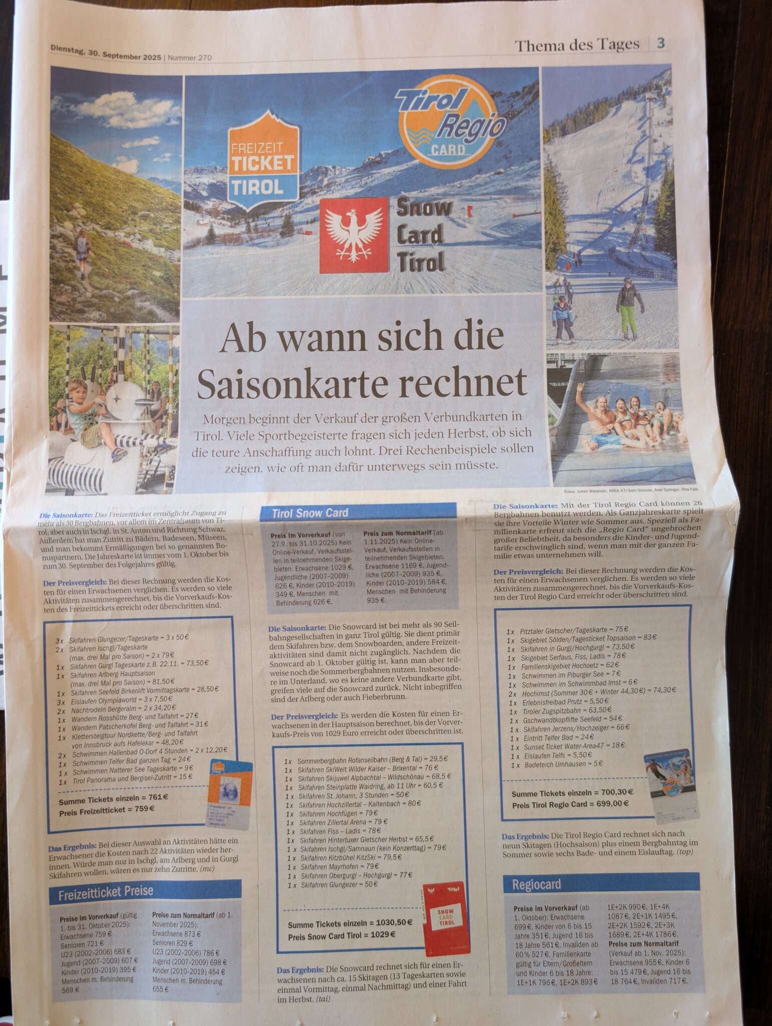 In der Tiroler Tageszeitung ist heute ein Vergleich von 3 Saison/Jahreskarten.