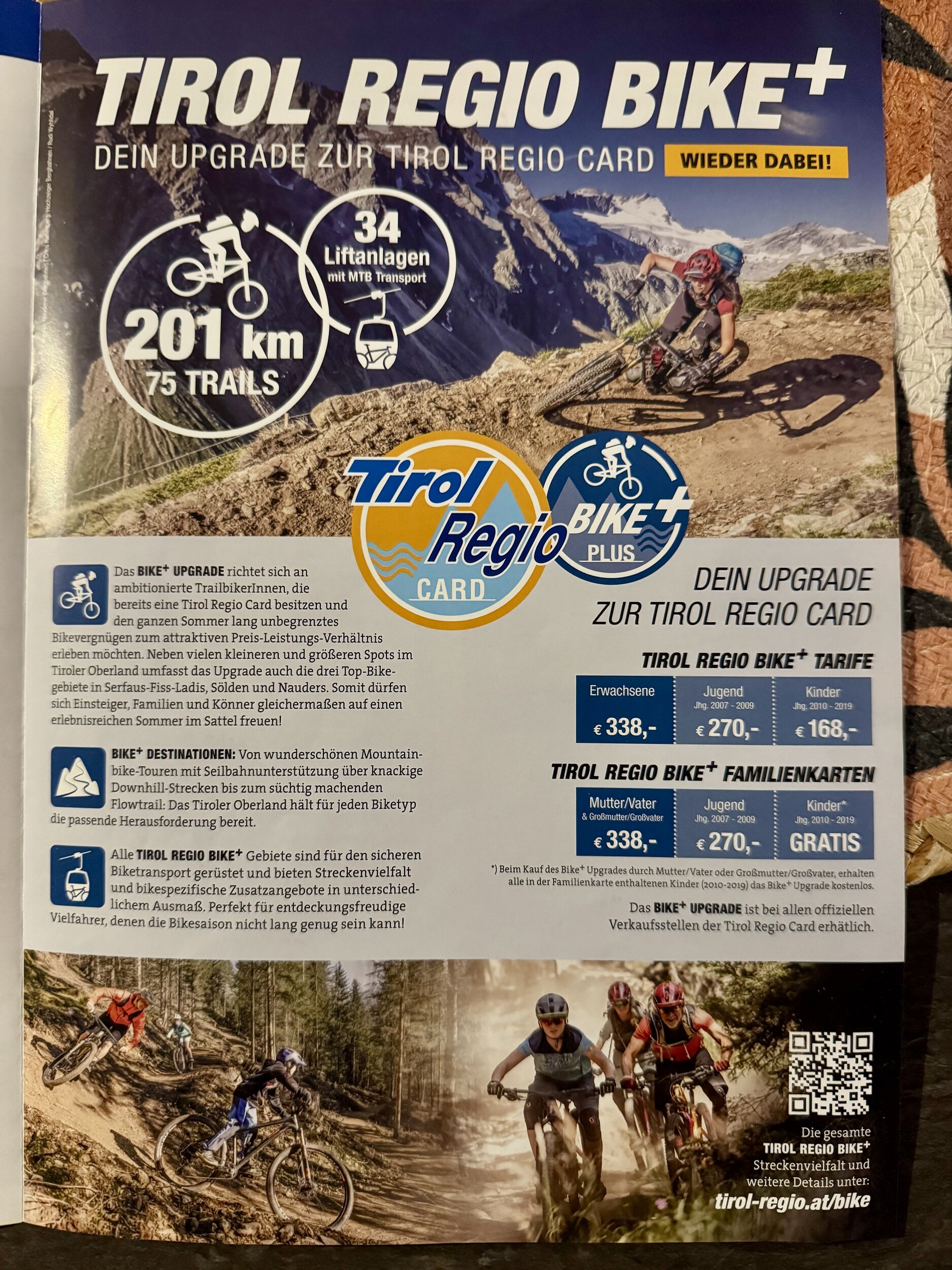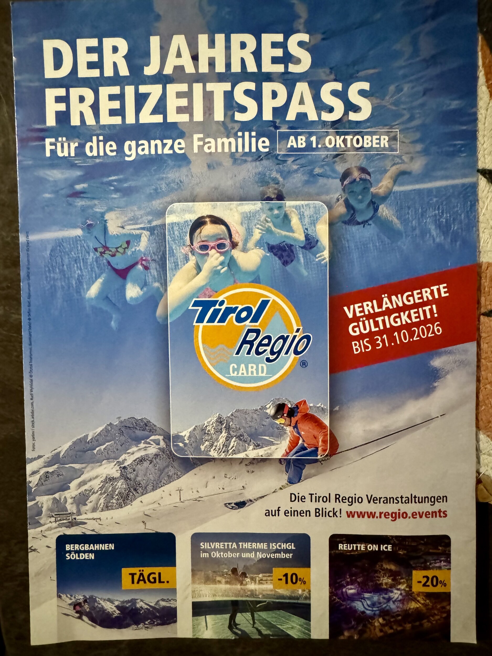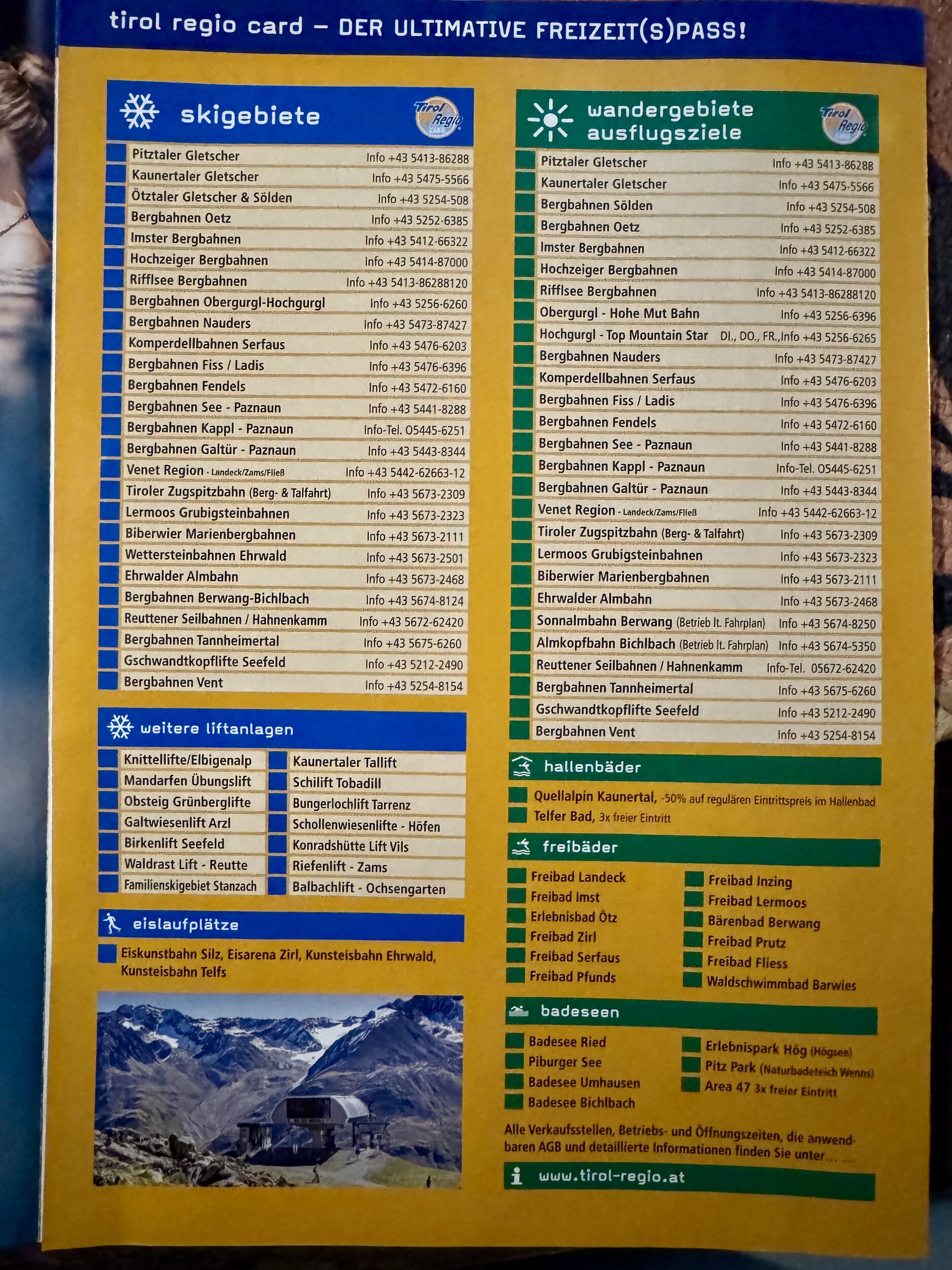 So, anbei endlich mal ein aussagekräftiges Prospekt für die Tirol Regio Card. Einheimische kommen da einfach ran, Touristen wird es schwer gemacht. Am besten mit Kindern, Ausweisen, Fotos und zur Sicherheit noch Geburtsurkunden mitbringen!