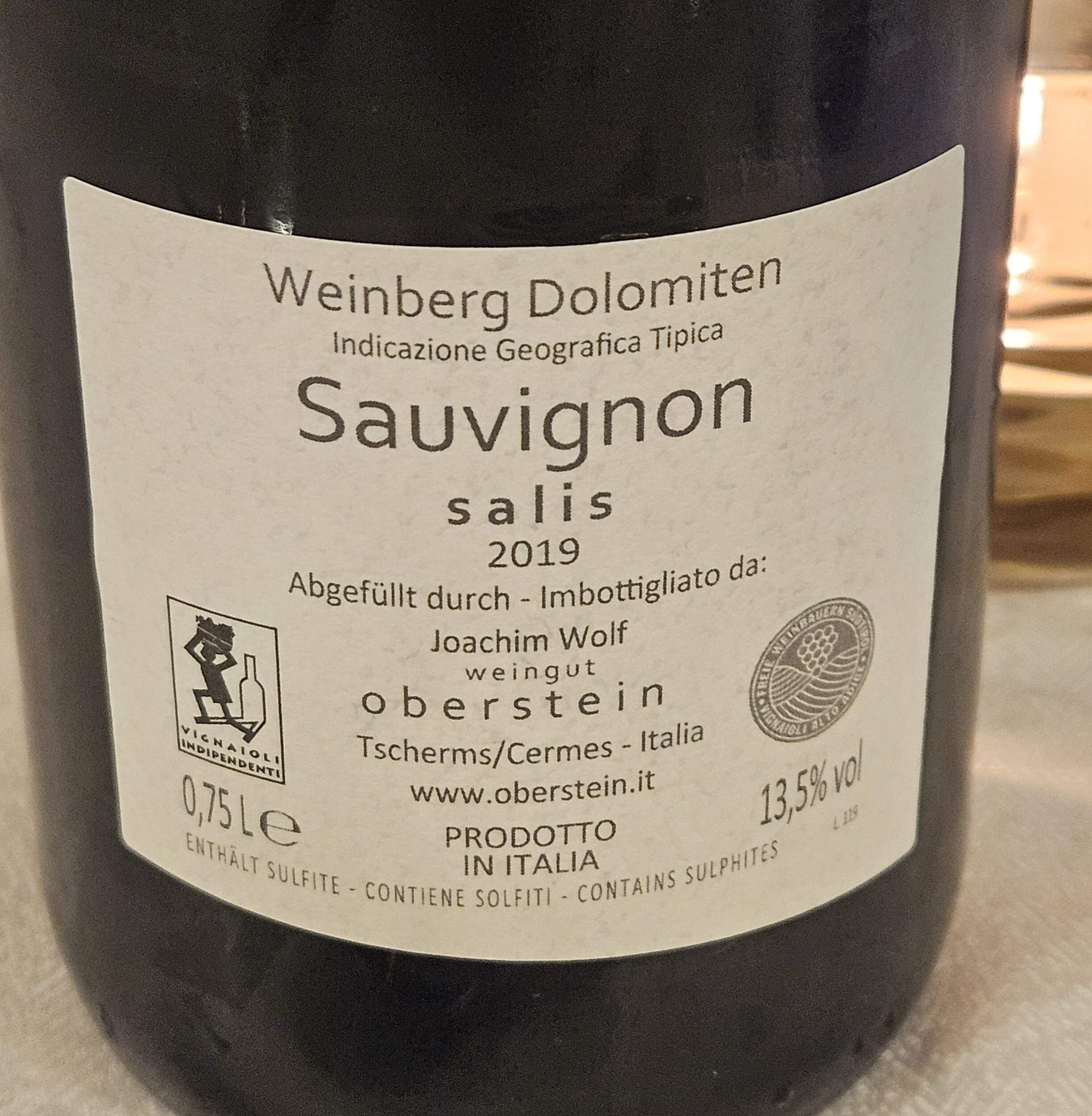 Begleitet wurde das ganze von einem gereiften Sauvignon Blanc Solis vom Weingut Oberstein in Tscherms. Jahrgang 2019 mit 13,5 Vol%. Mit leichten Reifenoten bei Sauvignon-typischer Stachelbeere ging das sehr schön zum Menü