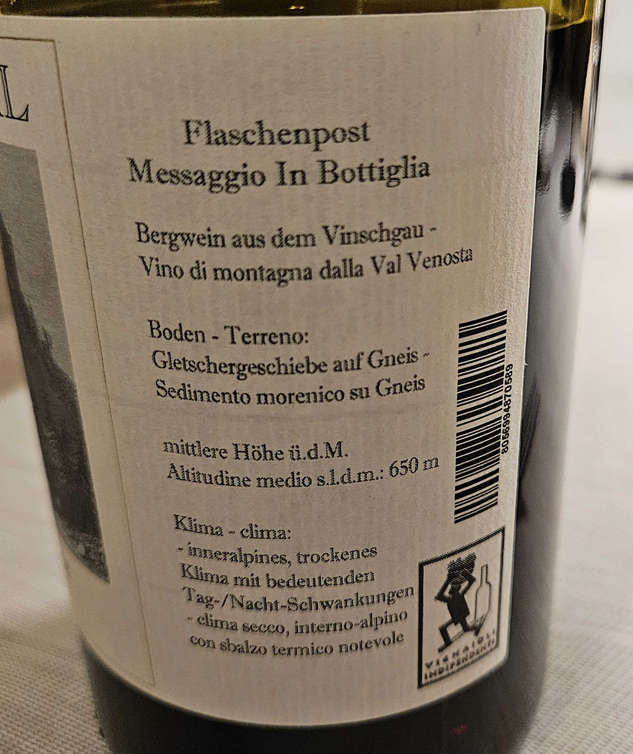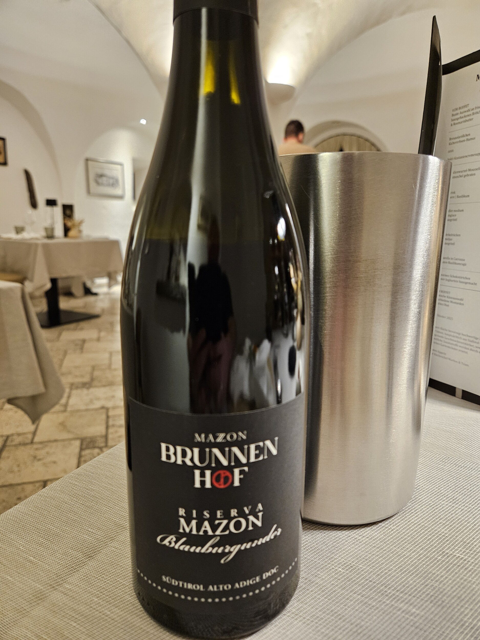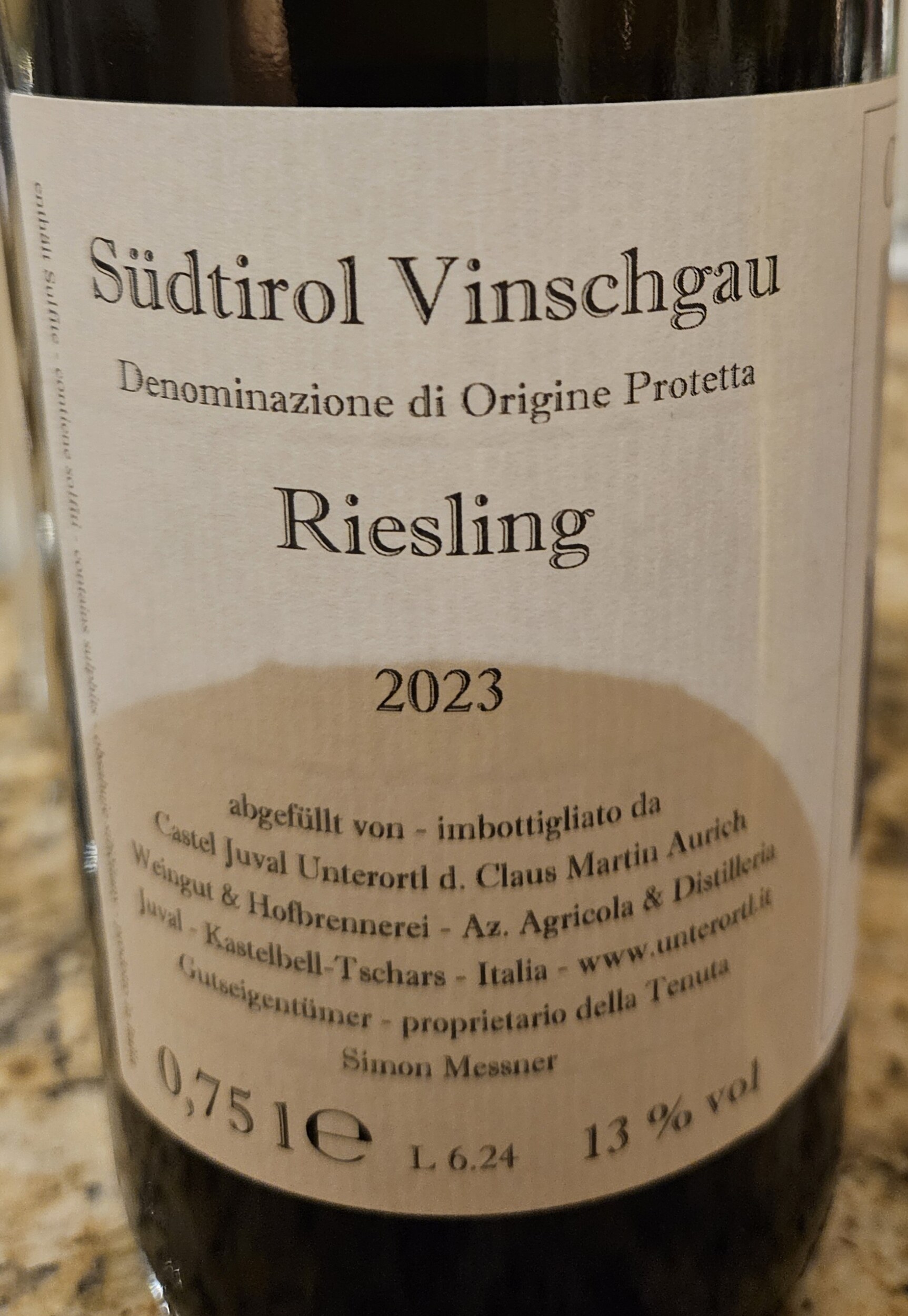 In der Bar habe ich jetzt noch 2024er Riesling Gletscherschliff von Juval/Unterortl mit 12,5 Vol% im Glas. Erster Jahrgang der neuen Pächter. Ich spüre keinen Qualitätsabfall