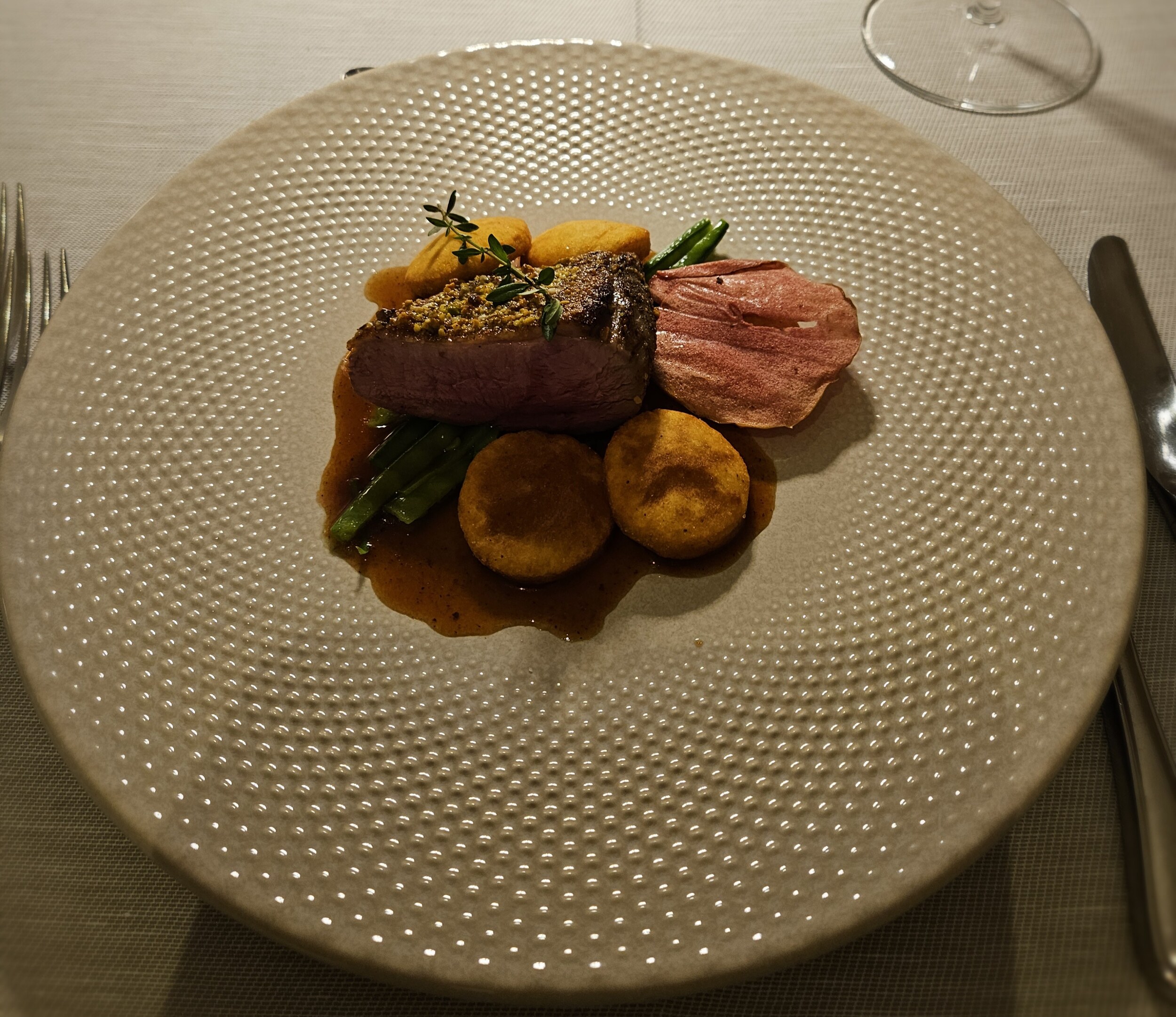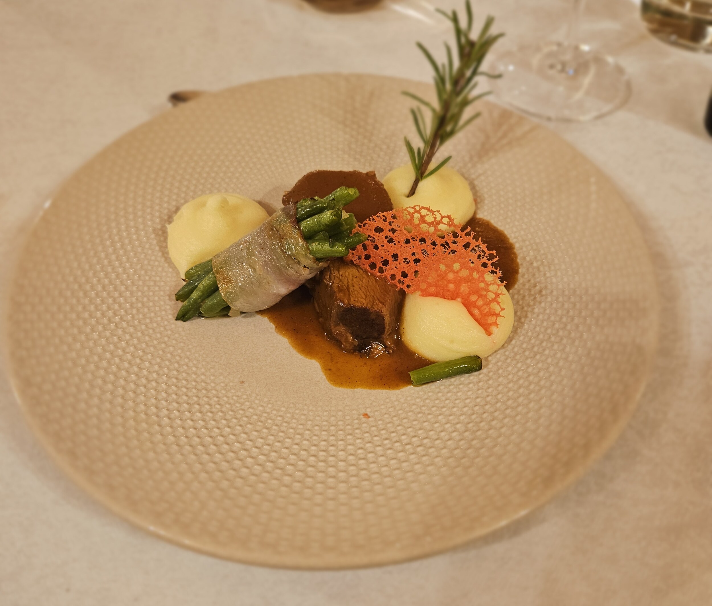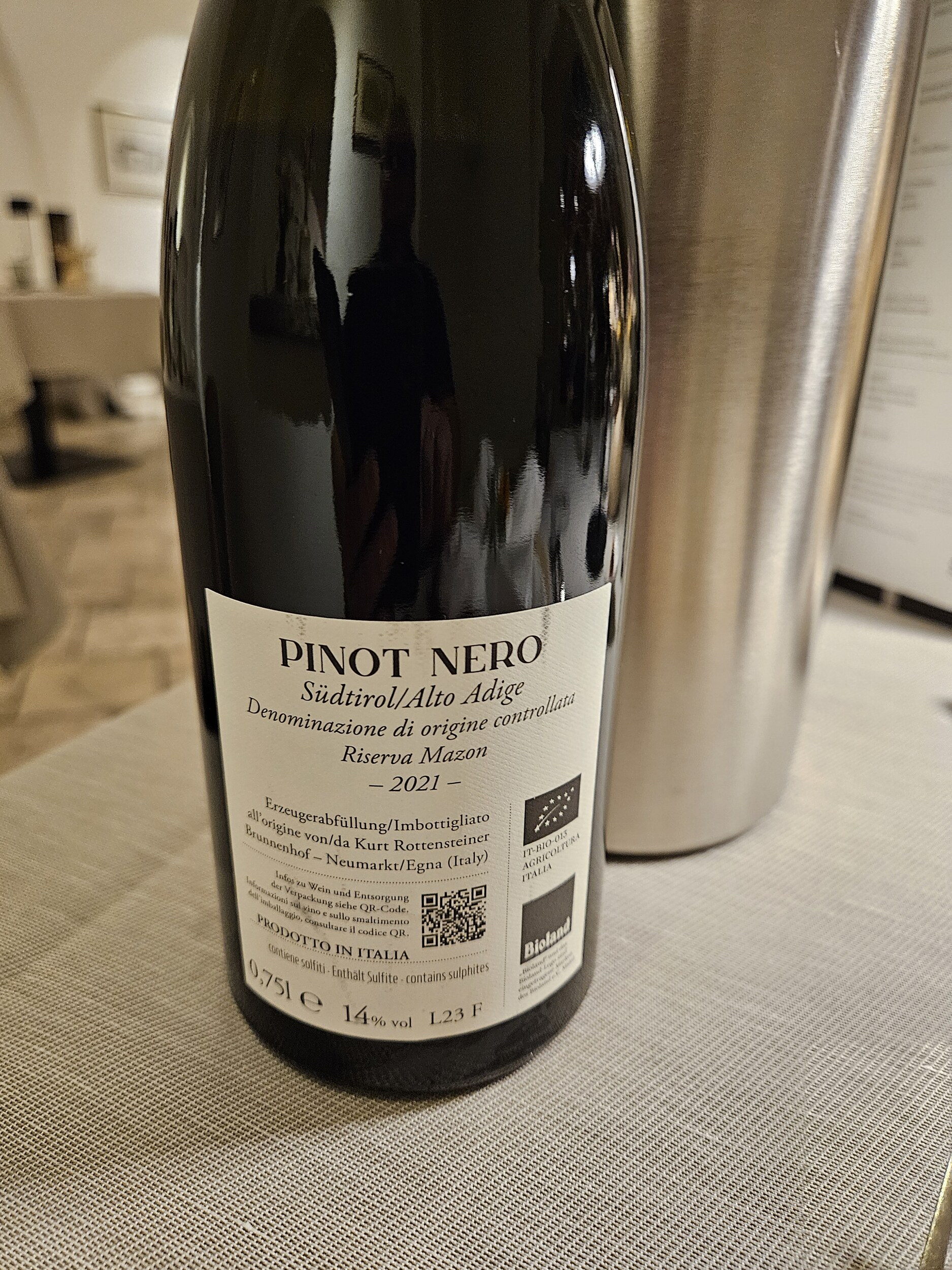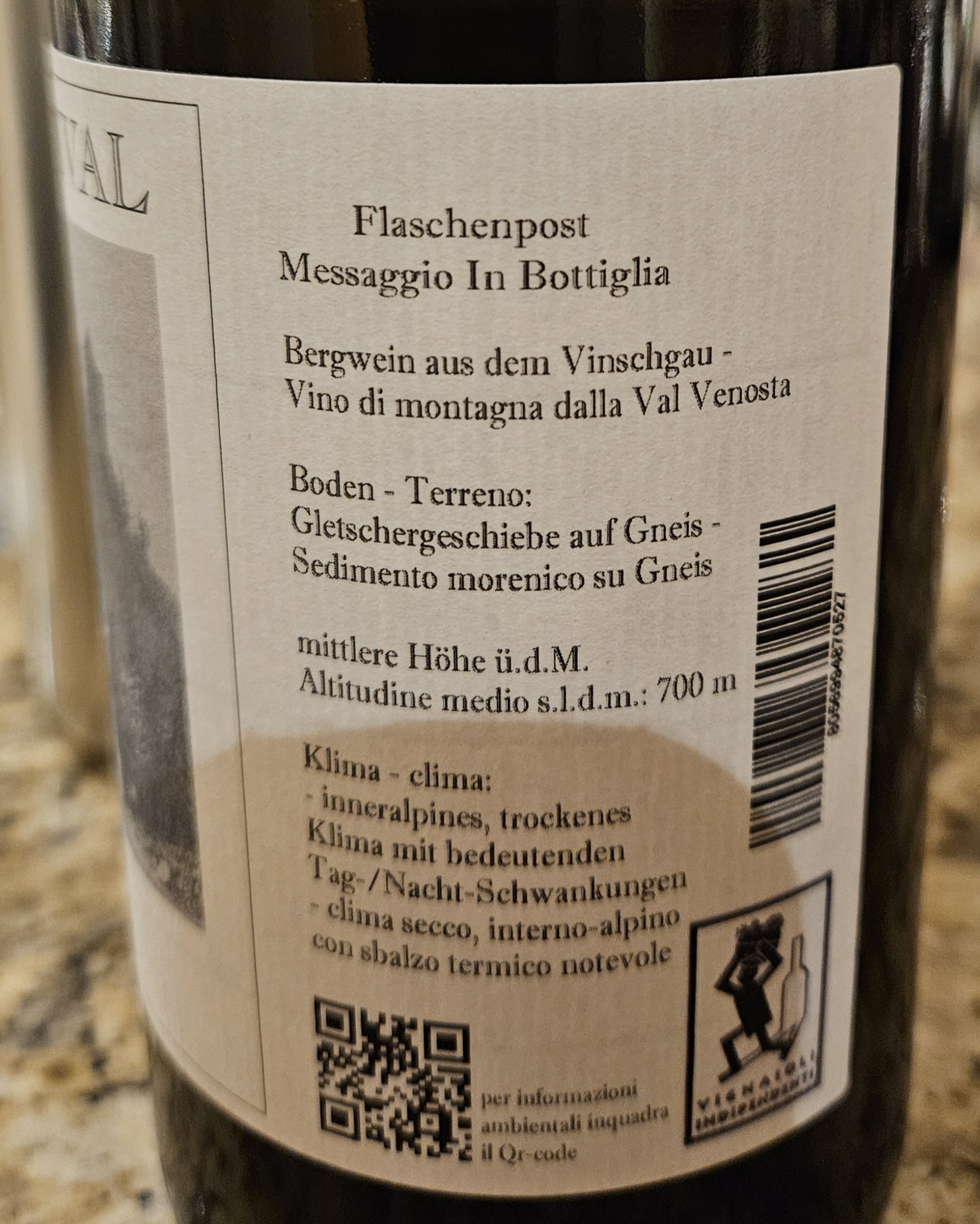 In der Bar habe ich jetzt noch 2024er Riesling Gletscherschliff von Juval/Unterortl mit 12,5 Vol% im Glas. Erster Jahrgang der neuen Pächter. Ich spüre keinen Qualitätsabfall