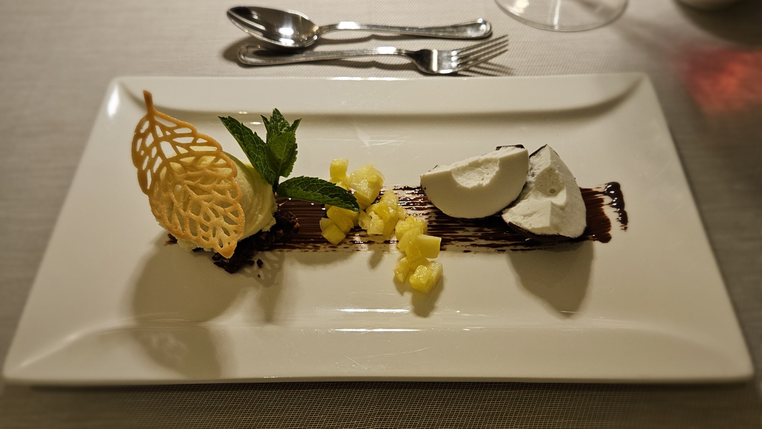 Hauptgang dann ein schönes Rehgulasch mit Dinkelspätzle und auch die Pina-Colada-Variationen zum Dessert wussten wieder zu überzeugen; vor allem das alkoholisch inspierierte Sorbet
