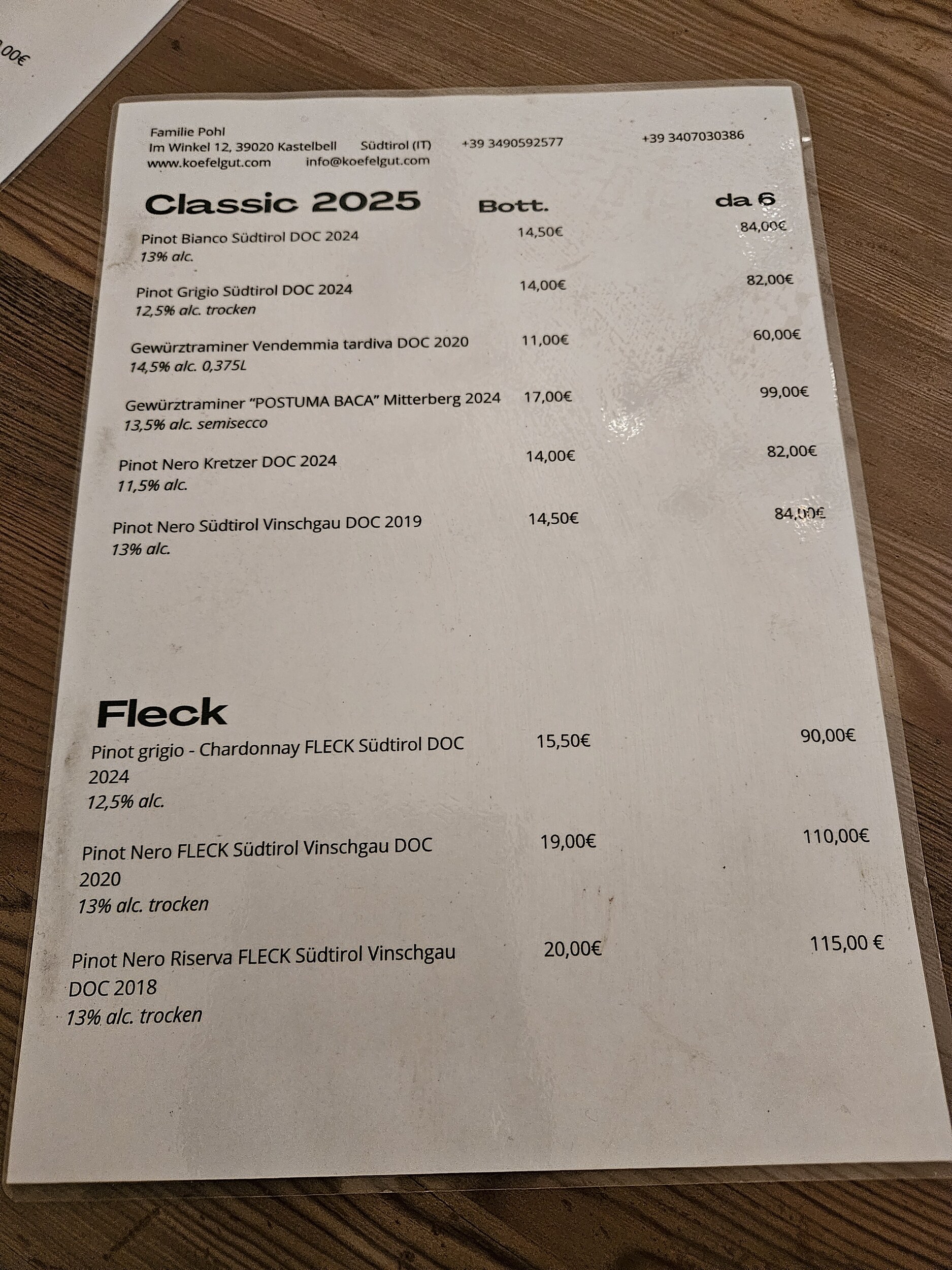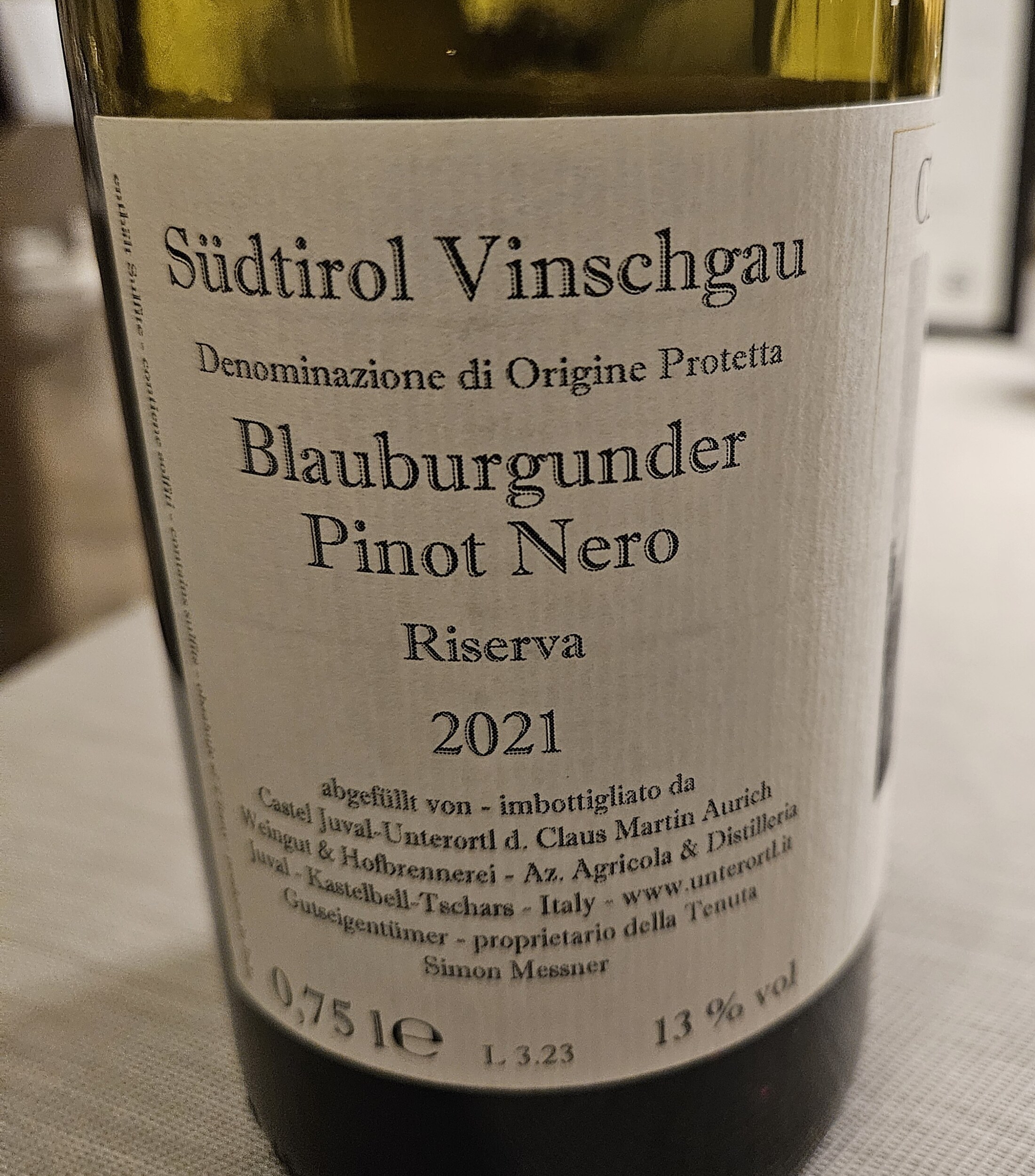 Der 2018er Blauburgunder Riserva mit deutlich ausgeprägteren Holznoten; hat sicherlich Anhänger und ist gut, aber persönlich fand ich die "einfacheren" schöner.