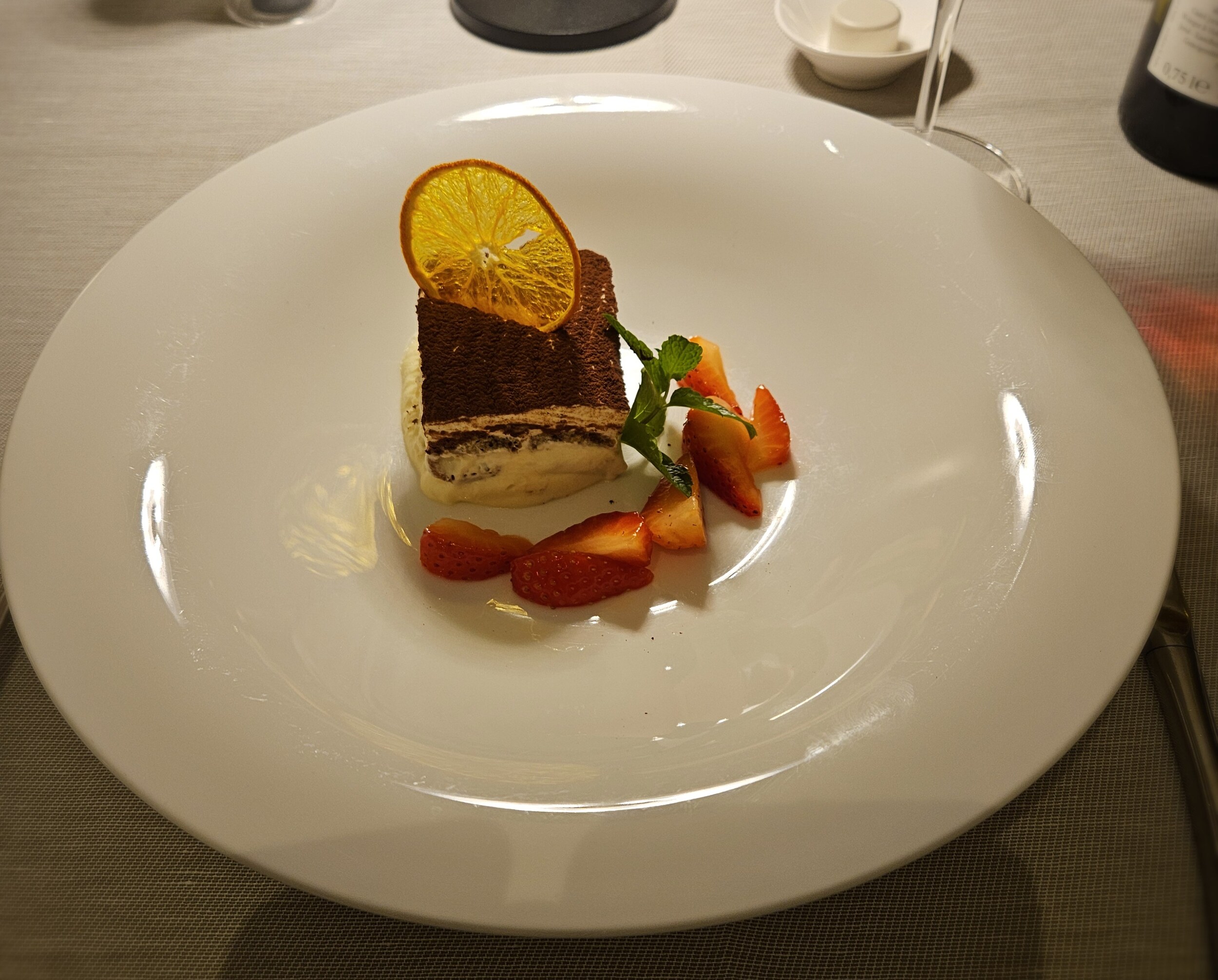 Nach einer Weinberatung für den Nachbartisch dann der Höhepunkt des Abends; die Entenbrust gefolgt von leckerem Tiramisu mit Erdbeeren (wohl in der Tat eingelagert aus Freienfeld). Und Käse gab es natürlich auch