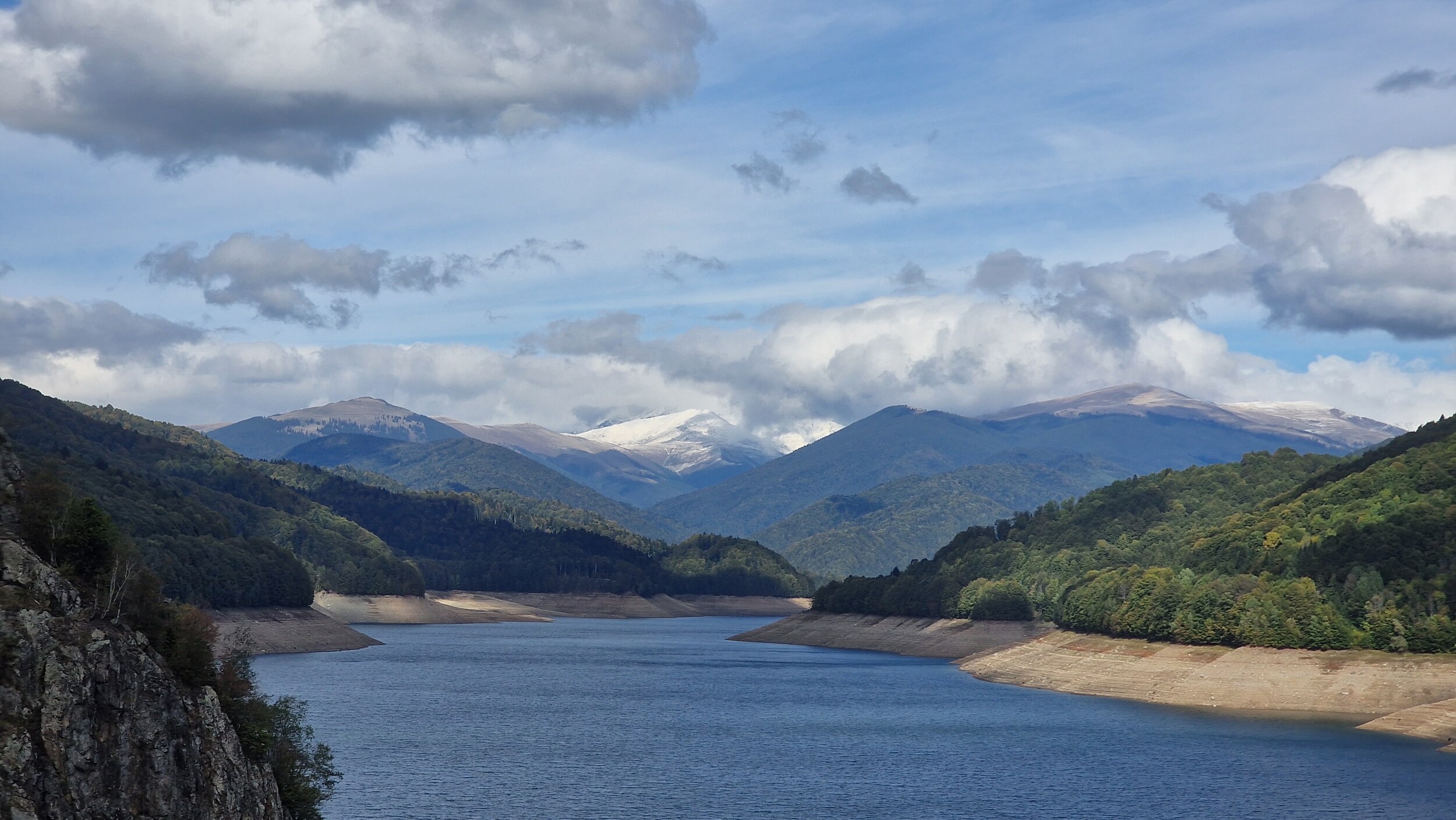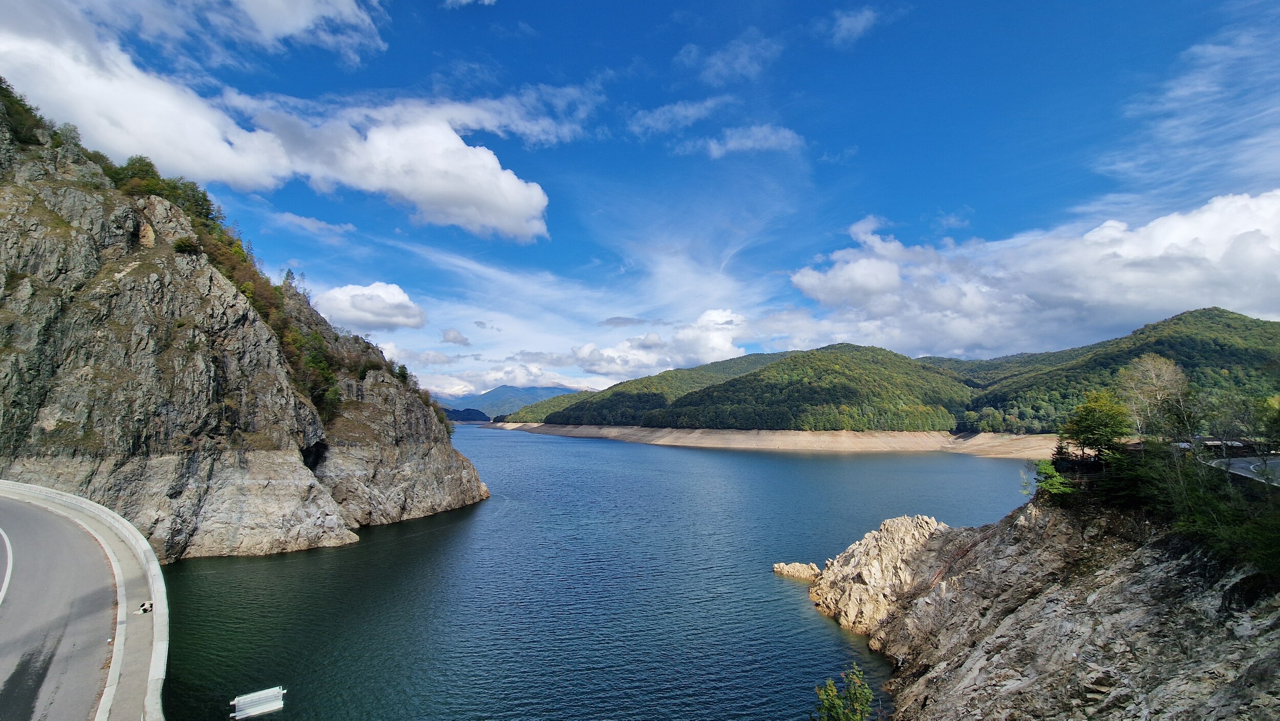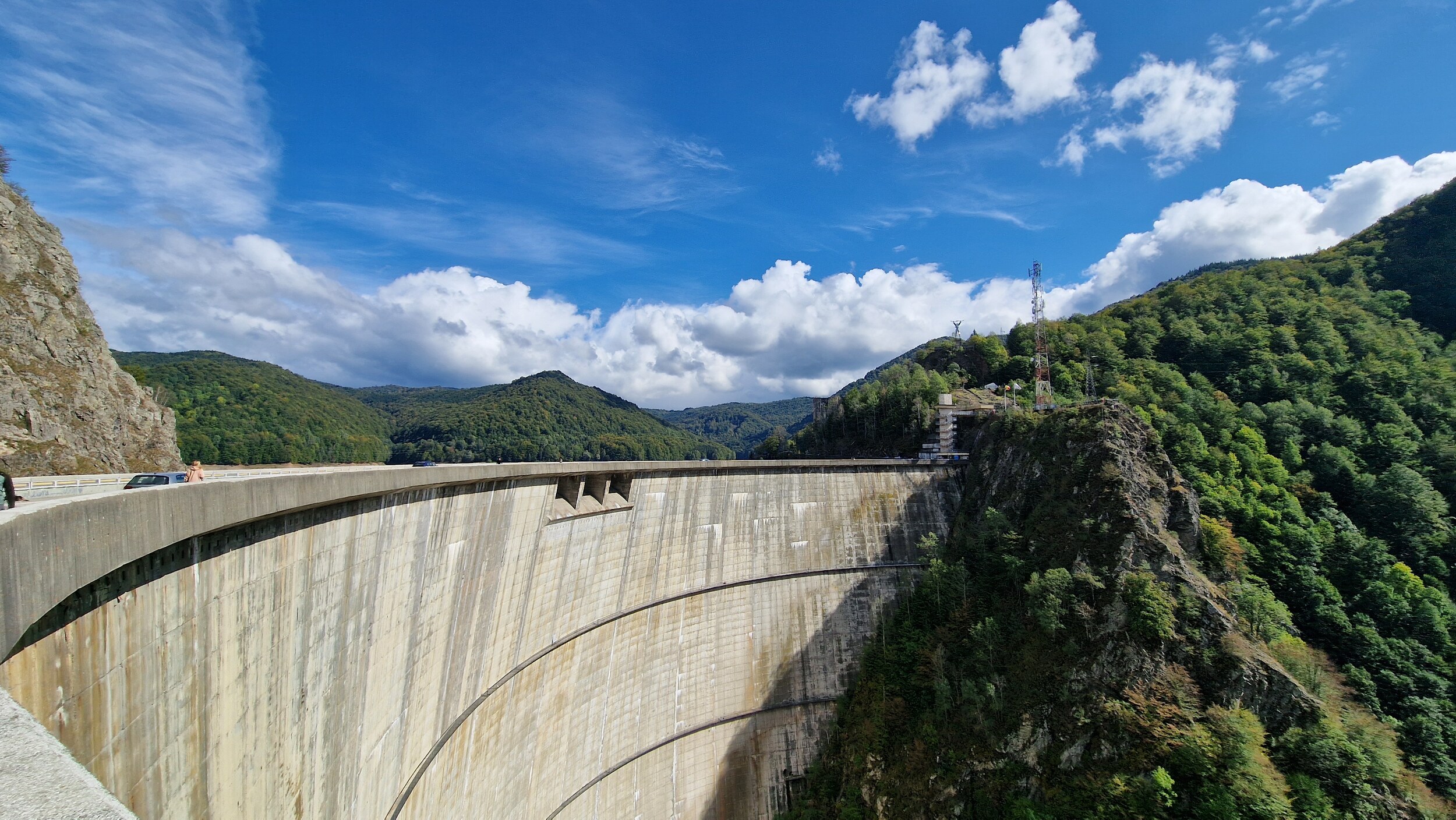 Nach einer Krisensitzung um 11 Uhr in Argisch entschieden wir uns dann dennoch dafür, einfach mal draufloszufahren. Schnell passierten wir die ersten Schilder, welche alle besagten, dass die Straße geöffnet ist. Dies gab uns immer mehr Hoffnung, dass es heute doch klappen könnte. Das Wetter in Argisch war perfekt. Kaum zu glauben, dass es dort oben schneien sollte. Direkt, nachdem wir die Dörfer hinter uns gelassen haben, fängt die Straße an steil zu werden und Schilder, die vor Bären warnen, stehen plötzlich überall. Das erste Highlight der Straße ist dann die Staumauer Vidraru. Oberhalb der Staumauer gibt es auch eine Aussichtsplattform, welche durch einen Metallzaun und einen weiteren Elektrozaun vor Bären geschützt ist. Bei diesen ganzen Sicherheitsmaßnahmen und den wirklich hunderten Schildern hatten wir große Hoffnung heute noch Bären sehen zu können, doch wir fuhren weiter und weiter den See entlang und obwohl wir akribisch Ausschau nach unseren braunen Freunden hielten, konnten wir keinen finden.