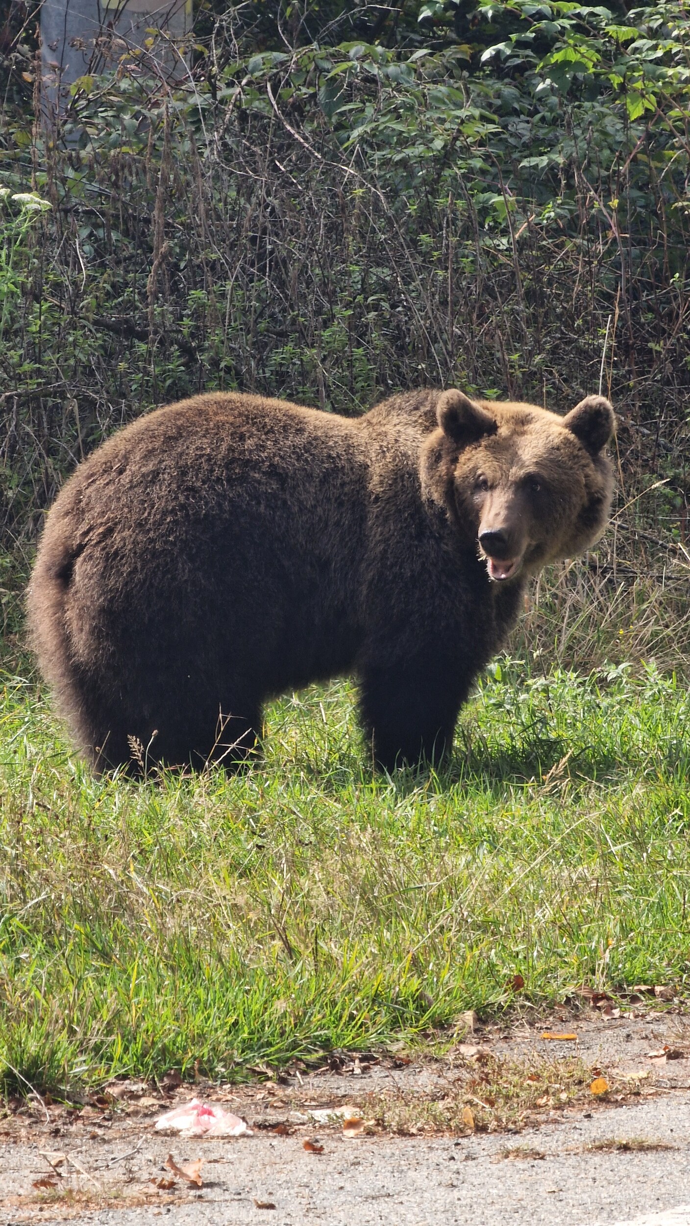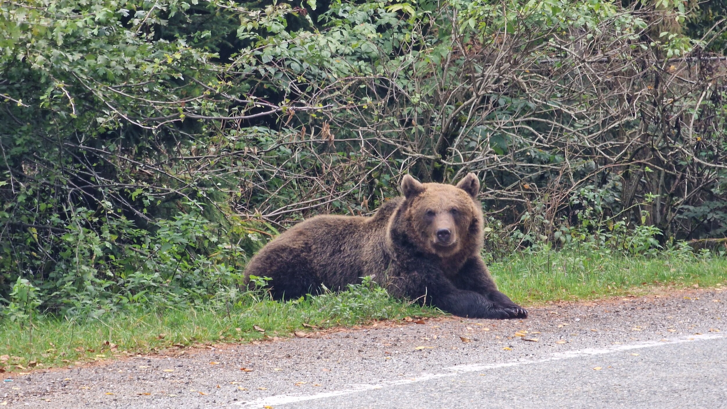 Als die Frustration auf ihrem Höhepunkt war saß dann plötzlich der erste Urs (Bär auf rumänisch, finde ich einen großartigen Namen) hinter der Leitplanke. Dank der rumänischen Fahrkultur kann man fast jederzeit mitten auf der Straße anhalten, solange man den Warnblinker betätigt. Nach gerade mal 500 m wartete dann schon der nächste, etwas kleinere Urs auf uns. Dieser hatte sich nicht hinter einer Leitplanke versteckt und so konnten wir nun auch einen Urs in seiner vollen Pracht erleben. Nur einige Minuten später stießen wir auf Urs Nummer 3, ich glaube bei ihm reicht es, wenn ich die Bilder sprechen lasse.