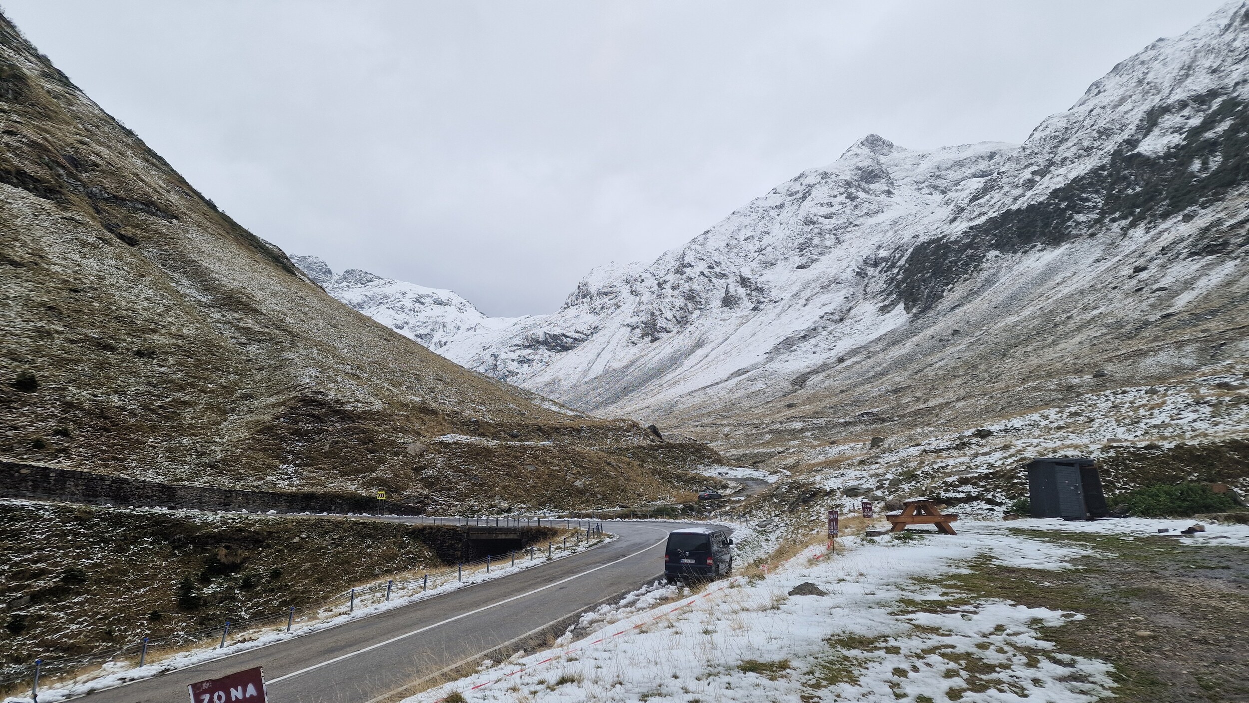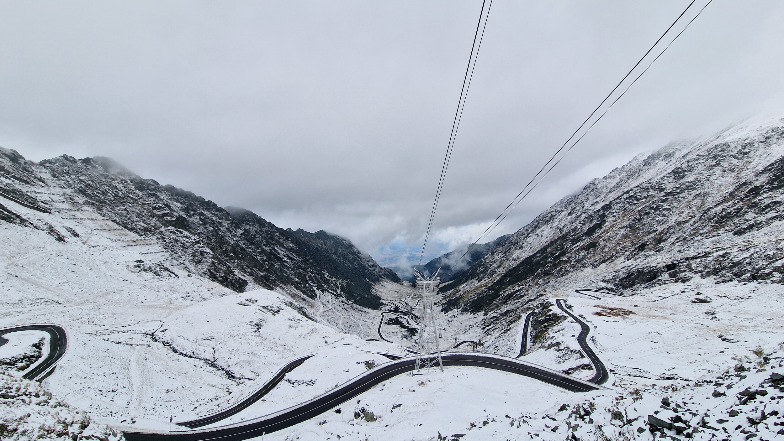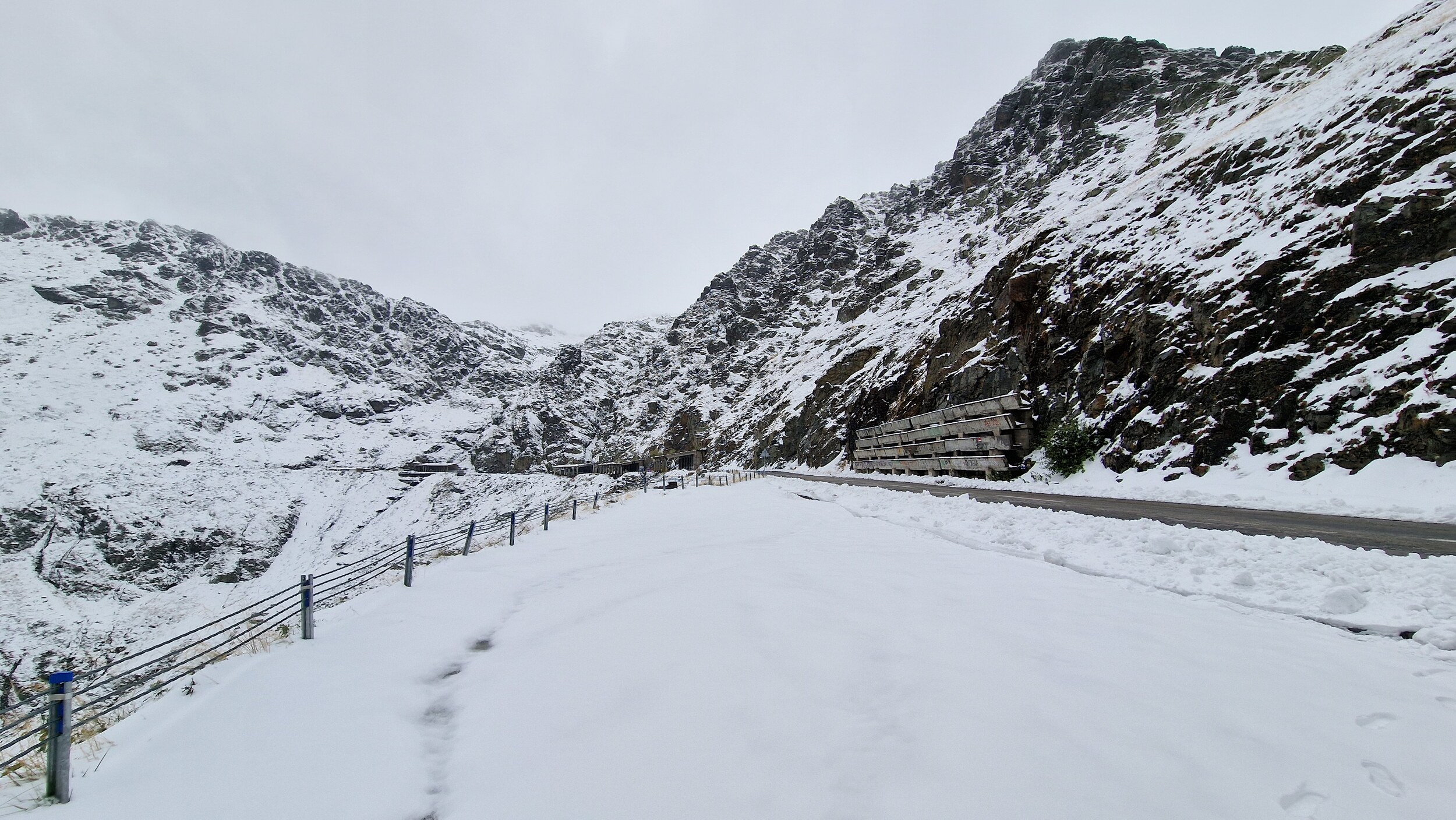 Die weitere Fahrt und der weitere Urlaub waren dann Ursi frei und so schlängelten wir uns langsam, aber sicher der Schneefallgrenze und der Passhöhe entgegen. Auf der Passhöhe werden Nord und Südseite per Tunnel verbunden. Nach einer langen und beeindruckenden Fahrt haben wir nun also die Passhöhe erreicht. Oben lagen 15-20 Zentimeter Schnee auf den Parkplätzen doch zu unserem Glück wurde die Straße geräumt. Da die Parkplätze nicht geräumt werden, mussten wir uns dann einfach irgendwo hinstellen, aber da es jedem so ging war das kein Problem. Oben schneite es ab und zu nochmal leicht und es war recht nebelig aber dennoch deutlich besser als wir es vor einigen Stunden noch erwartet hatten. Wir aßen noch einen Mais, was in Rumänien einfach dazugehört, schlugen uns durch die Weihnachtsmarktartigen Touriläden und machten einige Bilder. Dann ging es für uns schon wieder nach unten in Richtung Sibiu. Die Rückfahrt war bis auf das spektakuläre Panorama recht ereignislos, also keine Ursi-Sichtung mehr.