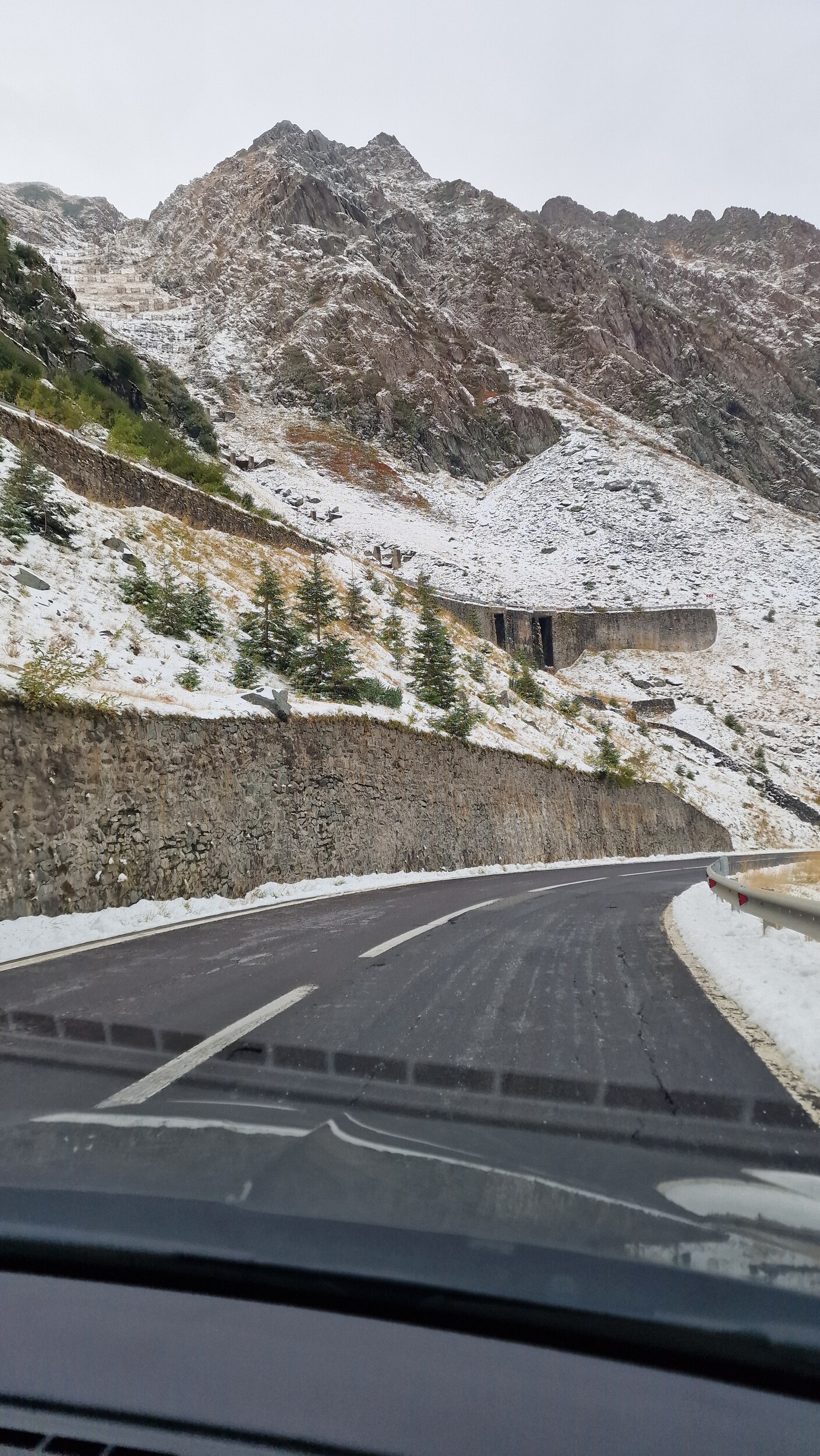 Wir haben uns am Dienstag, 30.09 auf den Weg zur Transfăgărășan gemacht, der Wetterbericht für die Woche war eher durchwachsen, tatsächlich sollte aber genau an diesem Dienstag das Wetter noch am besten werden. Wir haben die Nacht in Câmpulung verbracht und uns gegen kurz vor 9 auf den Weg nach Argisch gemacht. Die Straße zwischen den beiden Orten war wahrscheinlich die schlechteste im ganzen Urlaub und daher waren wir sehr froh, als wir Argisch erreicht haben. Doch eine Sache verursachte uns schon den ganzen Tag Bauchschmerzen, denn ursprünglich sollte es in den Morgenstunden aufhören zu schneien und das Wetter wechseln, jedoch war es auf der Webcam nebelig und es schneite und schneite… Alle 20 min. checkten wir die Webcam und es wurde nicht besser. Es kamen uns immer mehr Zweifel, ob die Straße heute überhaupt befahrbar ist. Wir hatten zwar Winterreifen, doch wir wussten nicht, ob die Straße überhaupt geräumt ist, da sie eigentlich ausschließlich eine Touristenattraktion ist und für den Transit irrelevant ist.