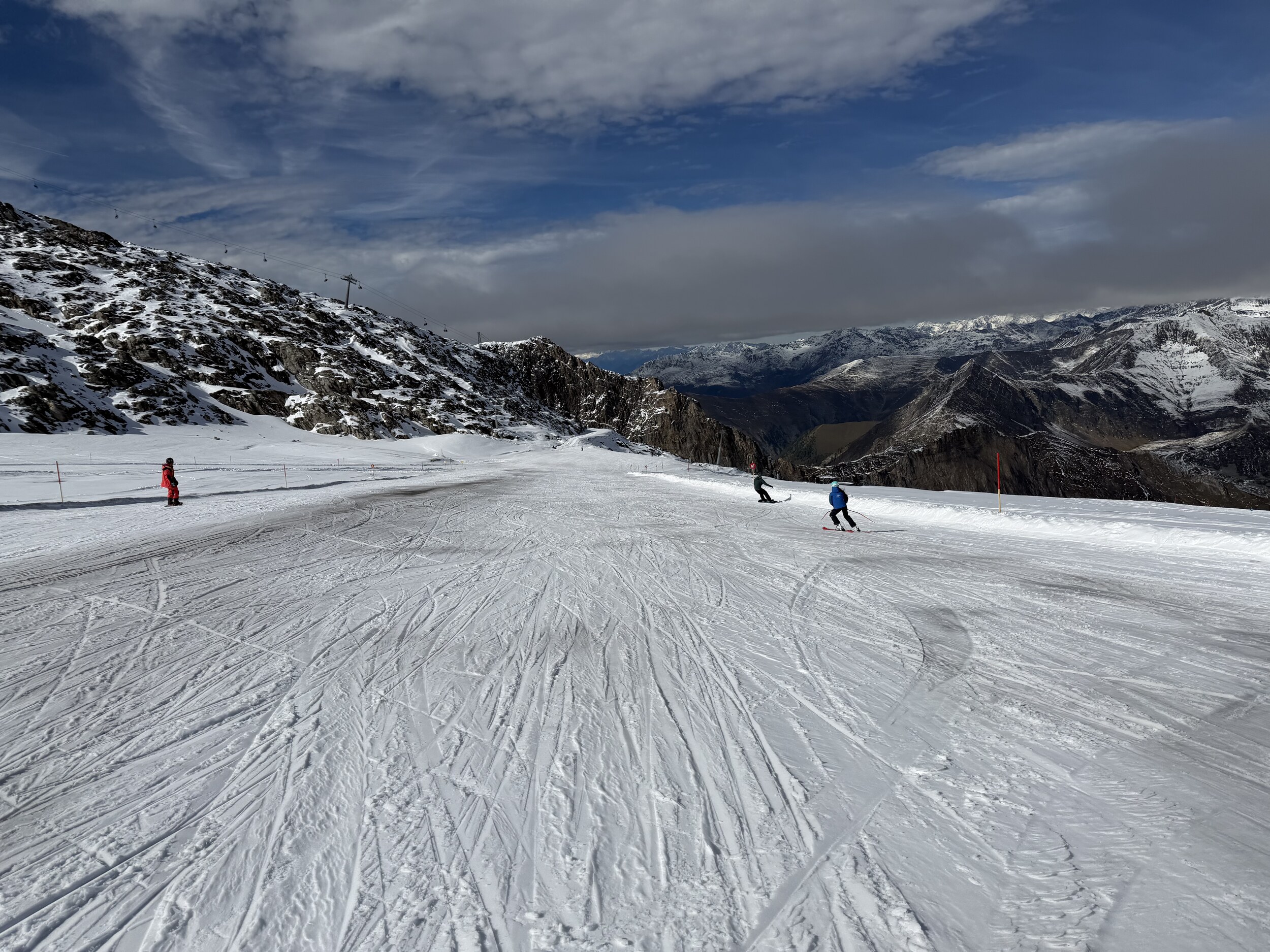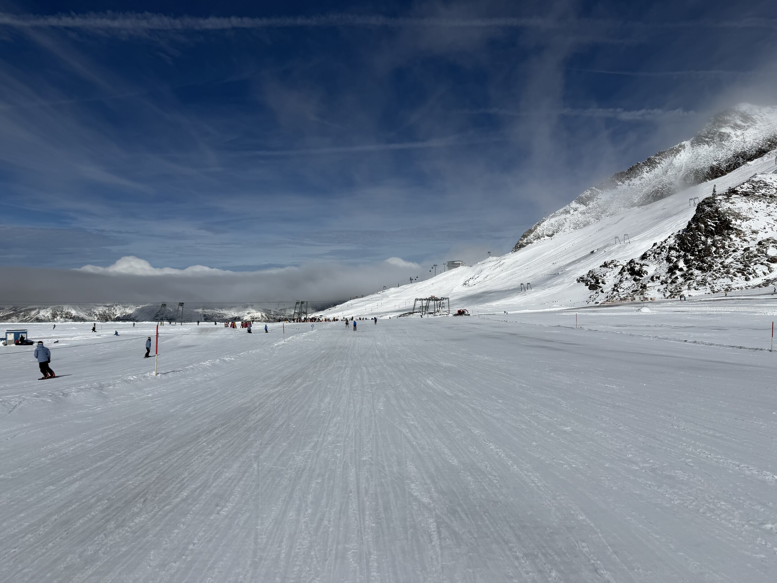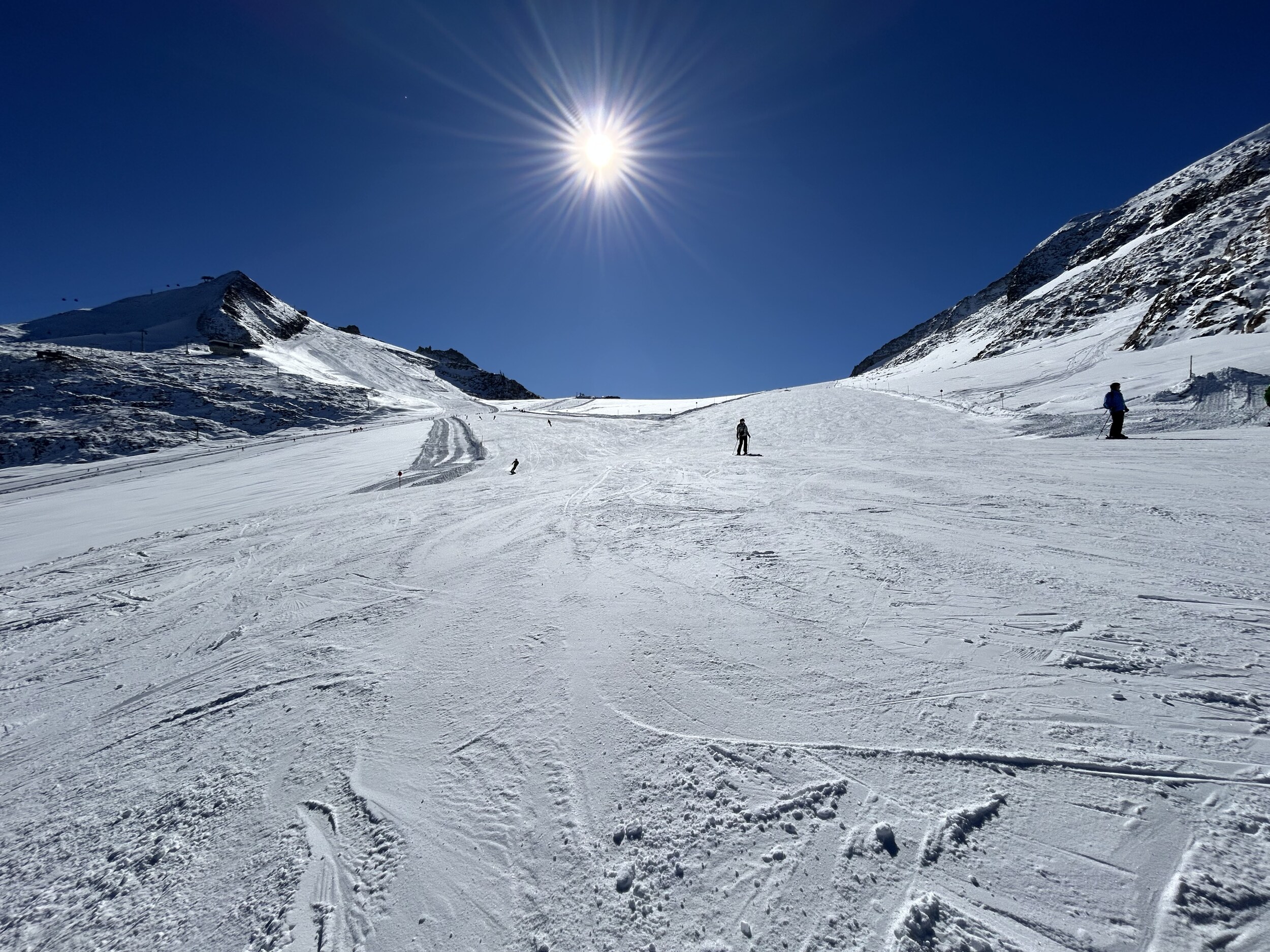 Kurzer Bericht aus Tux. Das Wetter zeigt sich heute eher durchwachsen. Zeitweise schafft es die Sonne aber auch. Die Pisten sind für die Jahreszeit zumeist ganz gut, Richtung TFH recht schnell weich. Oben mittlerweile auch. Zwischendrin schon ein paar Dunkle Stellen, aber alles unproblematisch. Die wenigen Steine sind zu umfahren. Alles in allem ein guter Herbstskitag. Bewegte Bilder folgen…