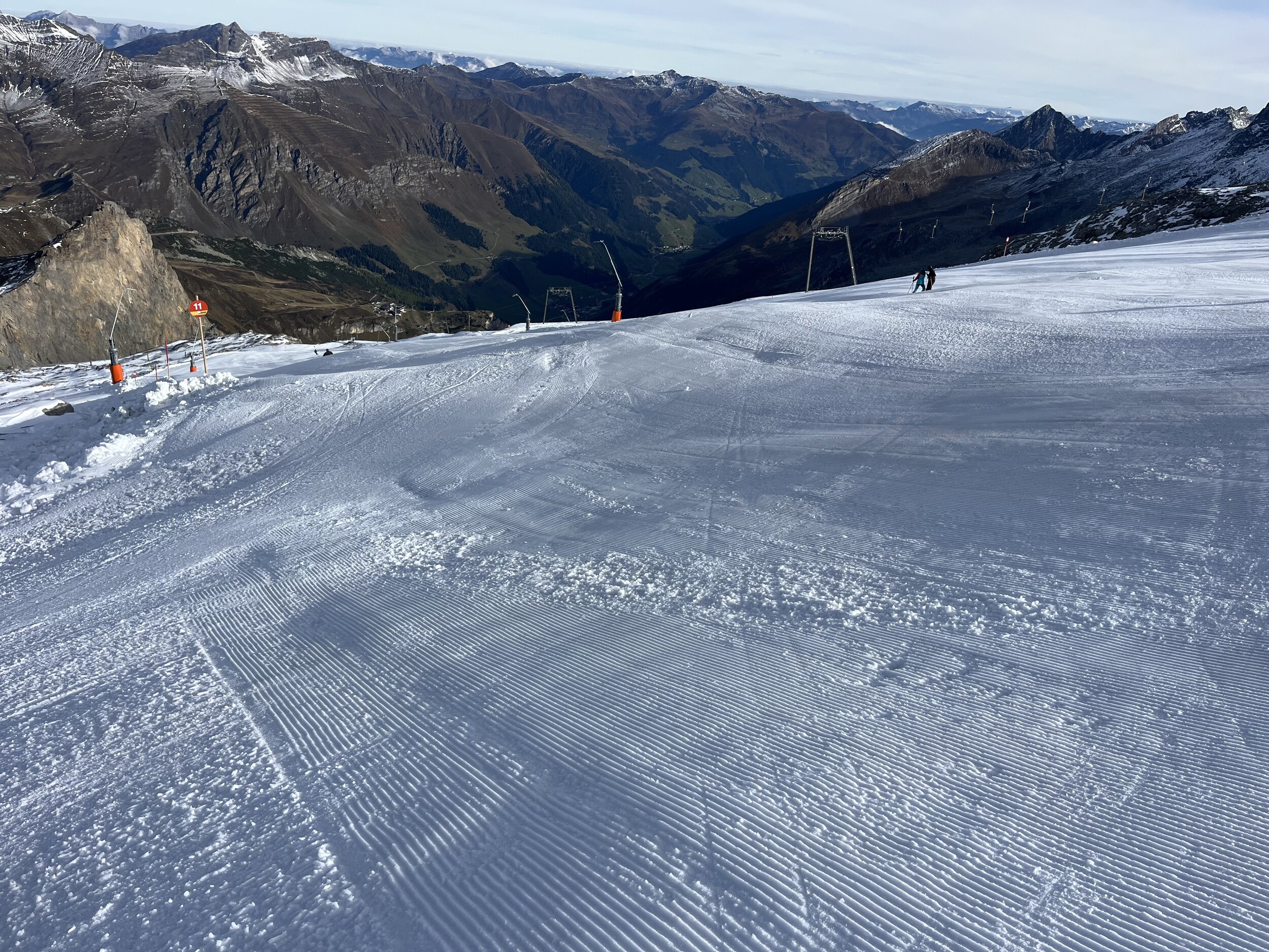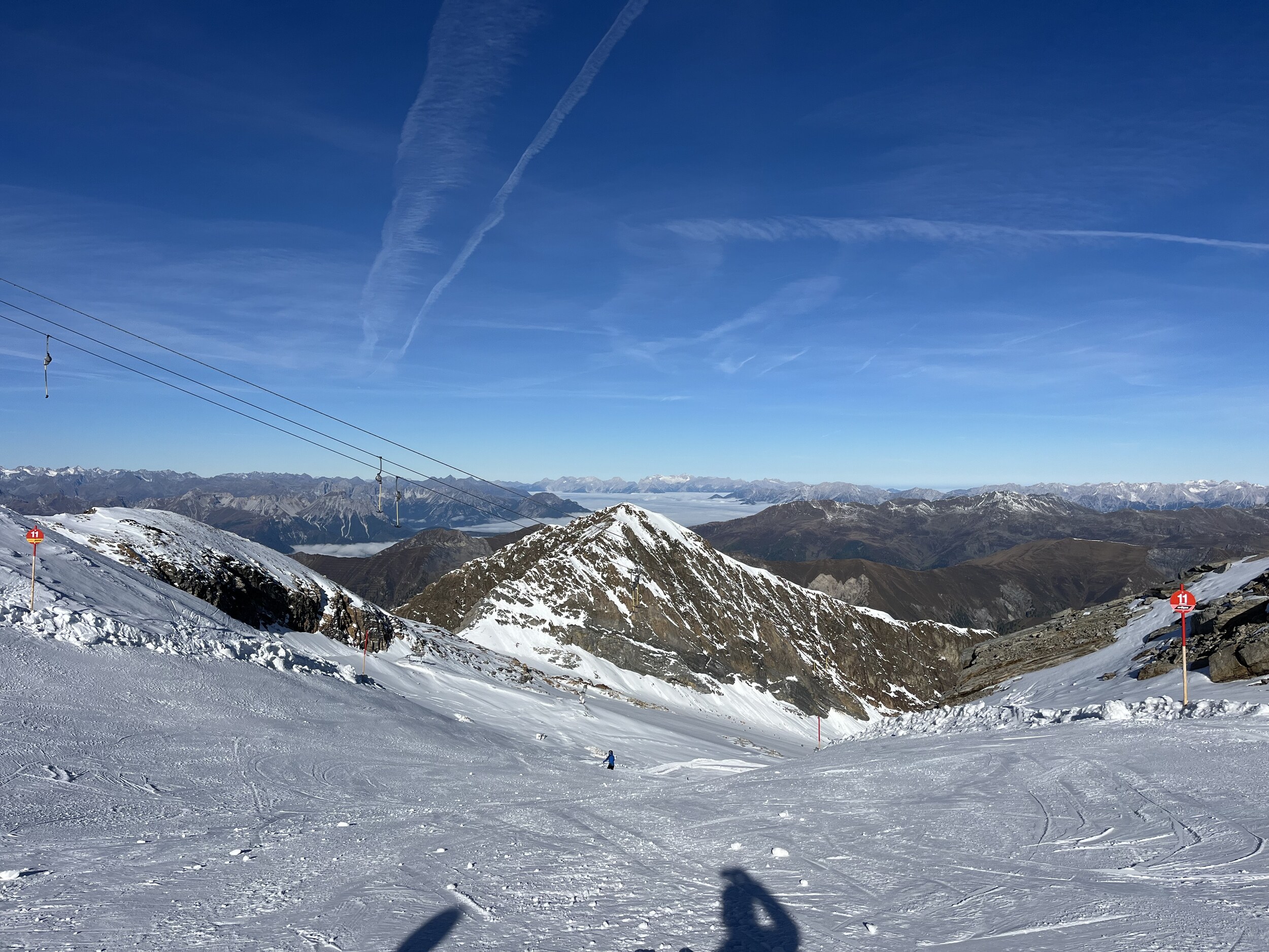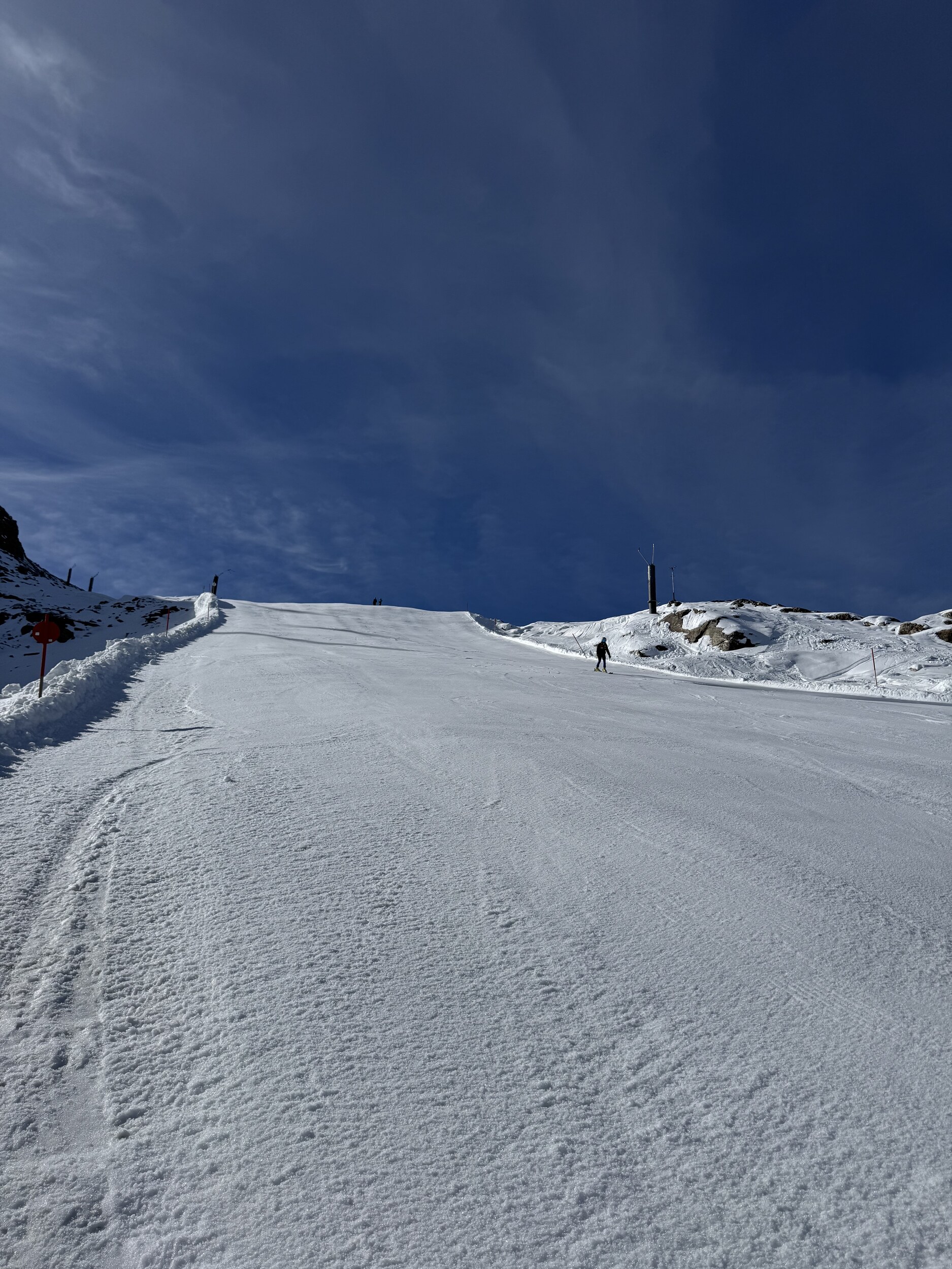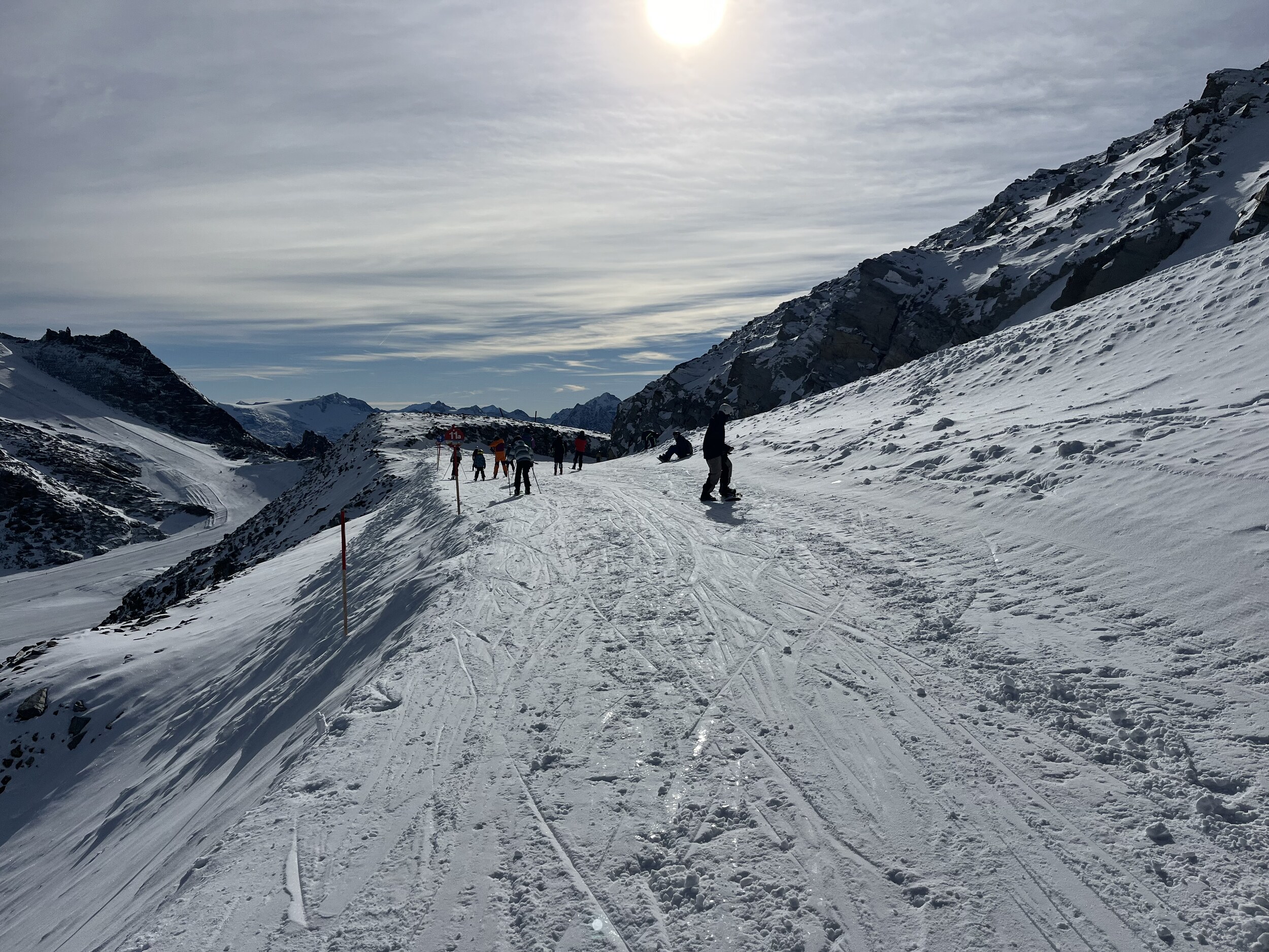 Heute werde ich wohl noch früher runter. Macht noch weniger Spass als gestern. 11 und 12 grauenhaft knollig. Und das Anstehen am Olperer, wo die einzigen einigermassen guten Pisten sind, äusserst unangenehm, chaotisch, uneben, 10min. Edit 12.30 Uhr: