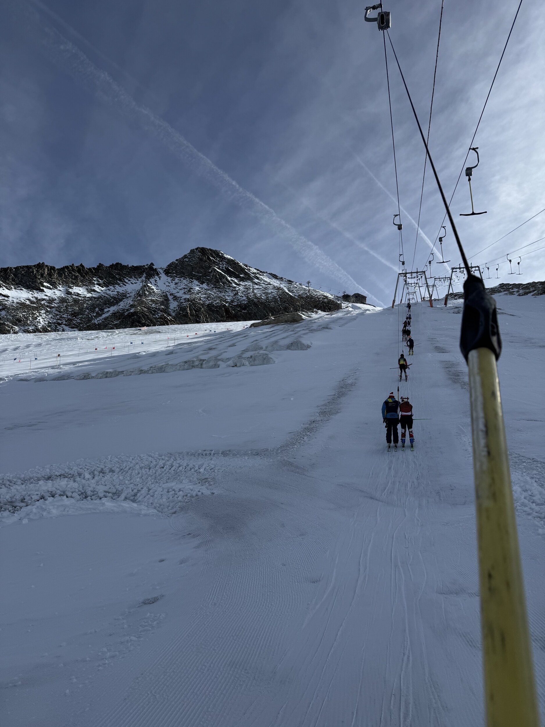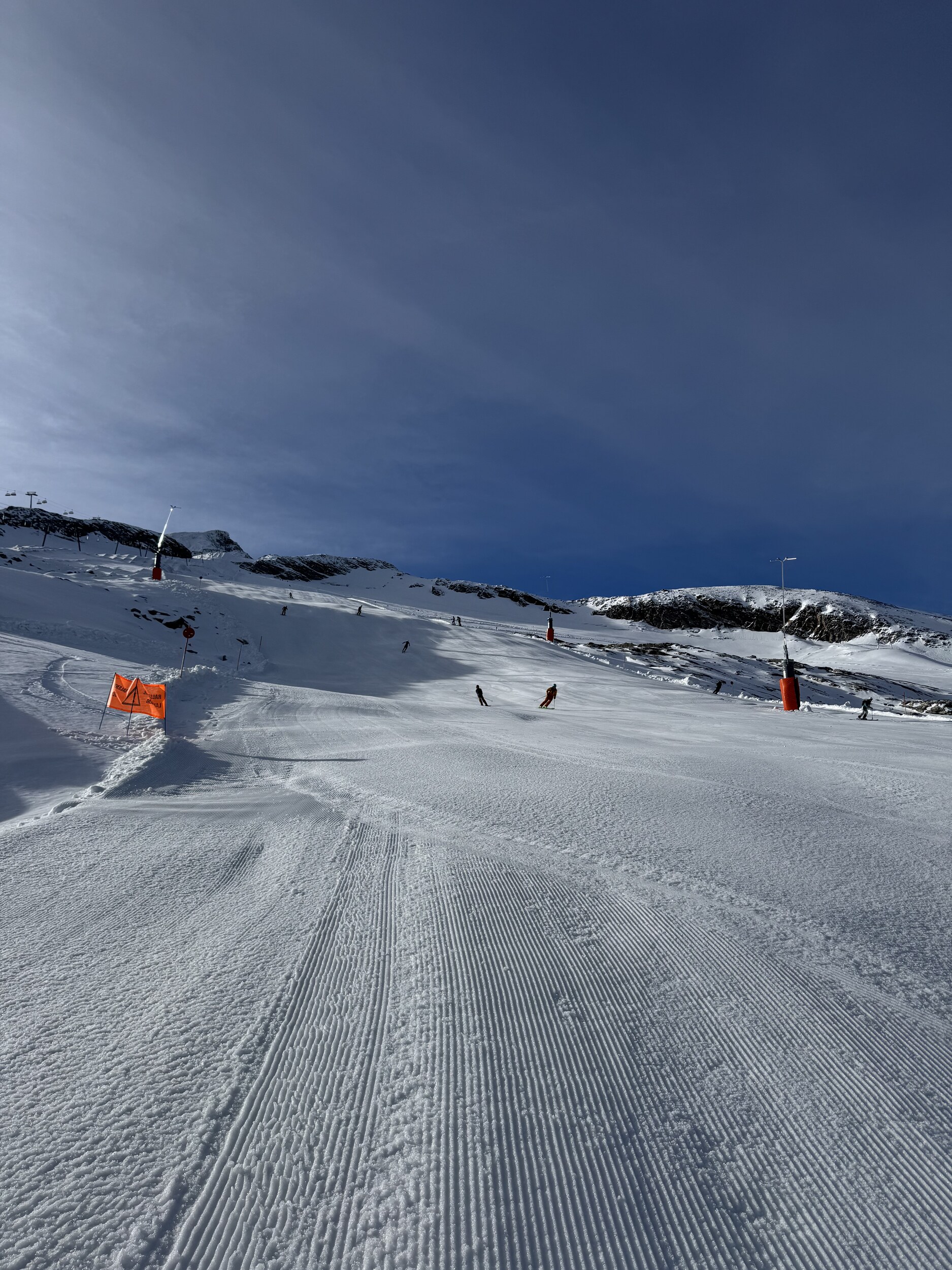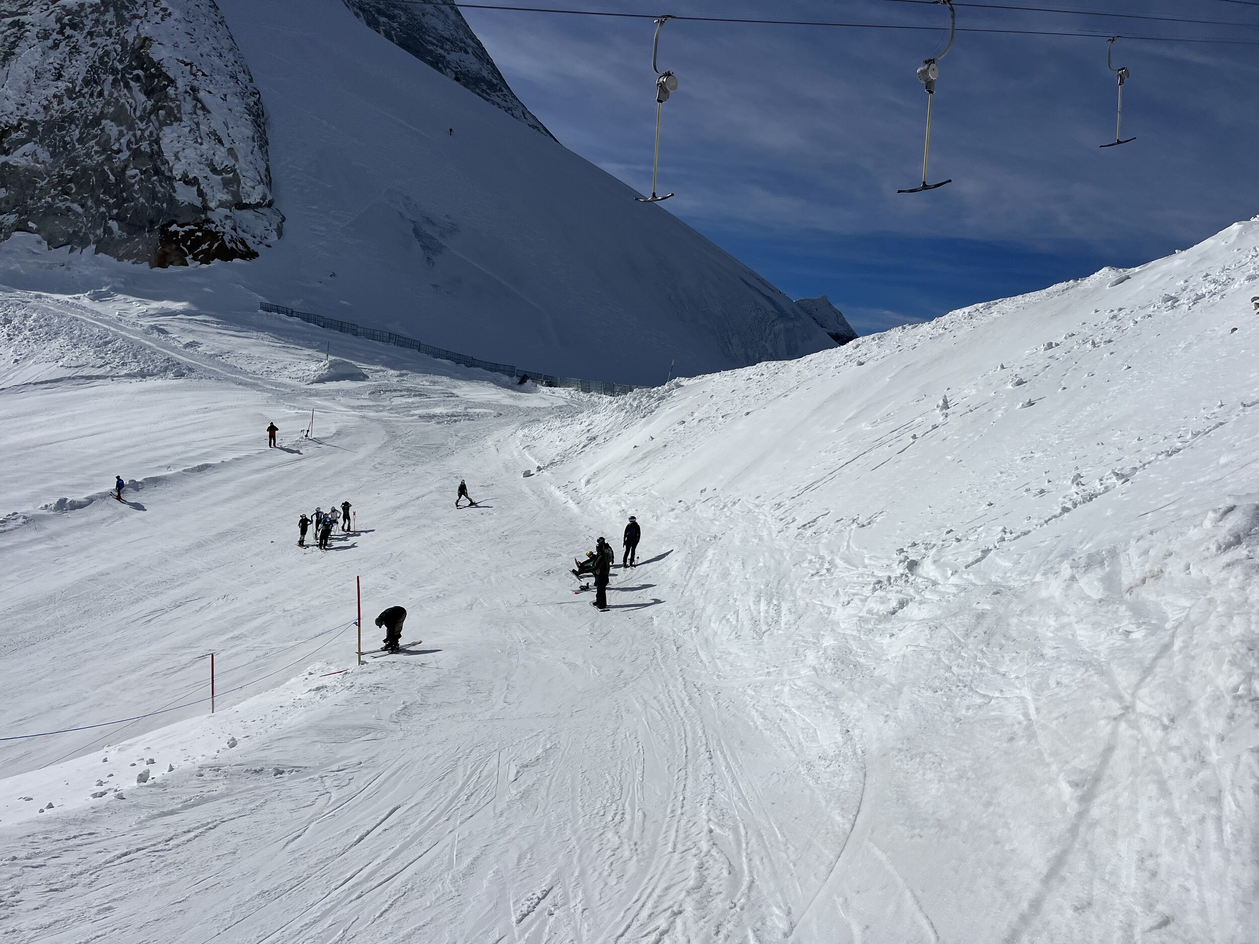 Heute werde ich wohl noch früher runter. Macht noch weniger Spass als gestern. 11 und 12 grauenhaft knollig. Und das Anstehen am Olperer, wo die einzigen einigermassen guten Pisten sind, äusserst unangenehm, chaotisch, uneben, 10min. Edit 12.30 Uhr: