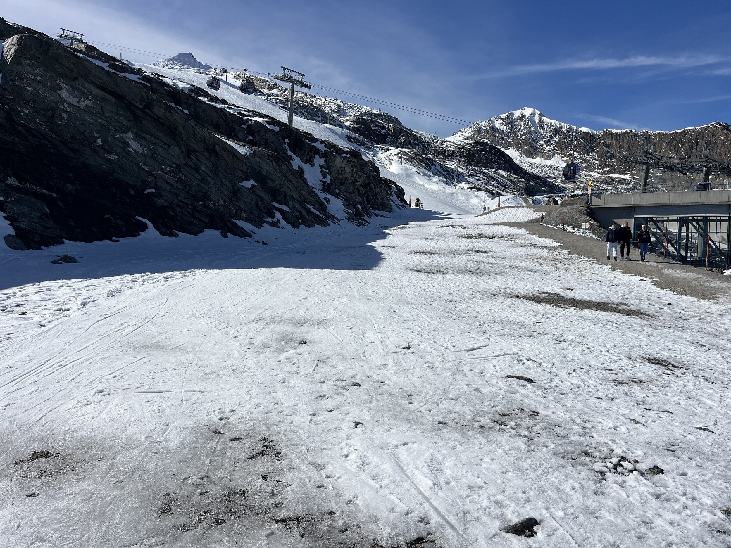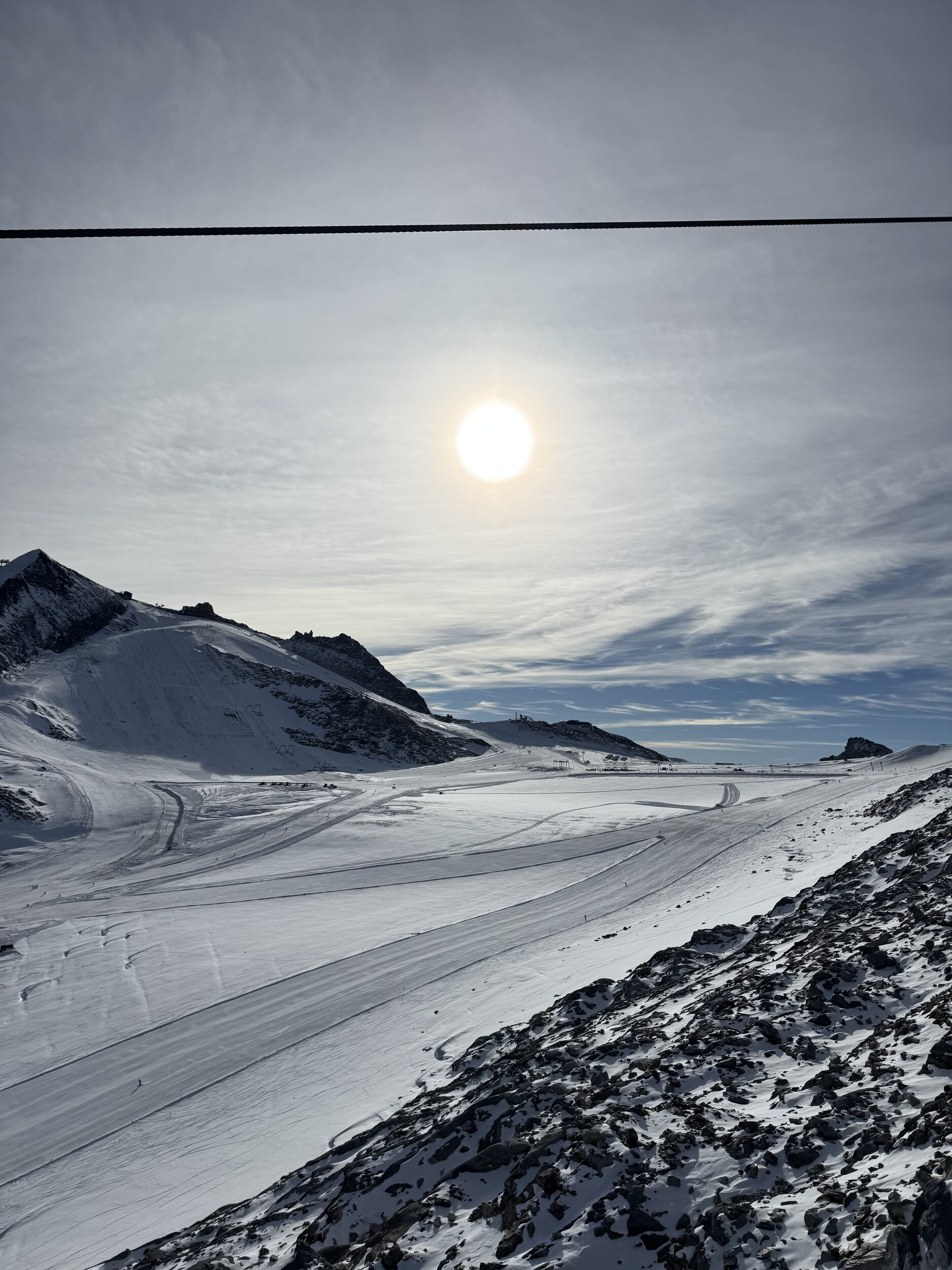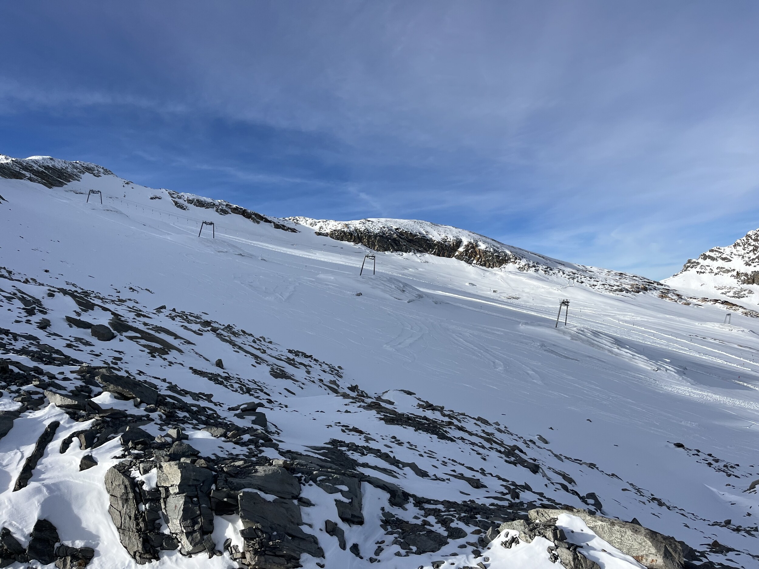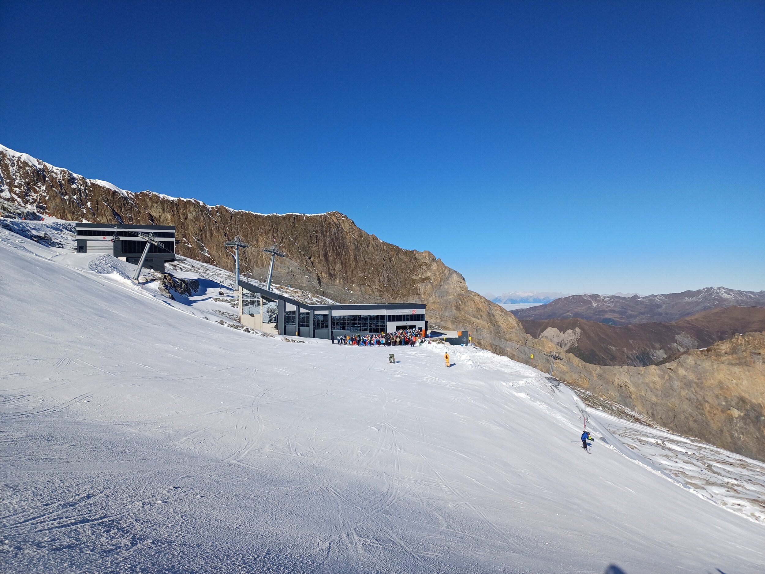 Heute werde ich wohl noch früher runter. Macht noch weniger Spass als gestern. 11 und 12 grauenhaft knollig. Und das Anstehen am Olperer, wo die einzigen einigermassen guten Pisten sind, äusserst unangenehm, chaotisch, uneben, 10min. Edit 12.30 Uhr: