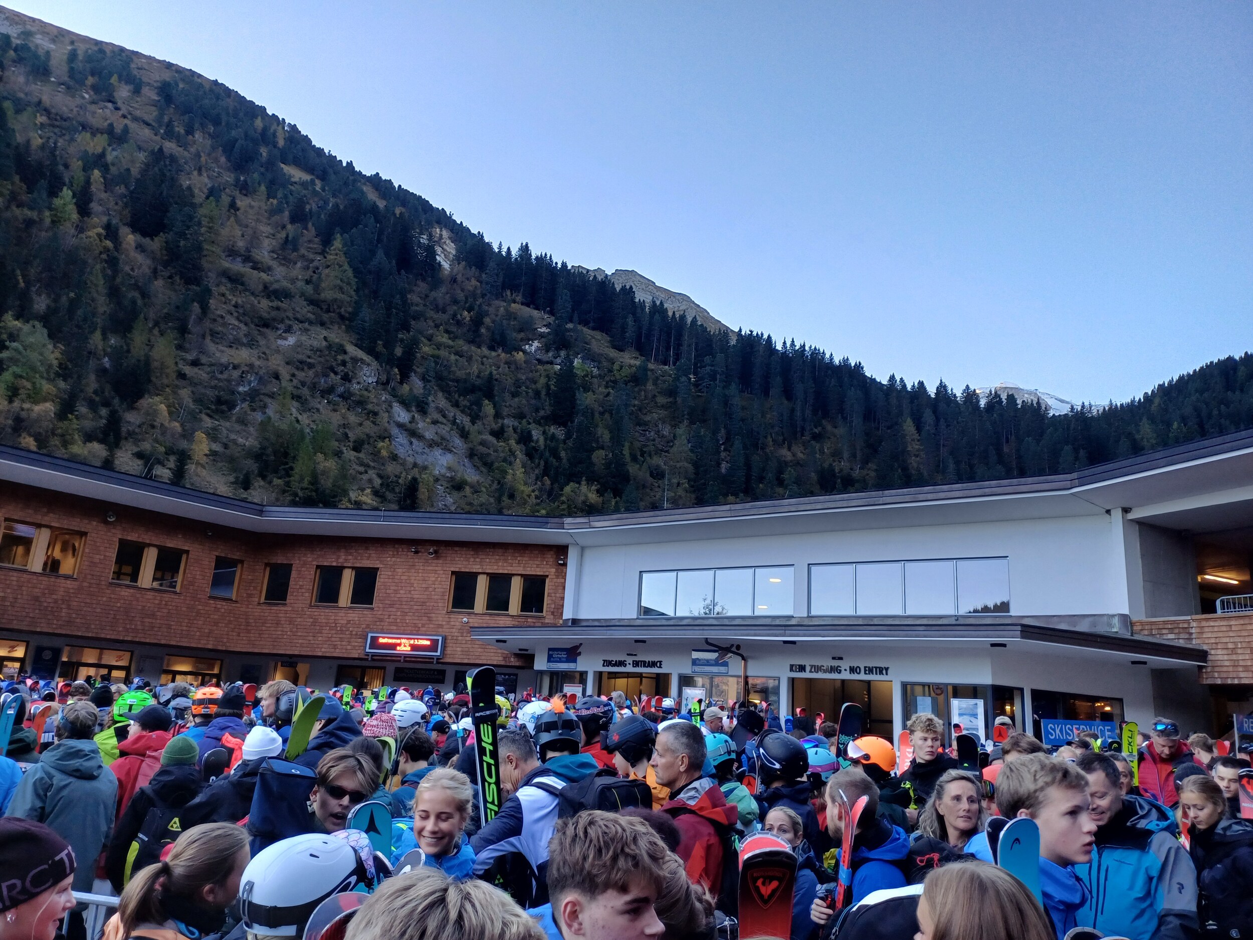 Mit etwas gedämpften Erwartungen wegen der Berichte der letzten Tage bin ich heute und morgen wieder da. Ich hätte mir in der Früh ruhig mehr Zeit lassen sollen. Sehr viel los und Chaos an der Zubringerkette wegen Monster-Rucksäcken und den langen Renn-Pommes mit Skalpellartigen Kanten der Rennkids.