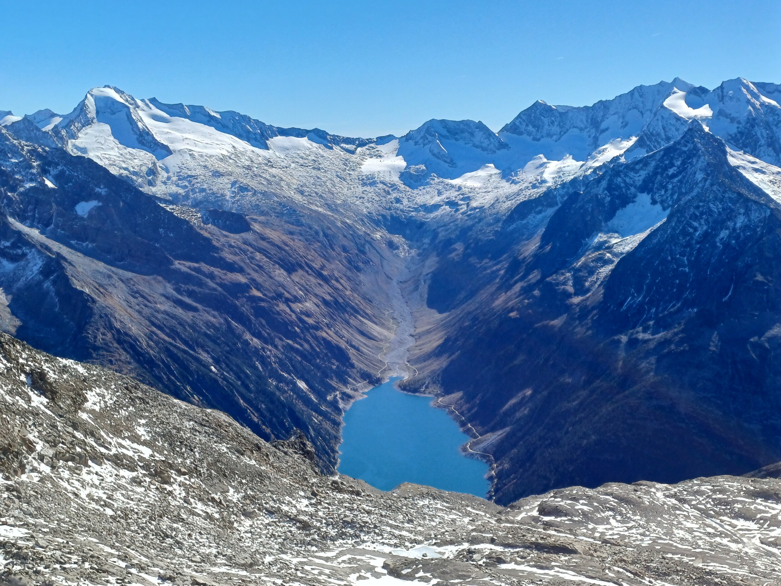 Olperer am Nachmittag noch ganz gut. Ein paar Pisten waren für Stangerlfahrer abgesperrt, hielt sich aber in Grenzen.