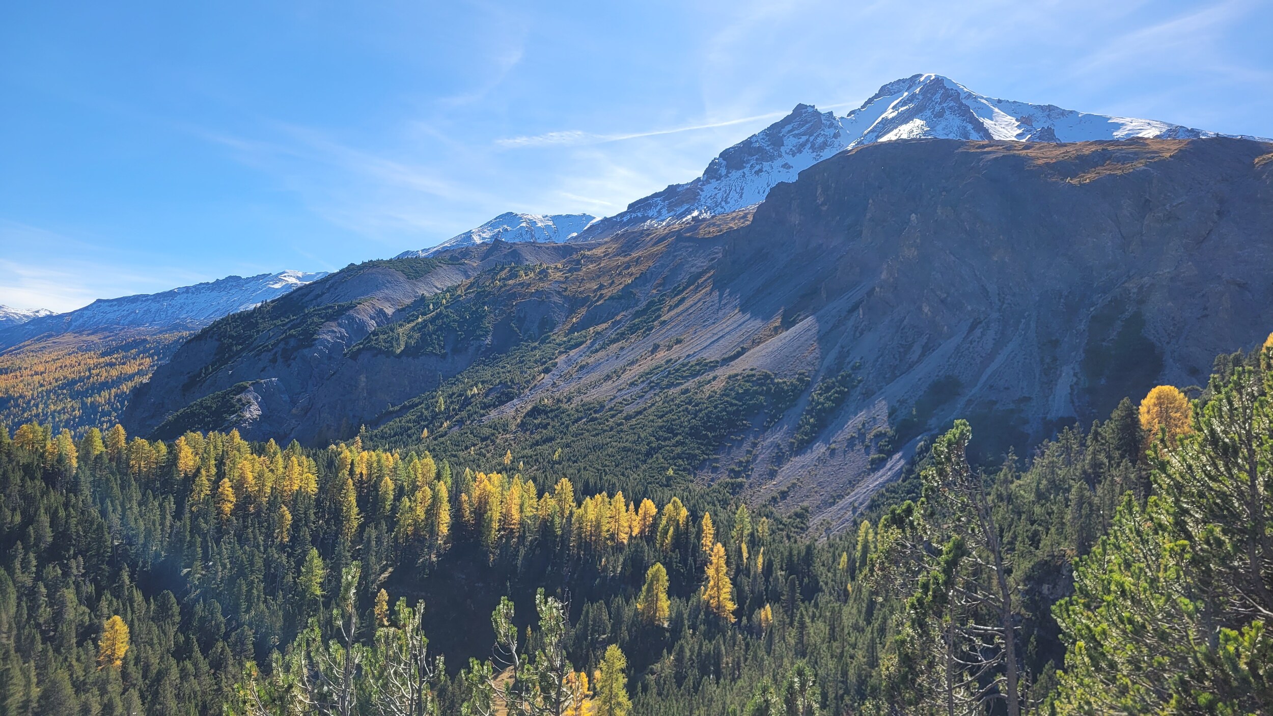 Der Il Jalet ist ebenfalls angezuckert und die Lärchen haben auf gelb umgeschaltet: