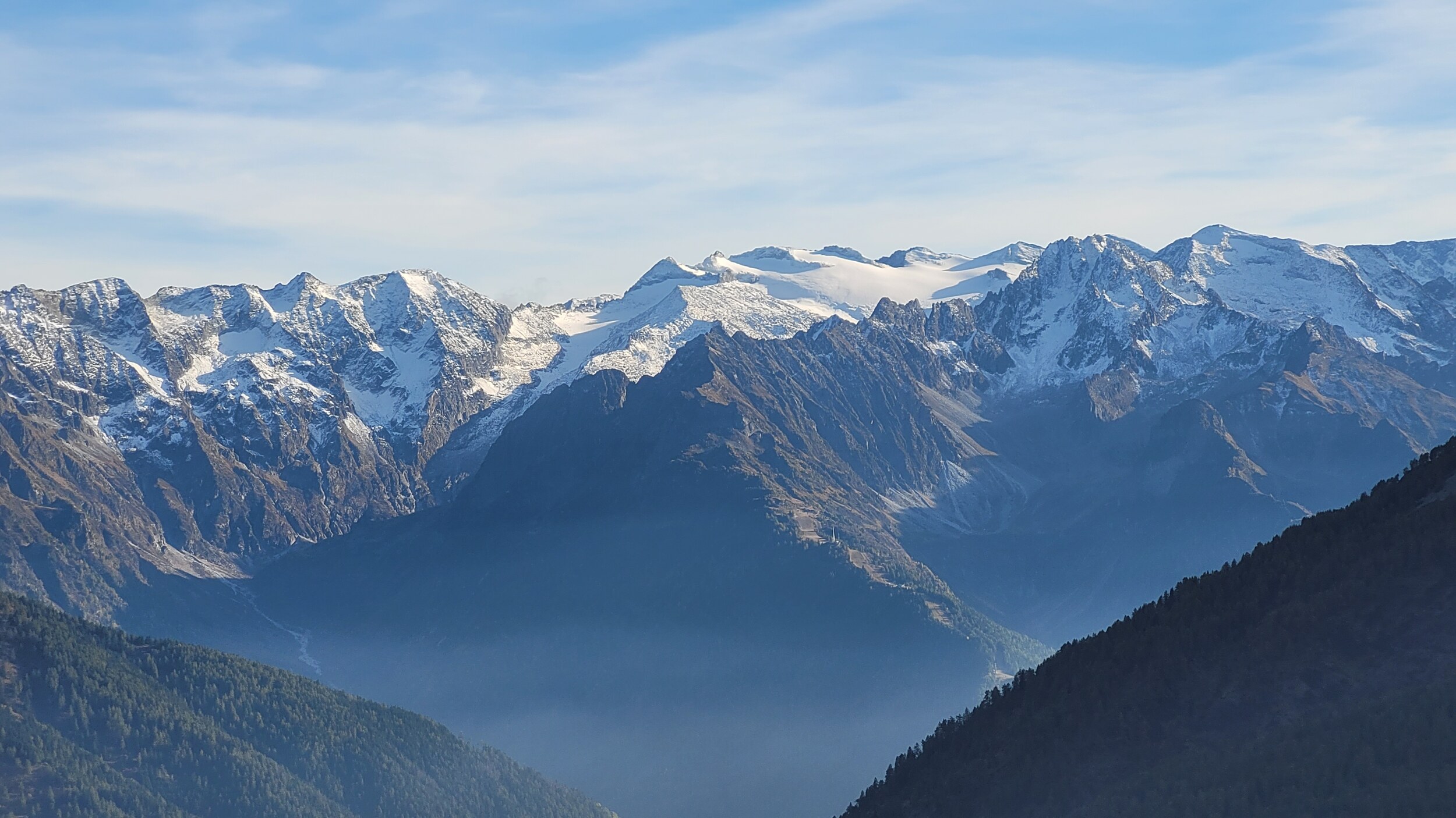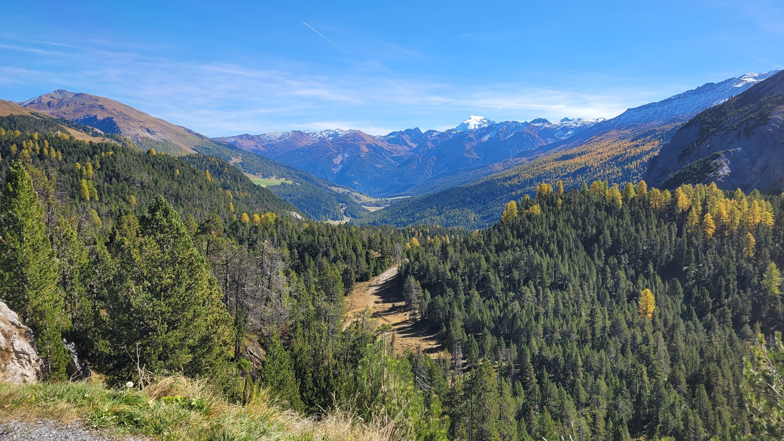 Blick ins Val Müstair und den Ortler dahinter:
