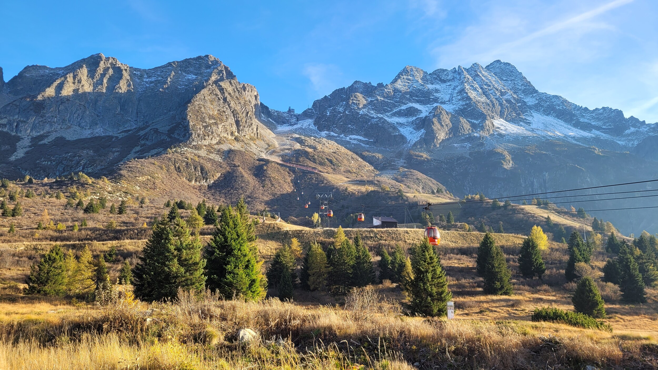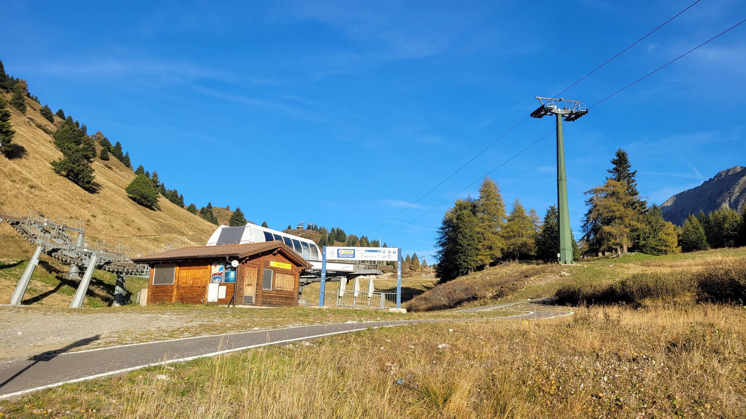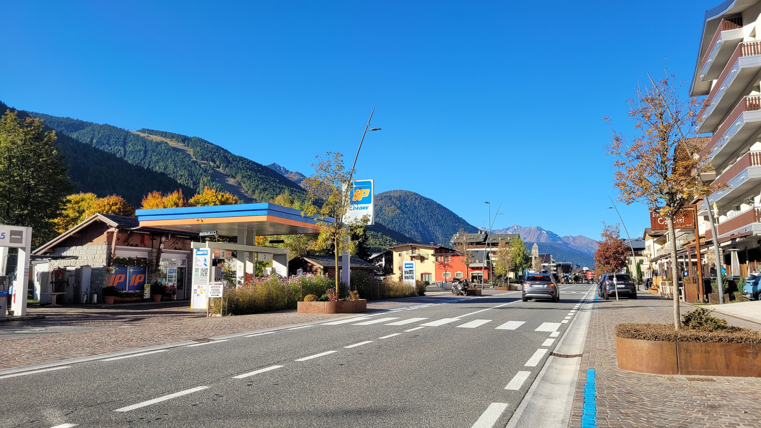 Der Talort auf der anderen Seite ist Ponte di Legno, von dem es auf den Tonalepass hochgeht. Eine Zubringerbahn läuft parallel der Strasse entlang: