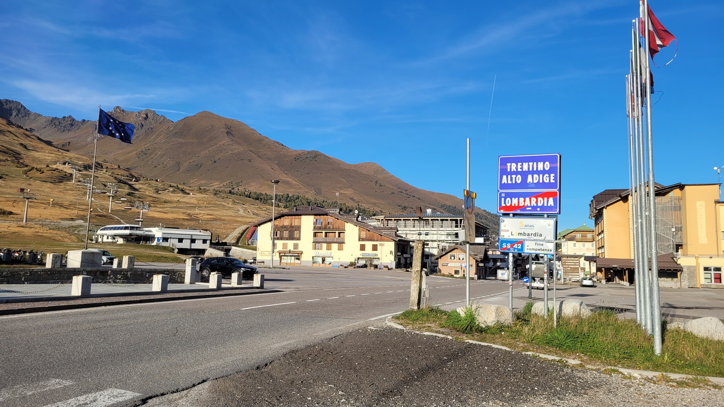 Auf dem Pass ist die Grenze zwischen der Lombardei und Trentino-Alto Adige: