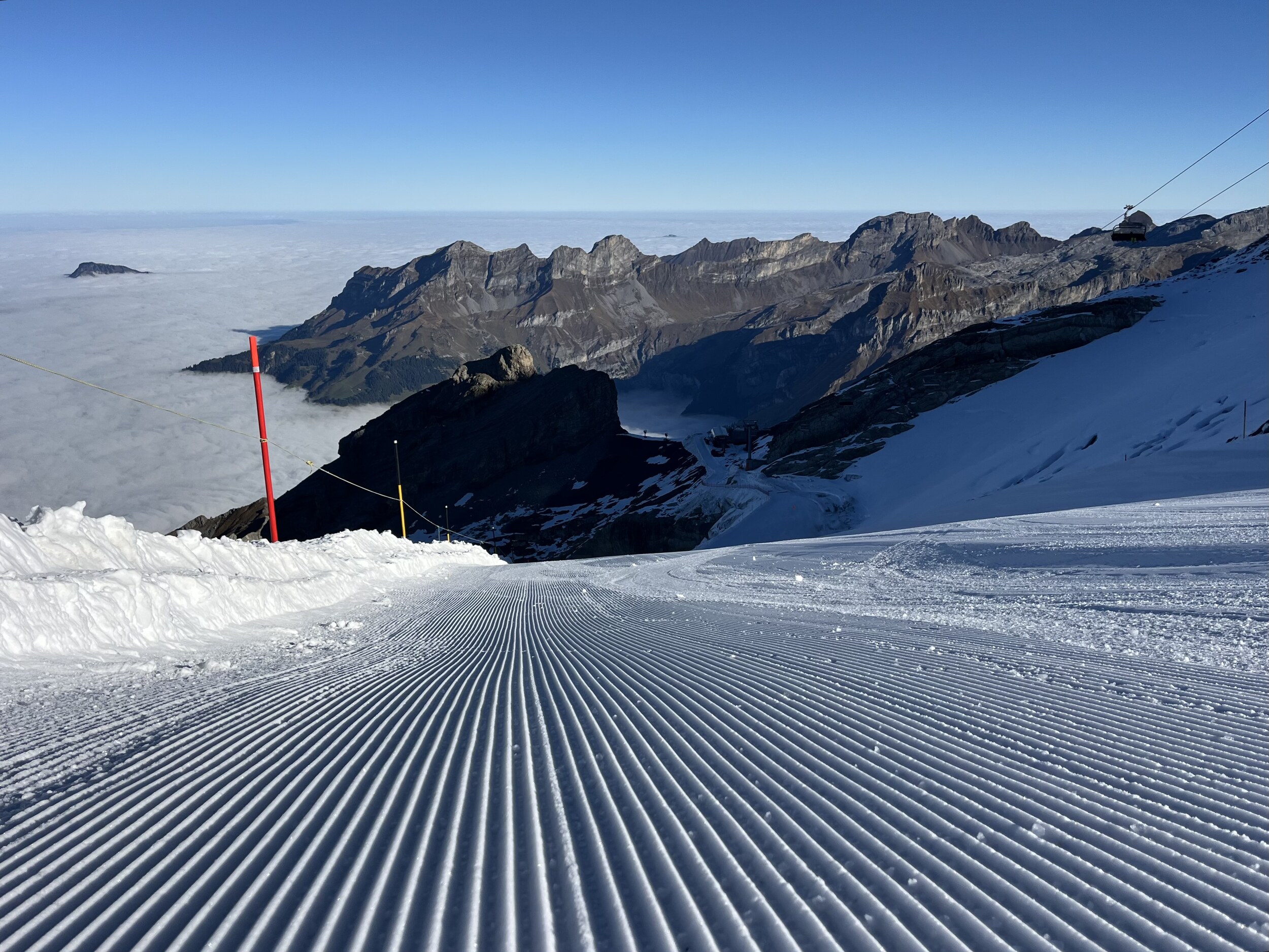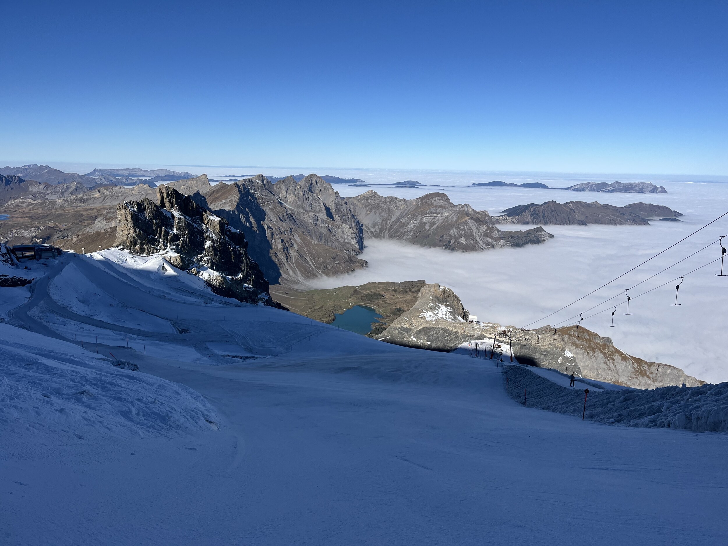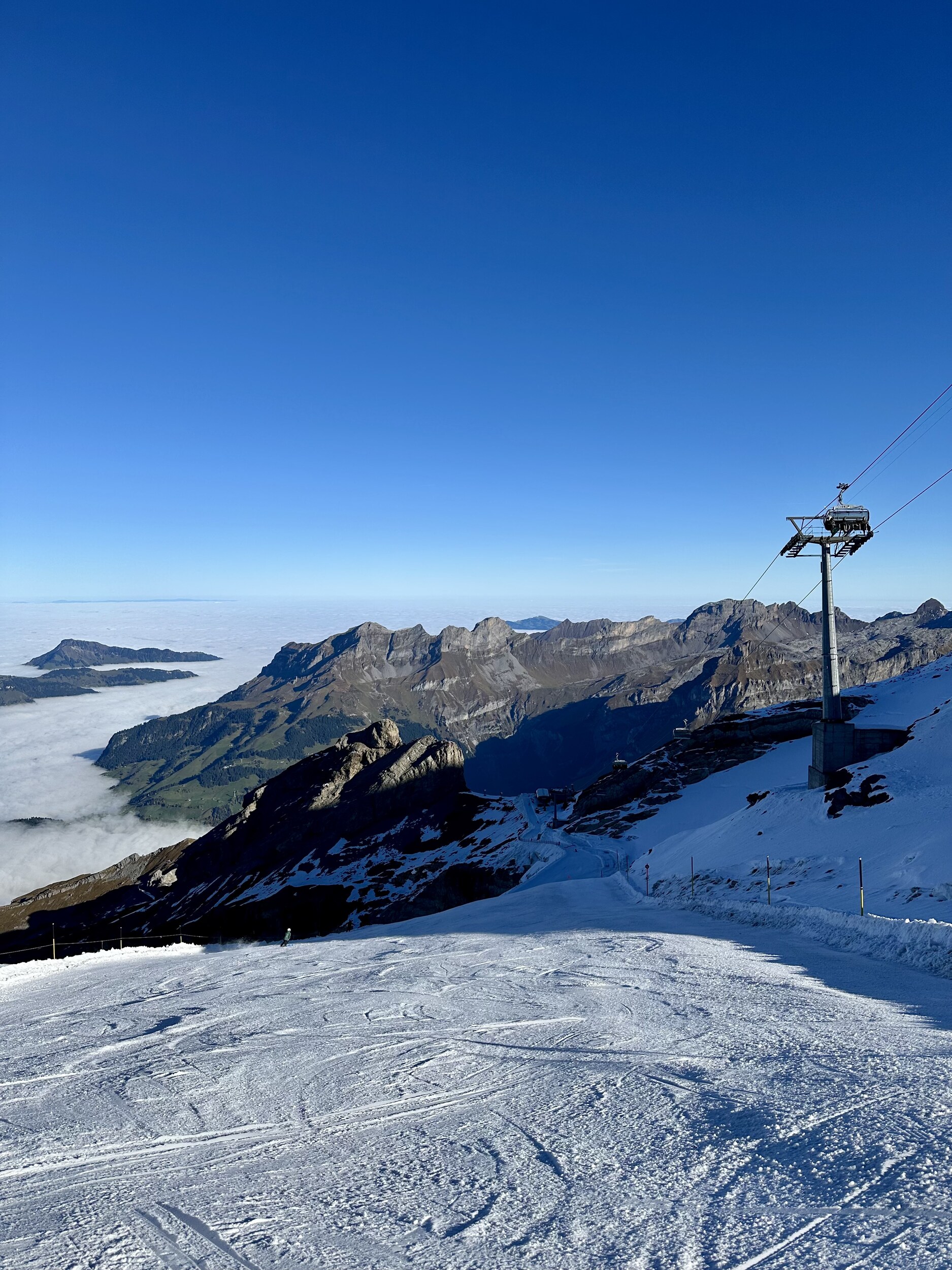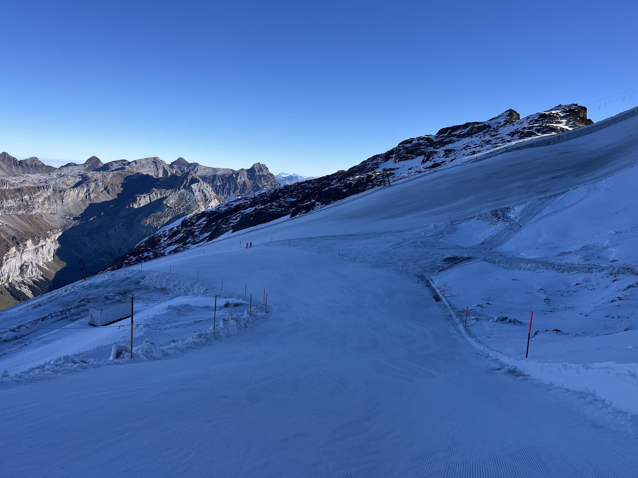 Danke für die Fotos, optisch ist es wunderschön. Der Titlis ist vielleicht nicht das beste Skigebiet im Herbst, aber sicherlich eines derjenigen mit der spektakulärsten und kontrastreichsten Aussicht: Blick auf die grünen Voralpen beim Skifahren auf einem Gletscher.