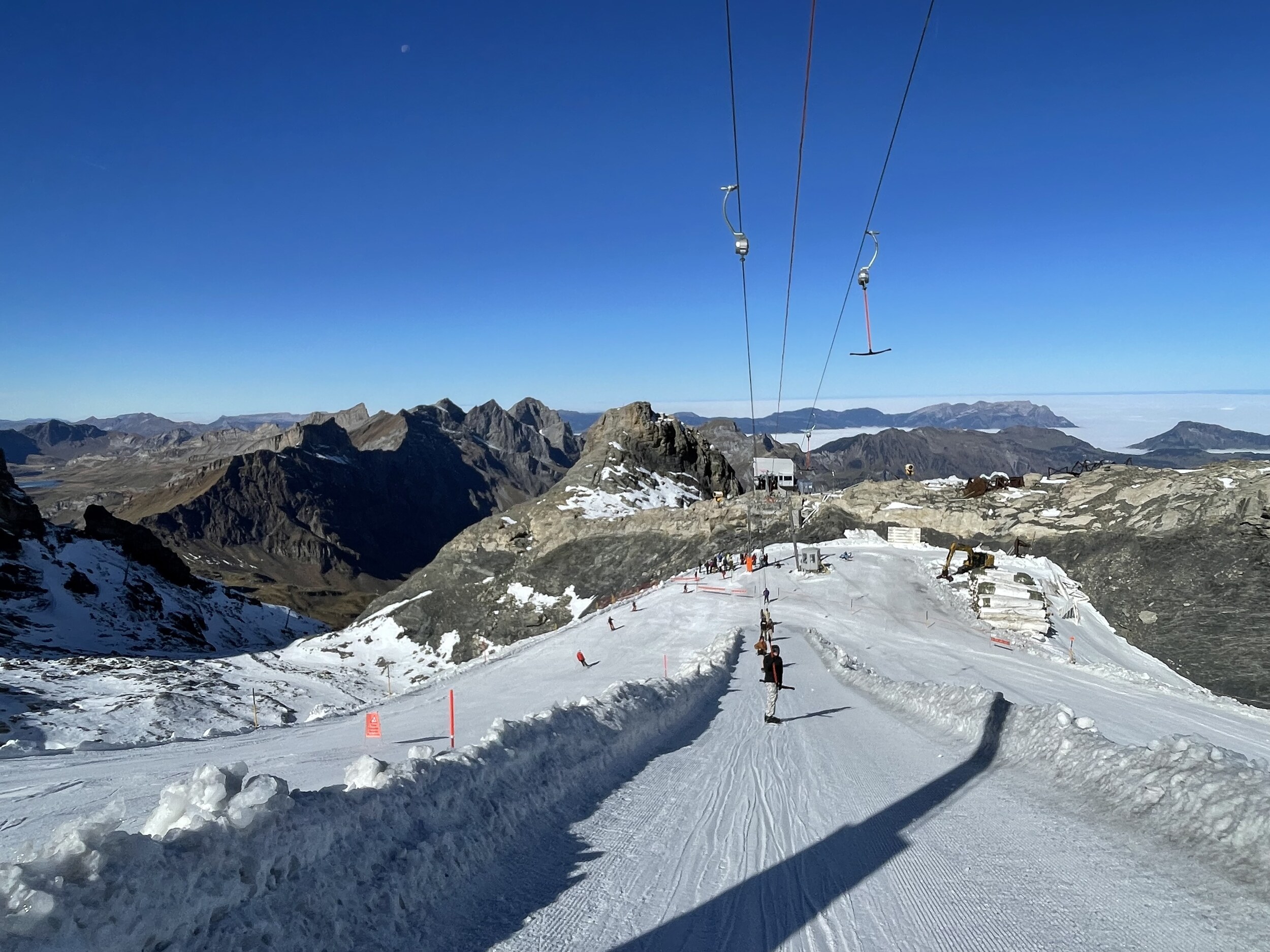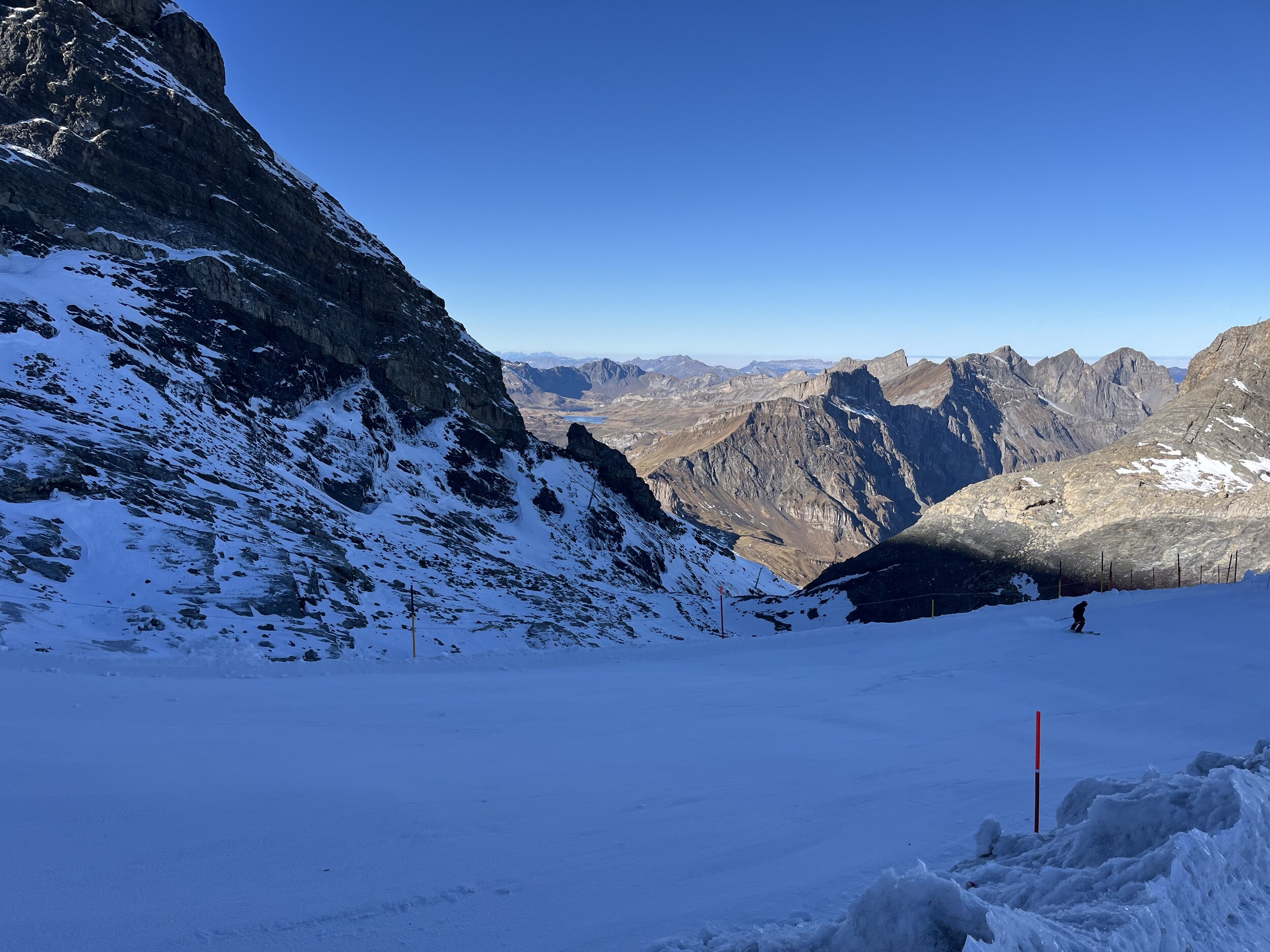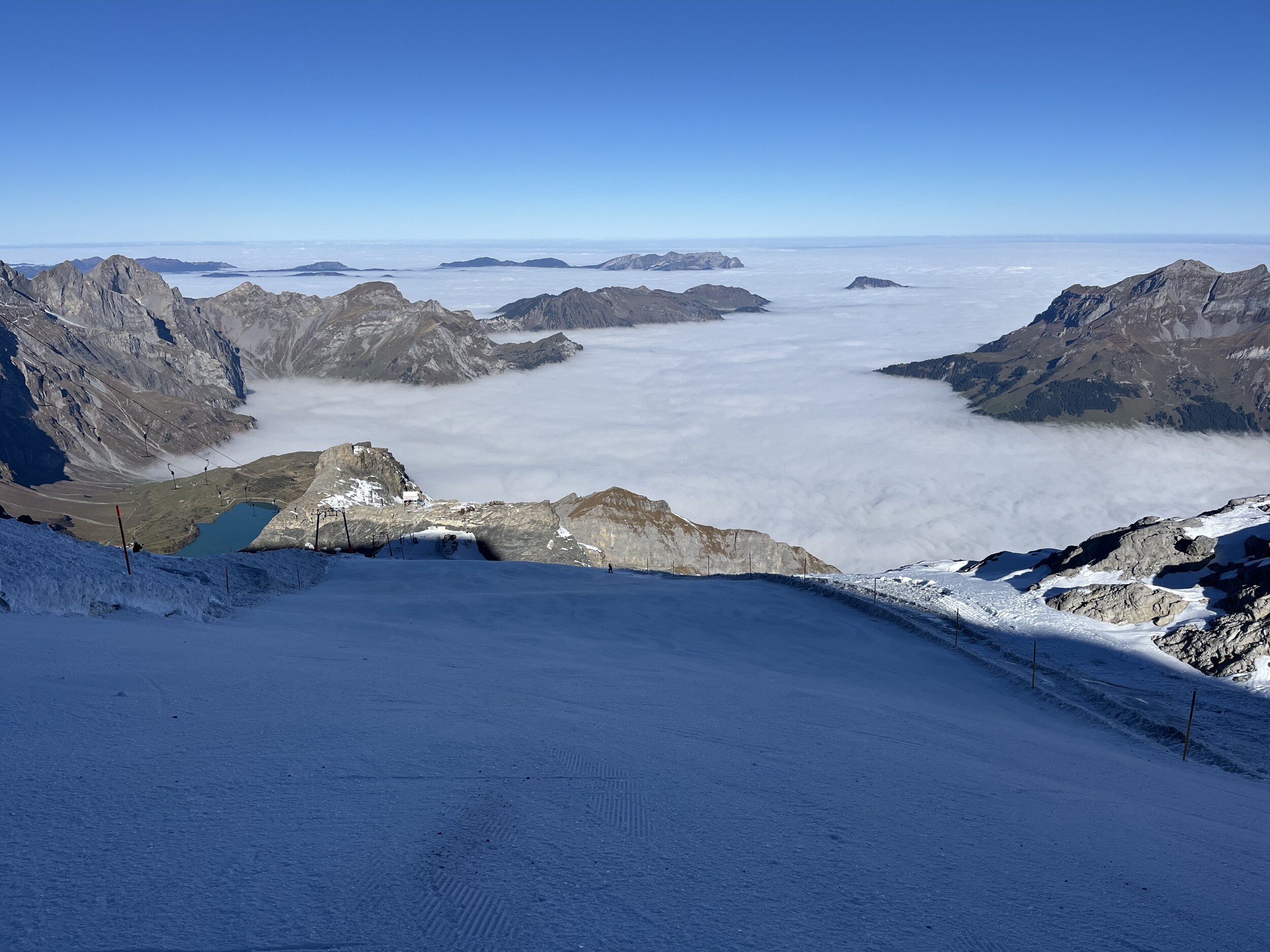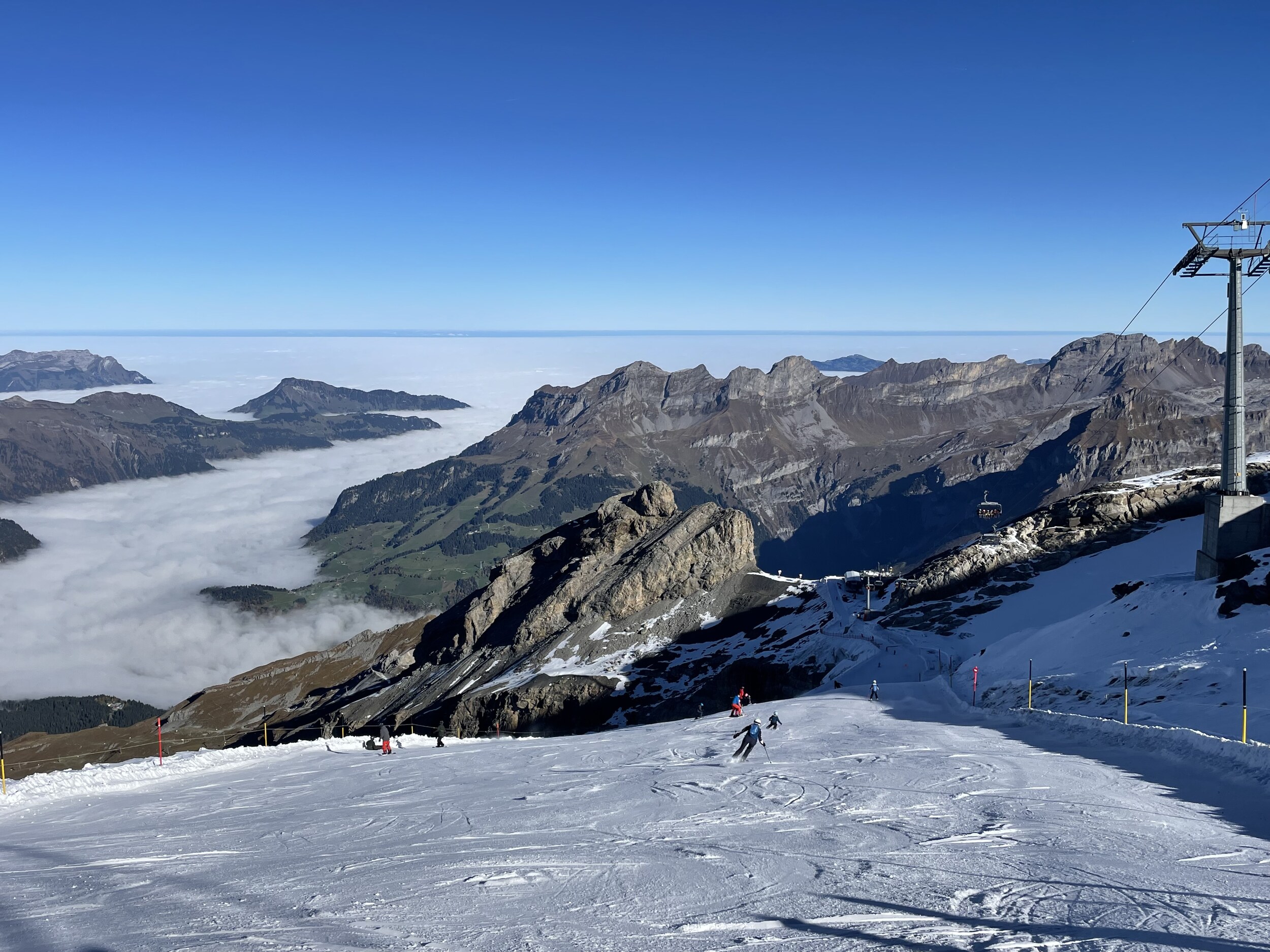 Danke für die Fotos, optisch ist es wunderschön. Der Titlis ist vielleicht nicht das beste Skigebiet im Herbst, aber sicherlich eines derjenigen mit der spektakulärsten und kontrastreichsten Aussicht: Blick auf die grünen Voralpen beim Skifahren auf einem Gletscher.