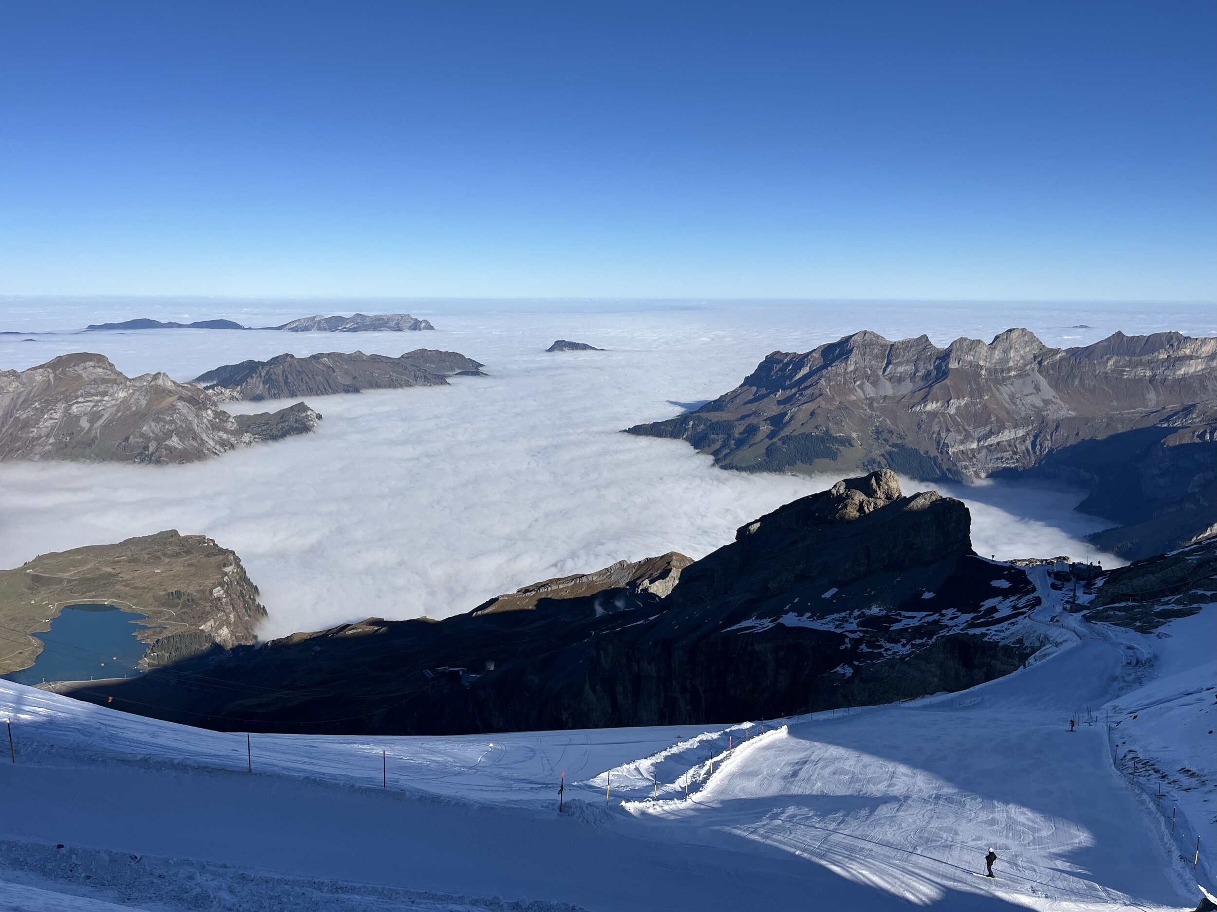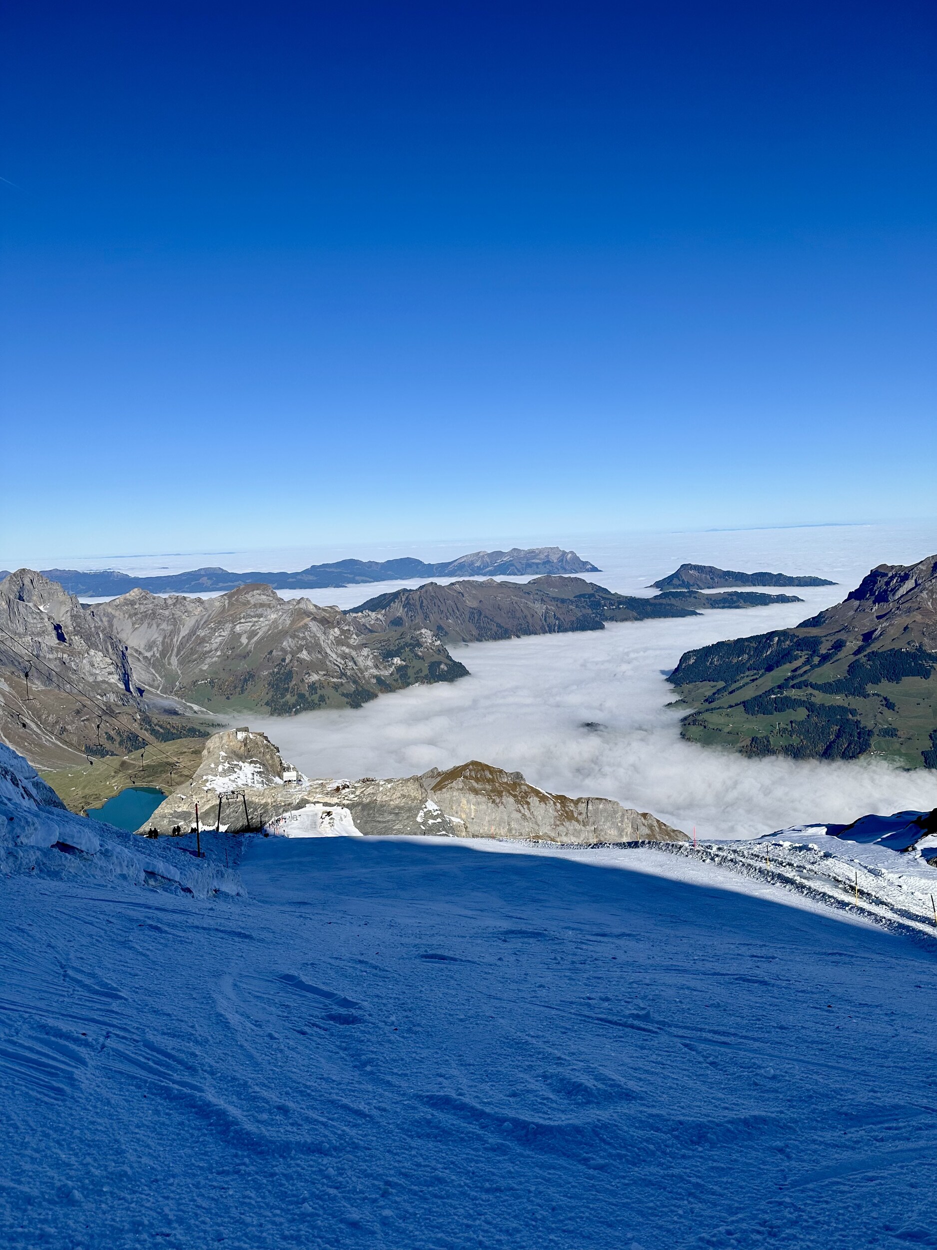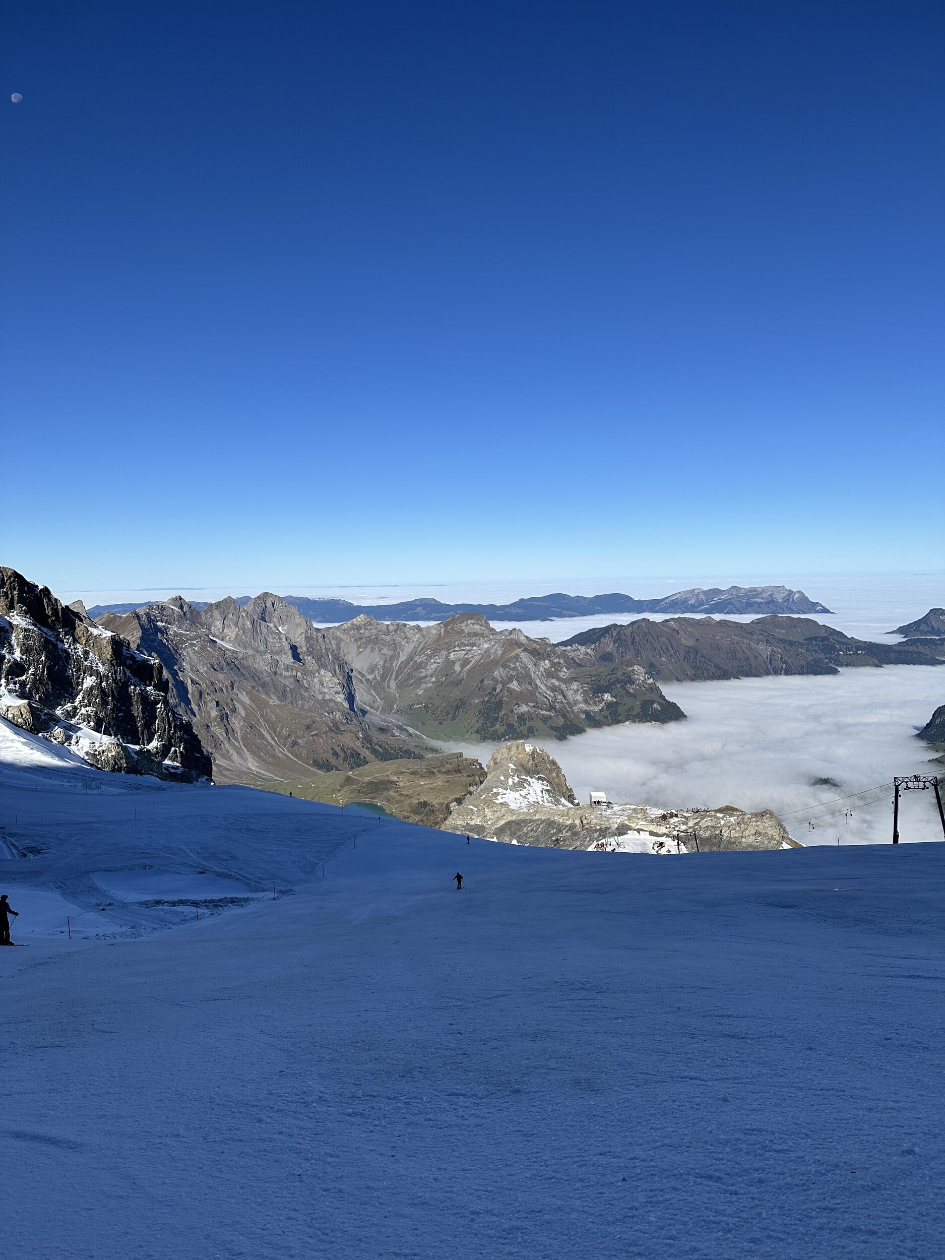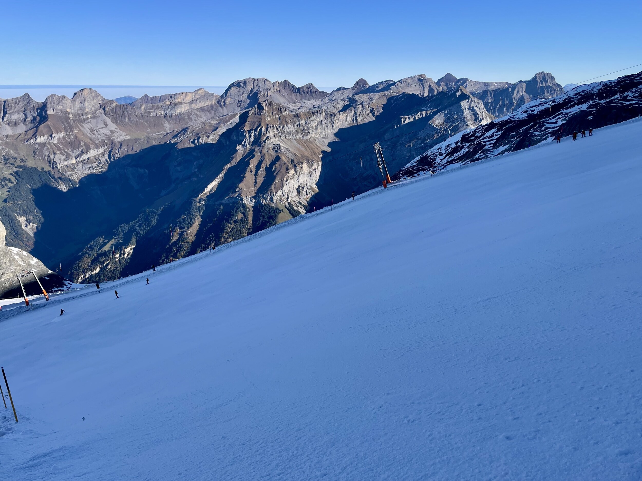 Danke für die Fotos, optisch ist es wunderschön. Der Titlis ist vielleicht nicht das beste Skigebiet im Herbst, aber sicherlich eines derjenigen mit der spektakulärsten und kontrastreichsten Aussicht: Blick auf die grünen Voralpen beim Skifahren auf einem Gletscher.
