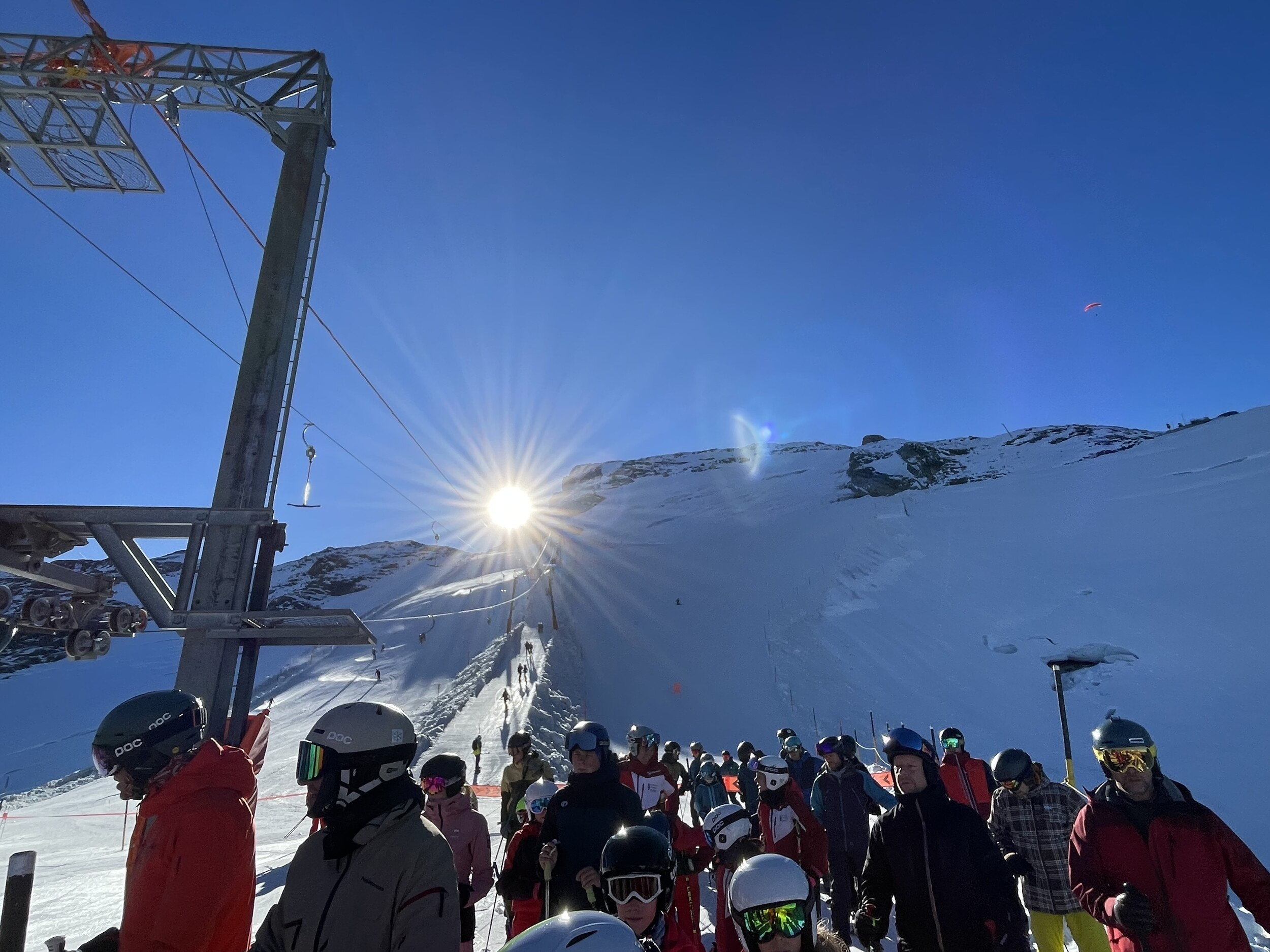 Darum ist hier in Hintertux wohl so eine grosse Gruppe vom SC Engelberg, mit riesigen TITLIS-Lettern auf der Jacke.