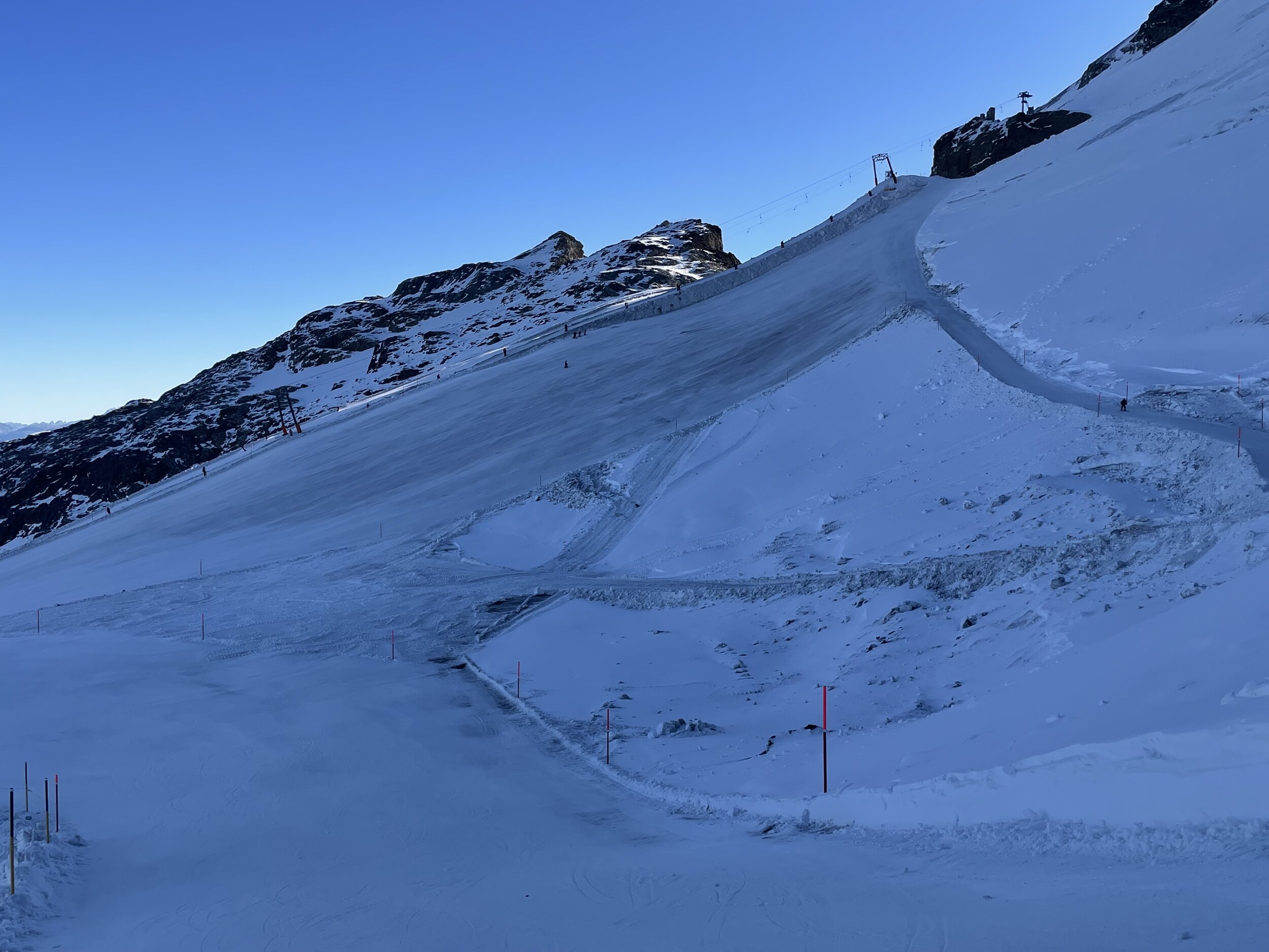 Den bericht von Titlis_Carver kann ich bestätigen. Es war eigentlich besser als erwartet. Das Wetter hat da viel mitgeholfen. Die Pisten bestehen aus einem Mix von gefrästem Gletschereis und altem Depotschnee.