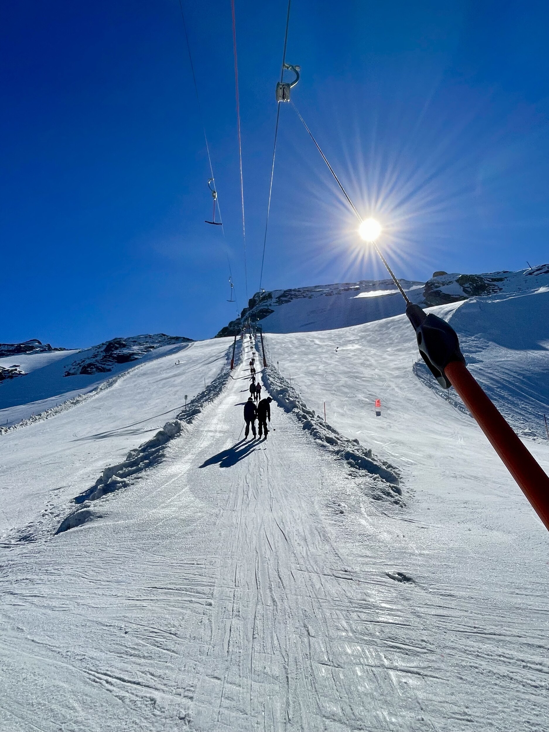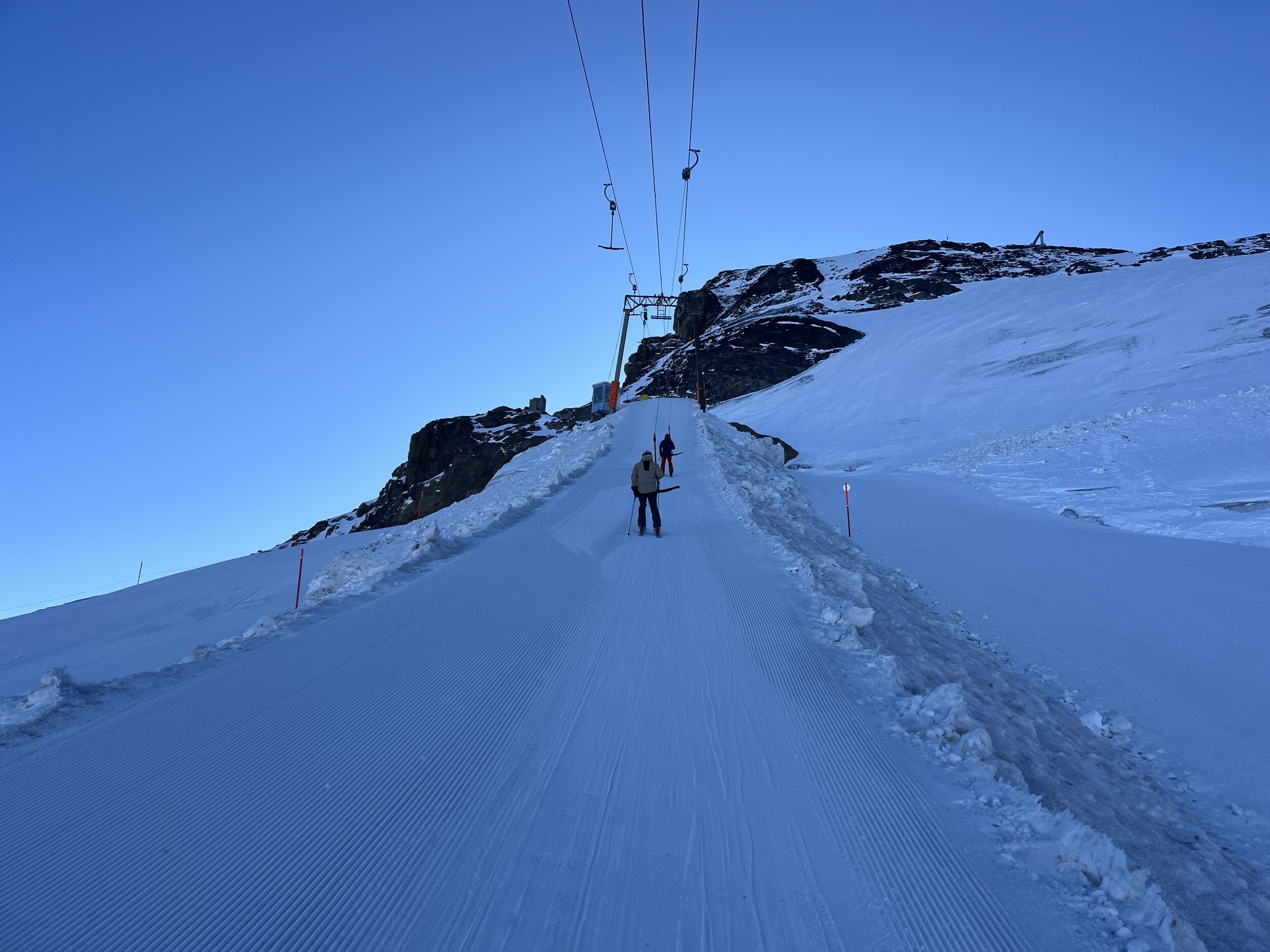 Klar hier ist halt nicht das beste und grösste Angebot für Herbstski, aber halt doch das einfachste zu erreichende. Und da die Bahnen auch tatsächlich mal „Anfang“ Oktober öffnen und es mich in den Füssen juckt, möchte ich die Bahnen für ihr frühes Öffnen auch mal belohnen.