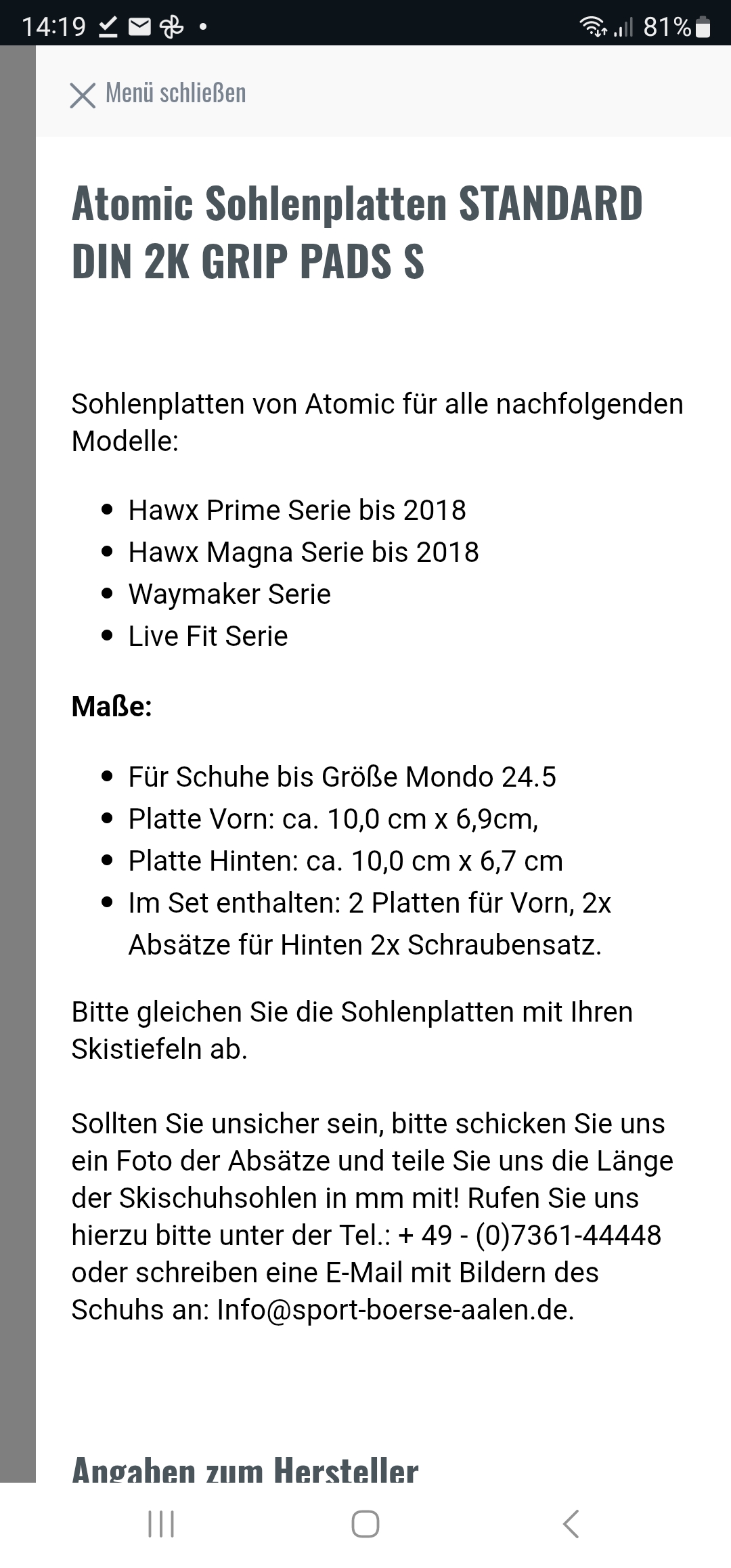 Am besten ist es bei Atomic selbst anzurufen, wenn dee Händler so kompetent ist...