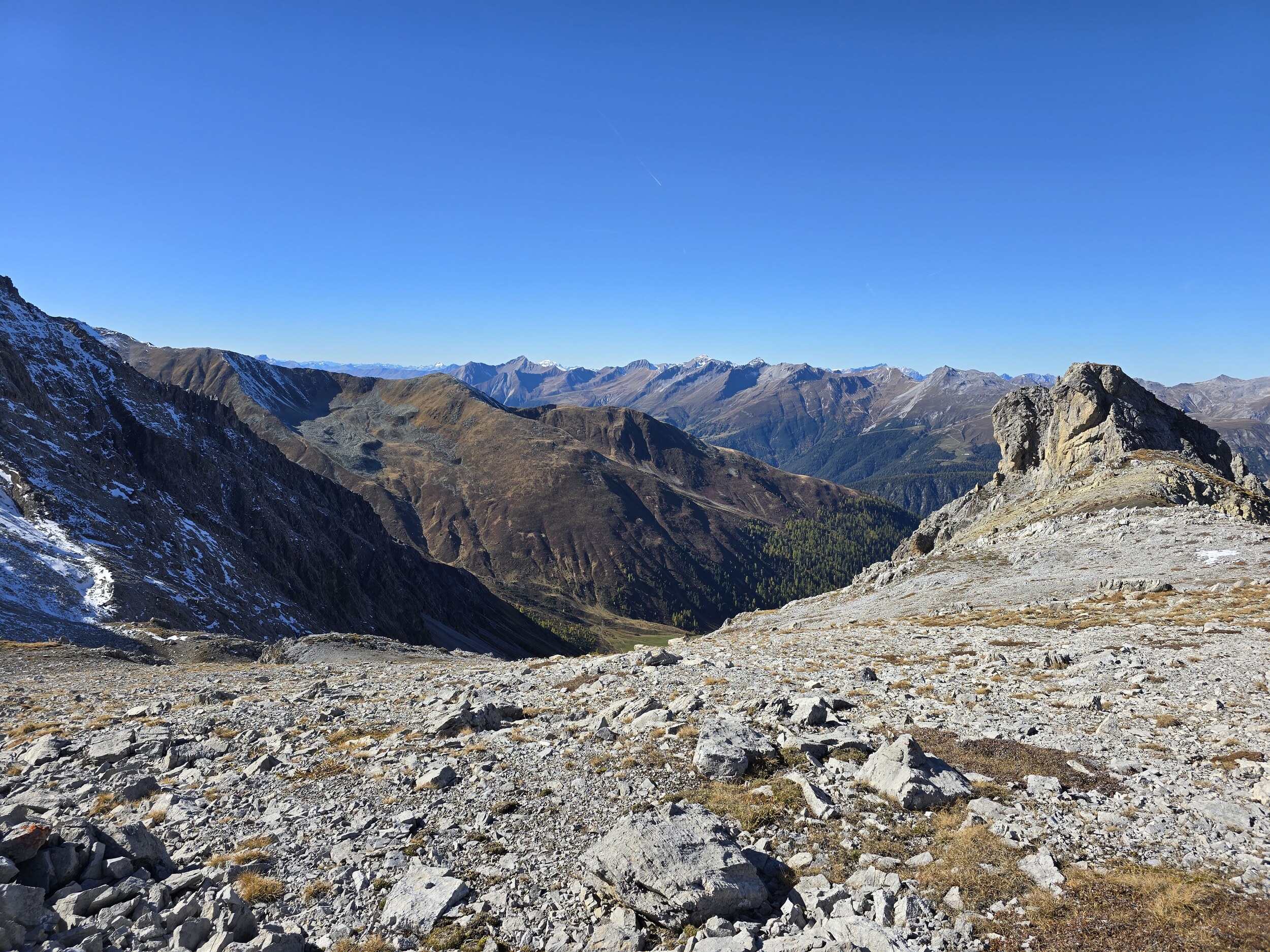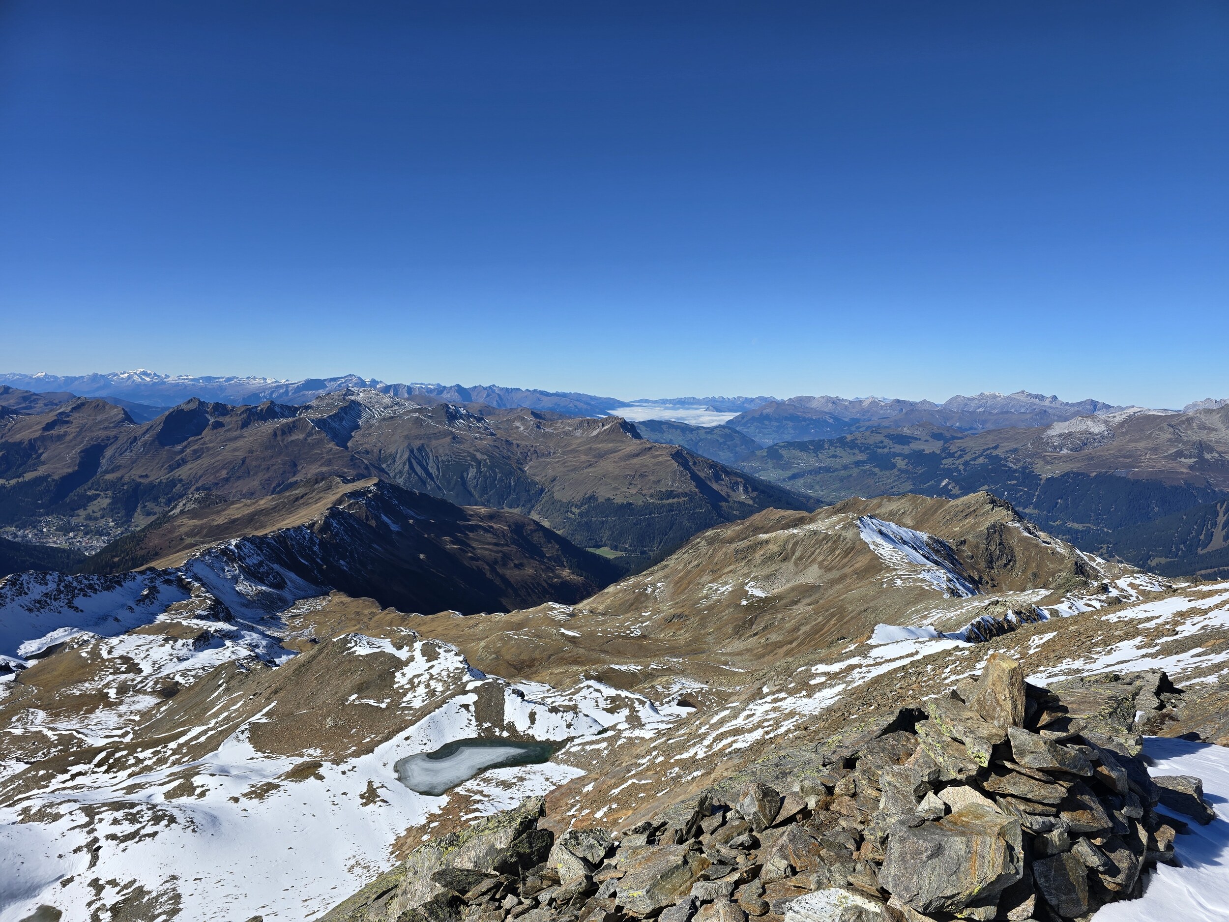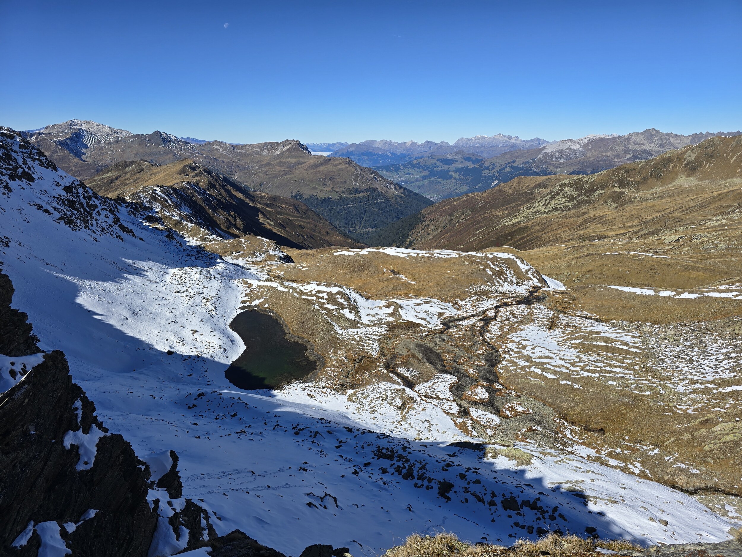Fazit: Eine absolut lohnenswerte Runde. Die Aussicht vom Seehorn, Hüreli und insbesondere vom Pischahorn ist einfach unglaublich schön, insbesondere jetzt im Herbst mit der klaren Luft und den verschneiten Berggipfeln. Es hat mich bereits längere Zeit gereizt, mal auf das Pischahorn zu wandern. Schliesslich wurden die Erwartungen aber deutlich übertroffen.