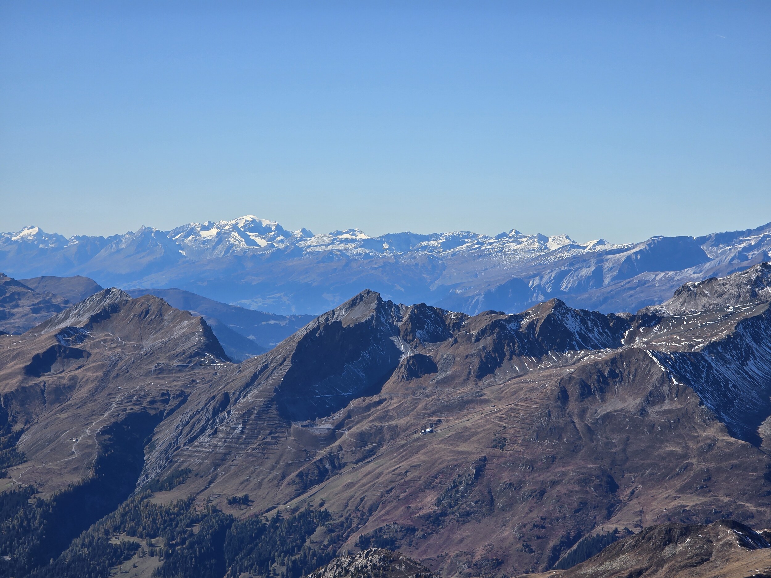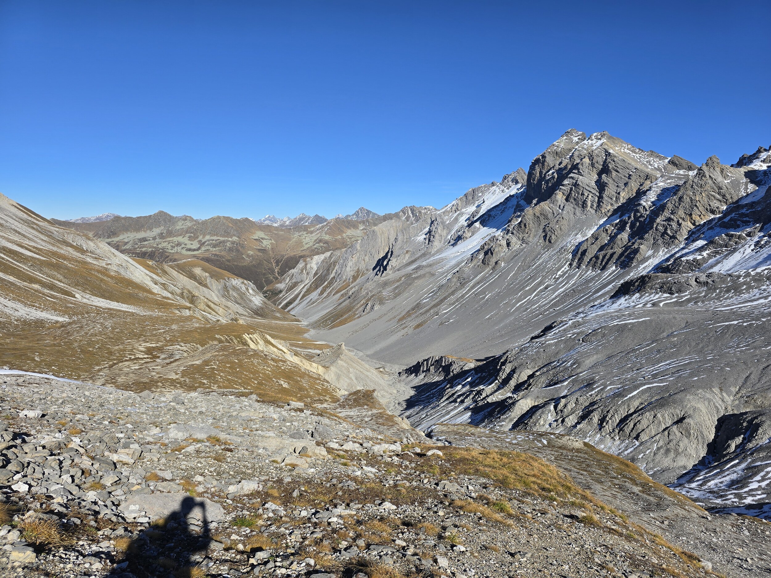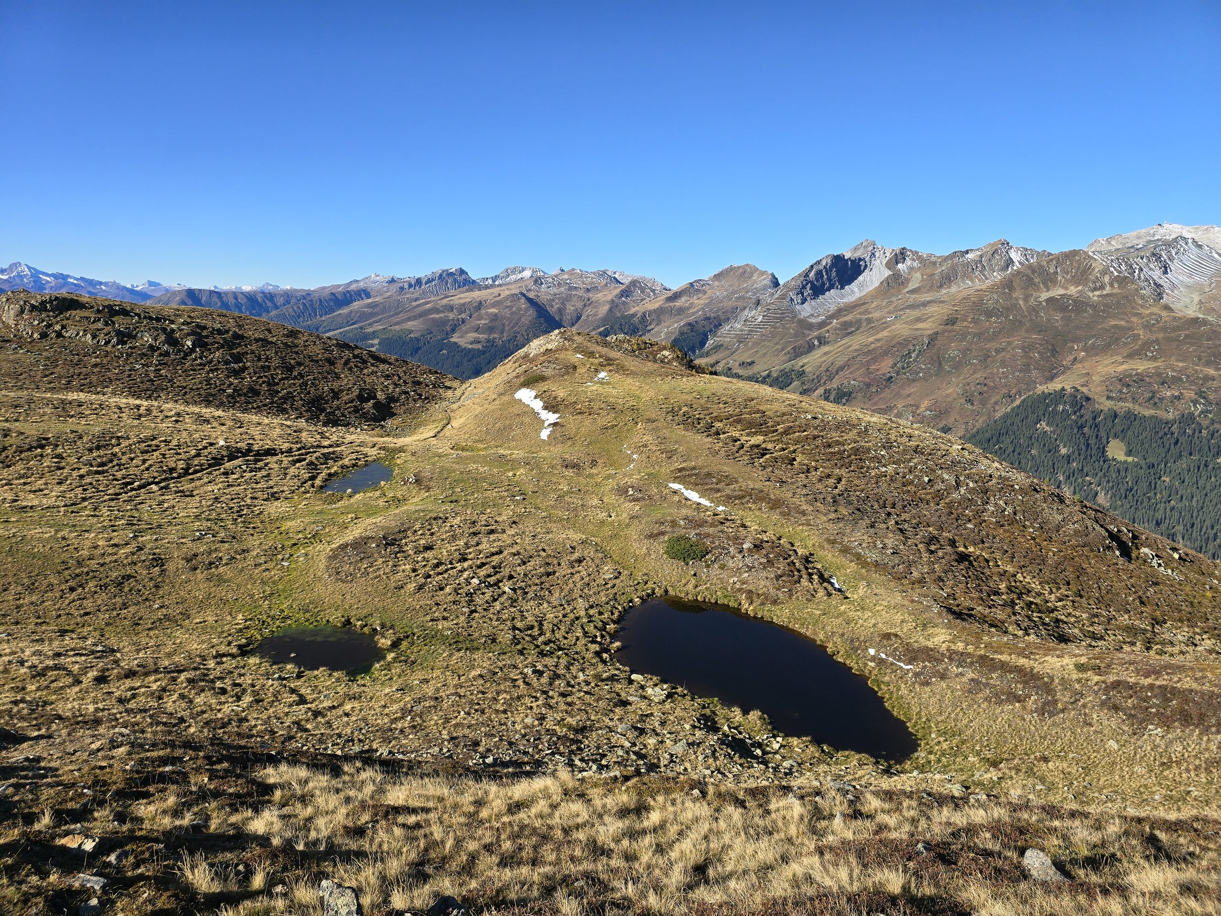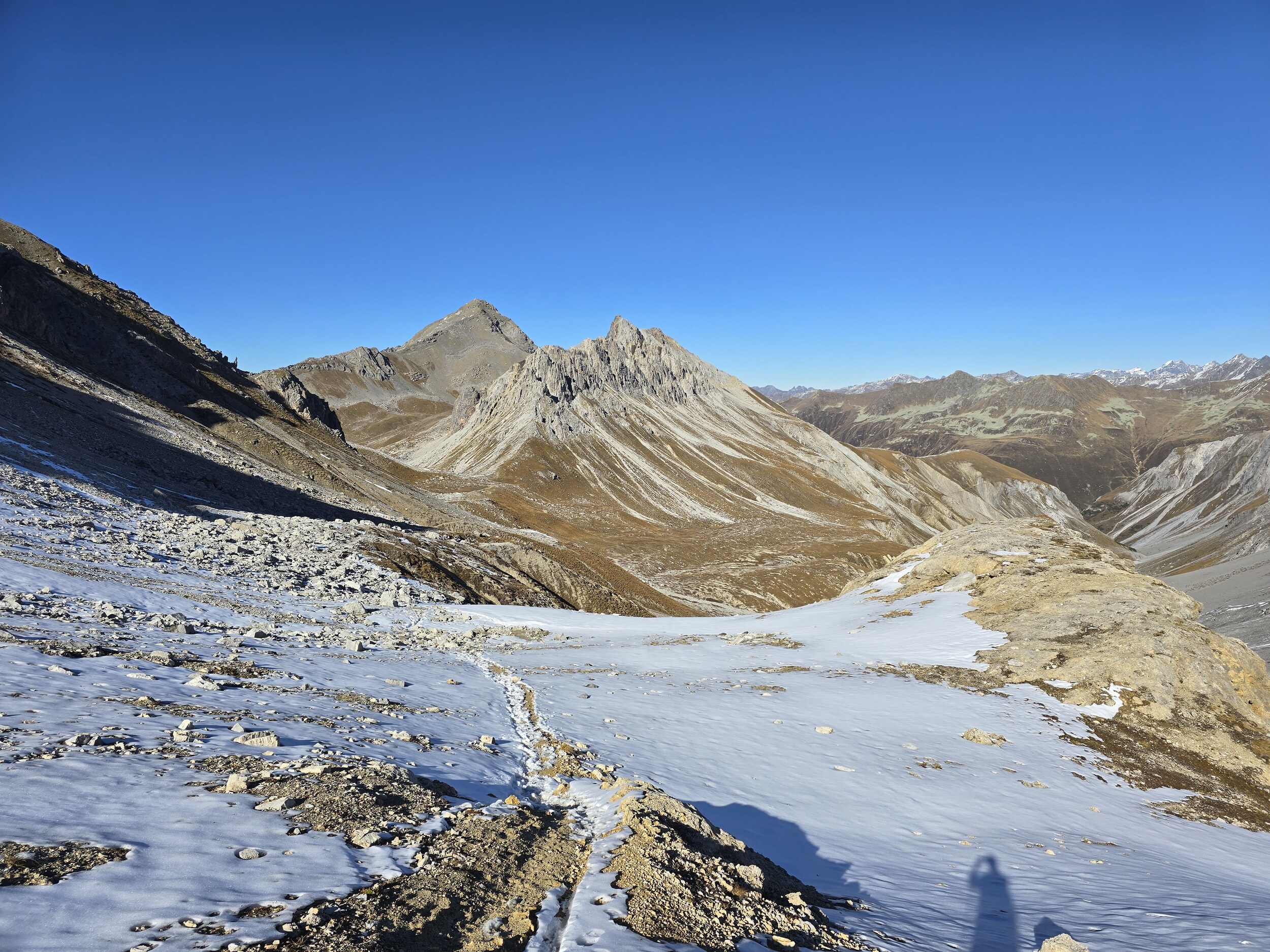 Fazit: Eine absolut lohnenswerte Runde. Die Aussicht vom Seehorn, Hüreli und insbesondere vom Pischahorn ist einfach unglaublich schön, insbesondere jetzt im Herbst mit der klaren Luft und den verschneiten Berggipfeln. Es hat mich bereits längere Zeit gereizt, mal auf das Pischahorn zu wandern. Schliesslich wurden die Erwartungen aber deutlich übertroffen.