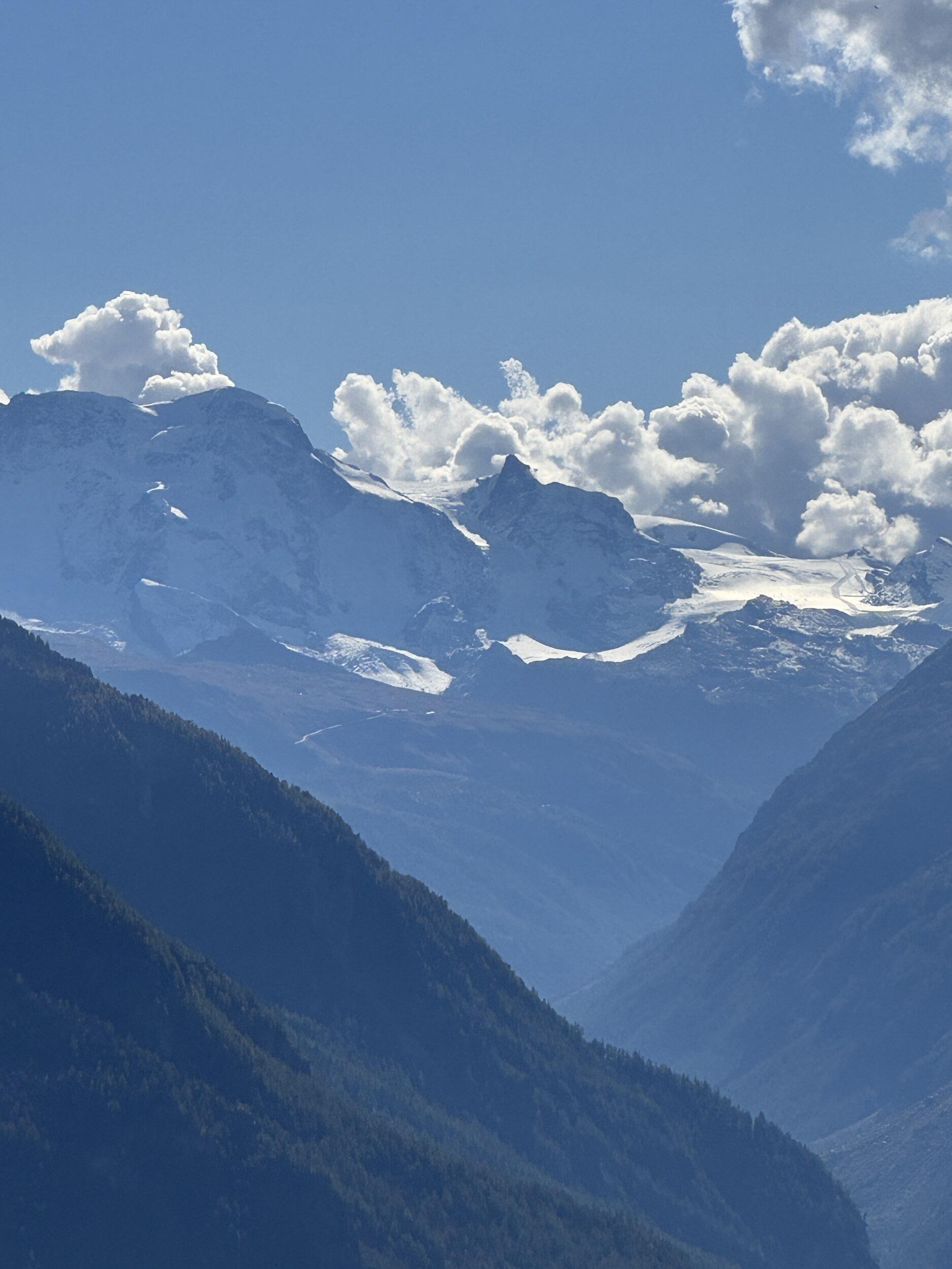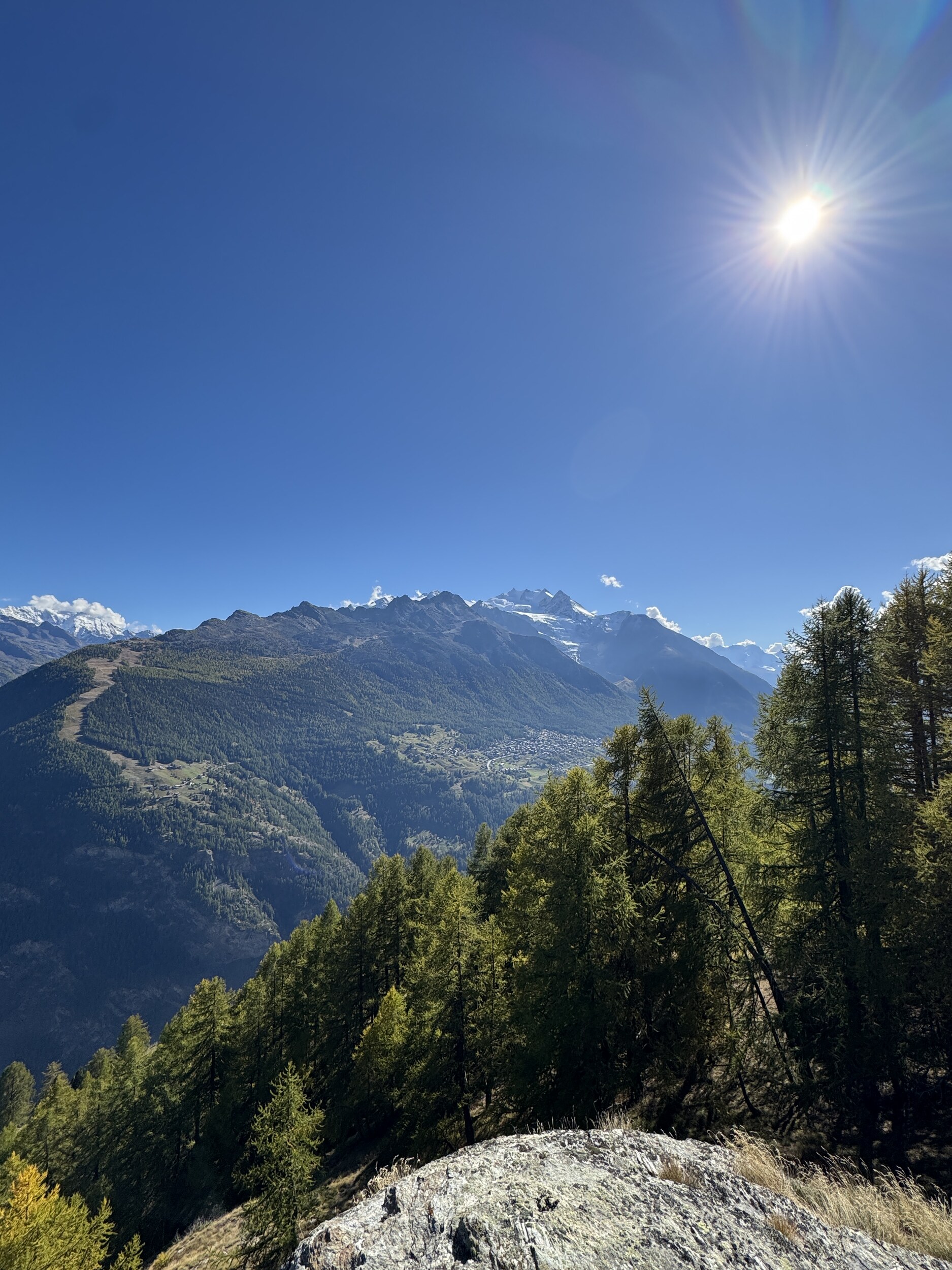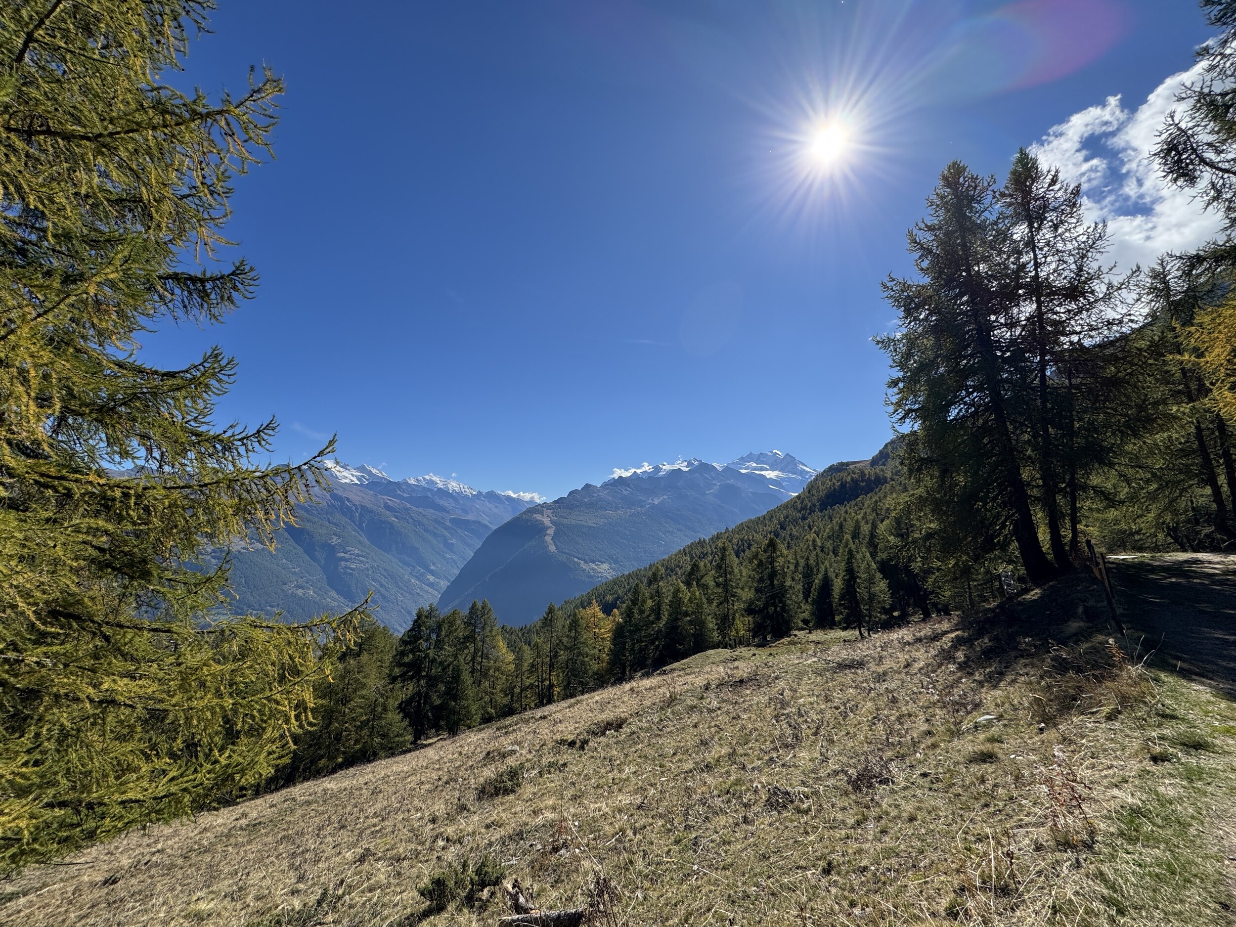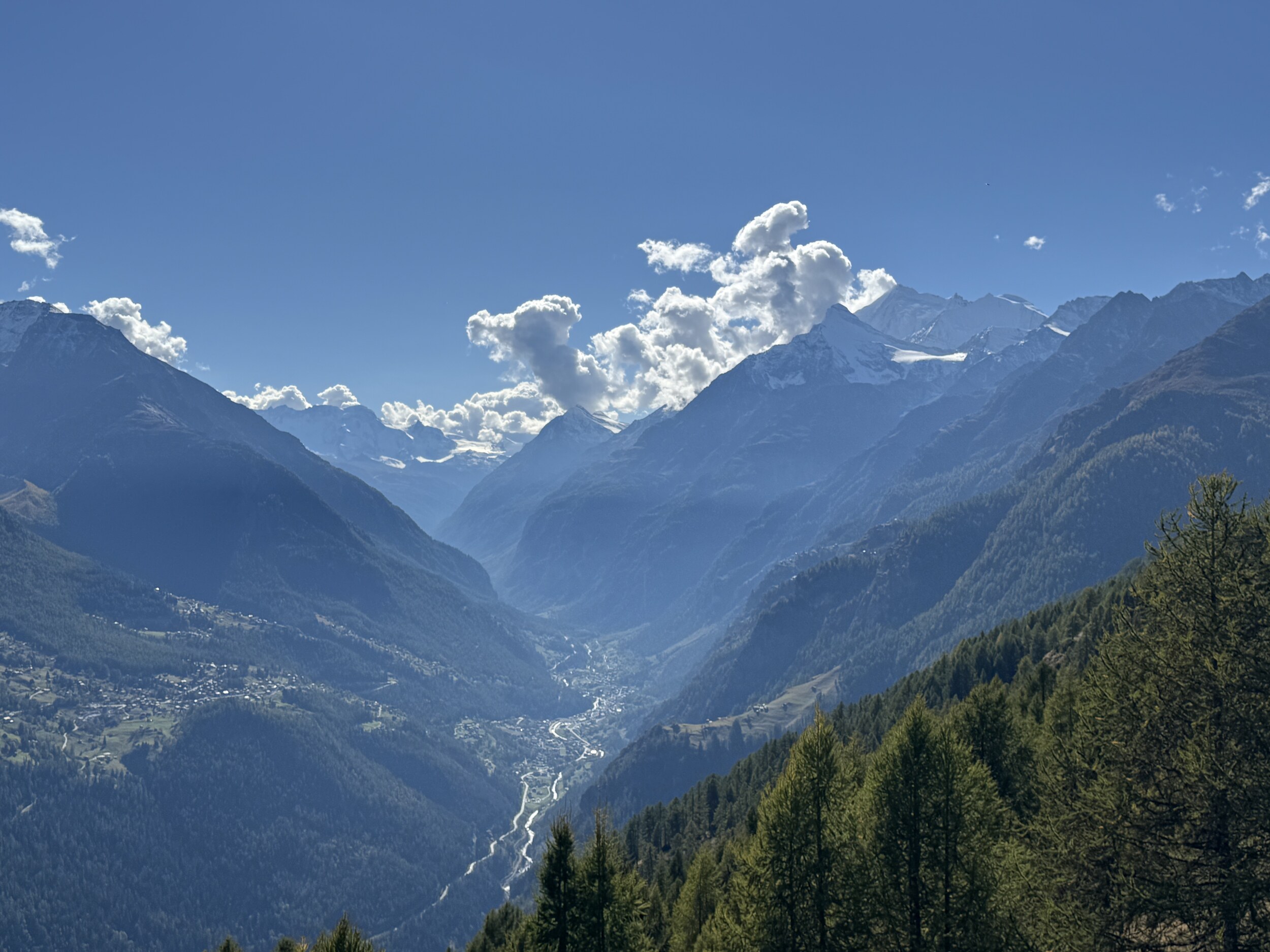 Noch einmal der mir allgegenwertige Blick Richtung Mattertal von unserer Terrasse aus