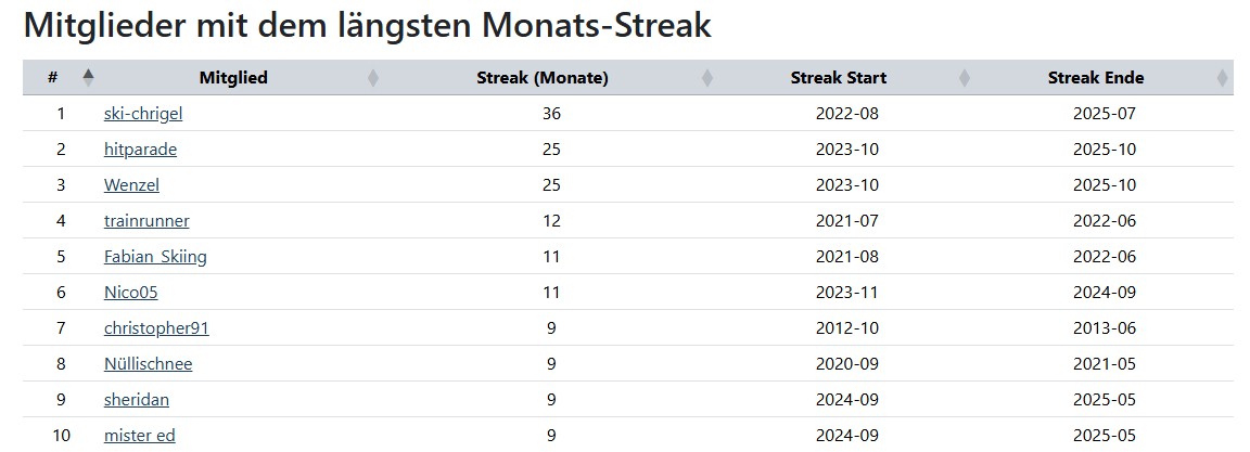 Mitglieder mit dem längsten Monats-Streak