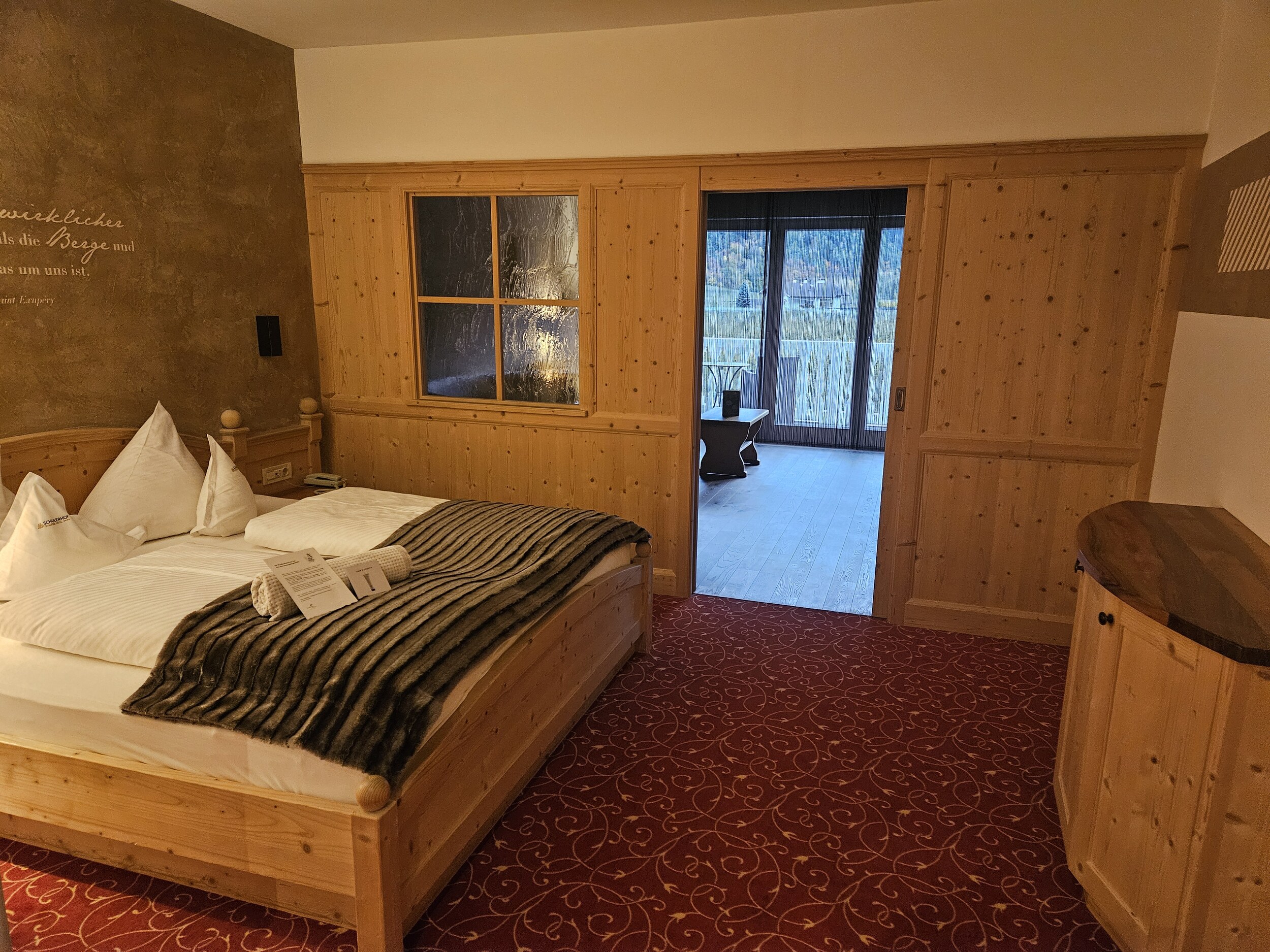 Verkehr erstaunlich wenig, ab Ulm bis zum Fernpass teilweise junge Hunde von oben, ab dann wieder aufhellend, kam ich nach zwei Klopausen und 7 Stunden im Schulerhof an, wo mich neben einem Upgrade von EZ auf Suite noch eine Porsche-Armada erwartete 🤣 Die haben hier auf einer Alpen-Tour Station gemacht.