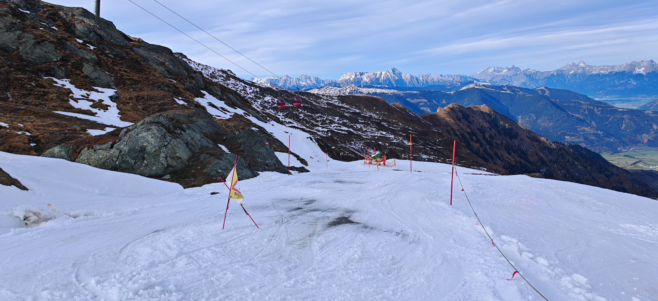 Schnee neben der Piste hatte es um die Zeit schon mal deutlich mehr gehabt als aktuell..