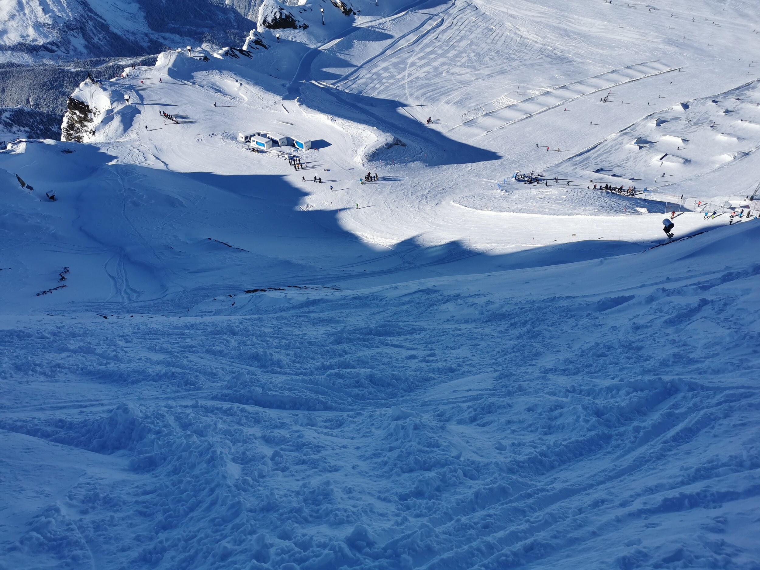 In der Früh ging’s… das Problem war die Querung unten von der Langwied-Piste zur Talstation Kristallbahn. Die ging am Nachmittag tatsächlich nicht mehr wirklich…