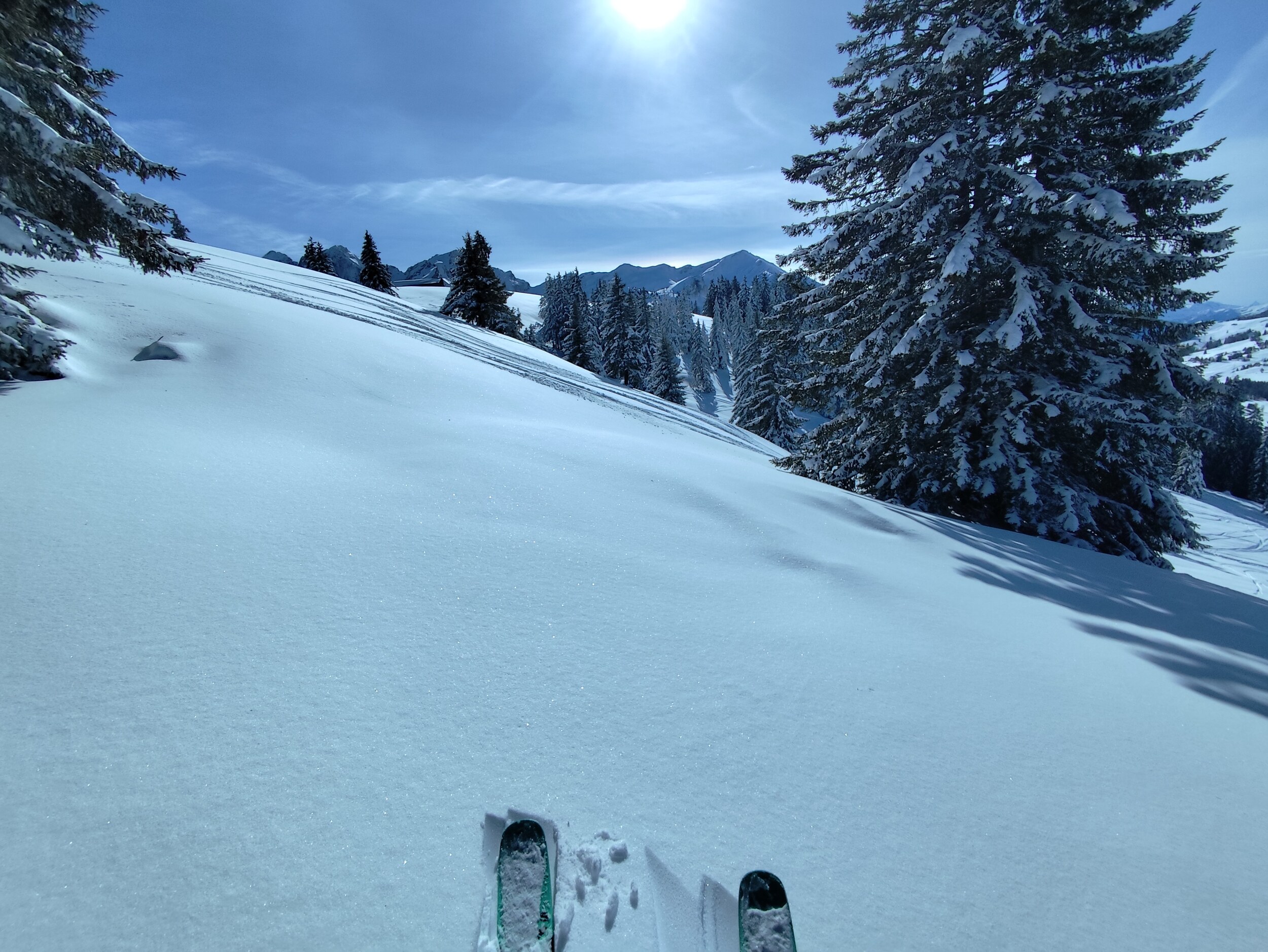 Ich erkunde zunächst die Pisten rund um den Col de Bretaye bevor ich mich Richtung Les Chaux aufmache.
