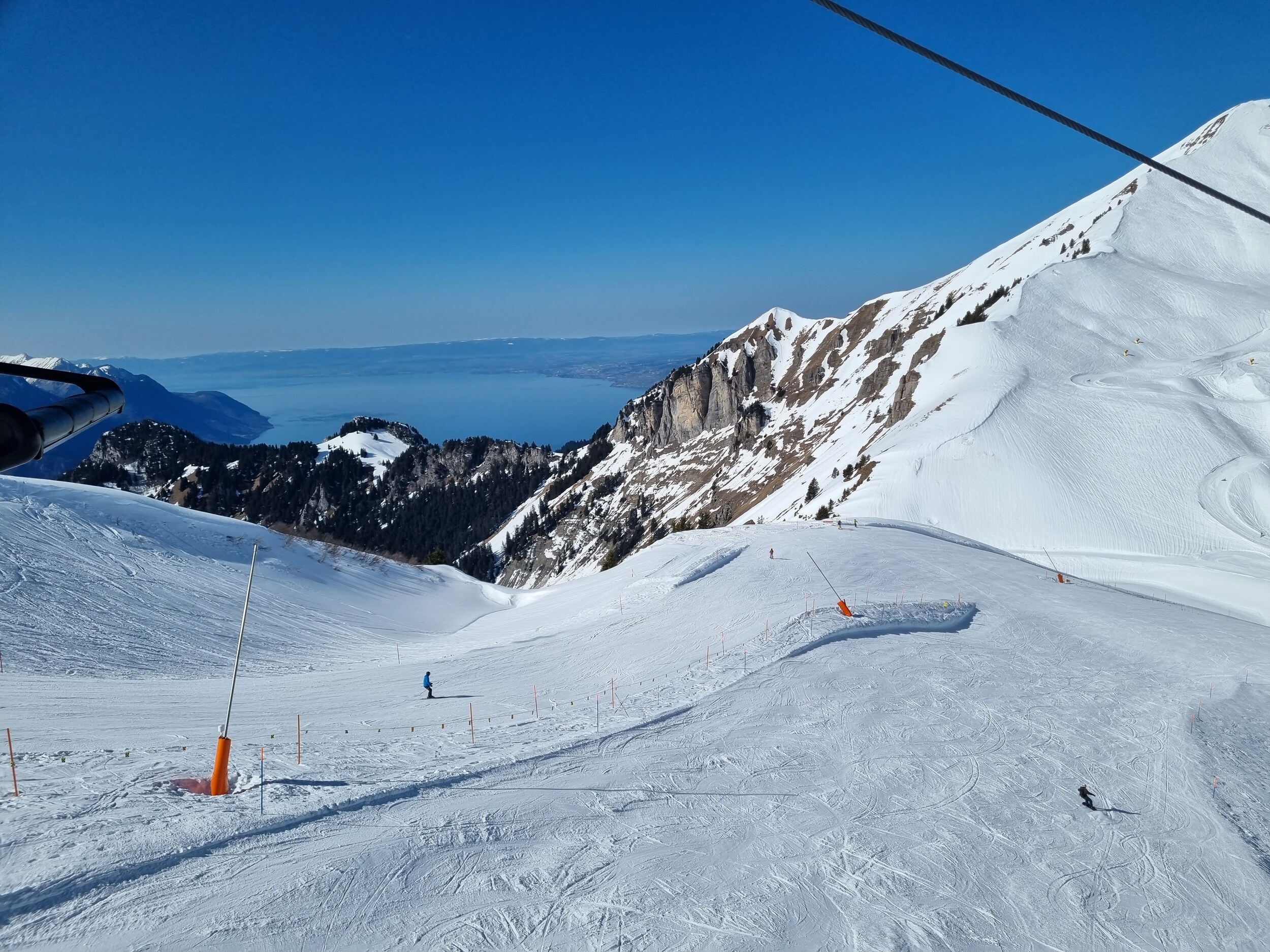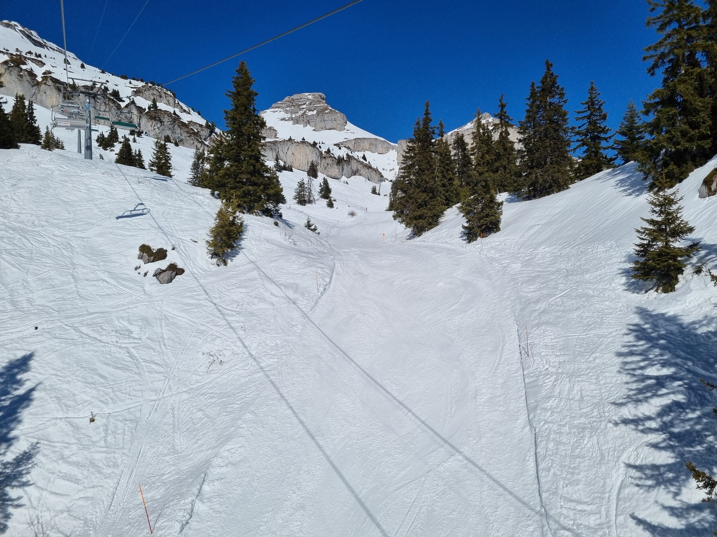 Übrigens auf der Seite von Gryon sind die Abfahrten am Croix des Chaux auch echt gut, aber heute sicherlich auch nicht so reizvoll. Und einiges ist mittlerweile dort aufgrund von Schneemangel auch geschlossen. Das Gebiet liegt insgesamt in der Tat ein wenig zu niedrig, es war auch zu lang viel zu heiss.