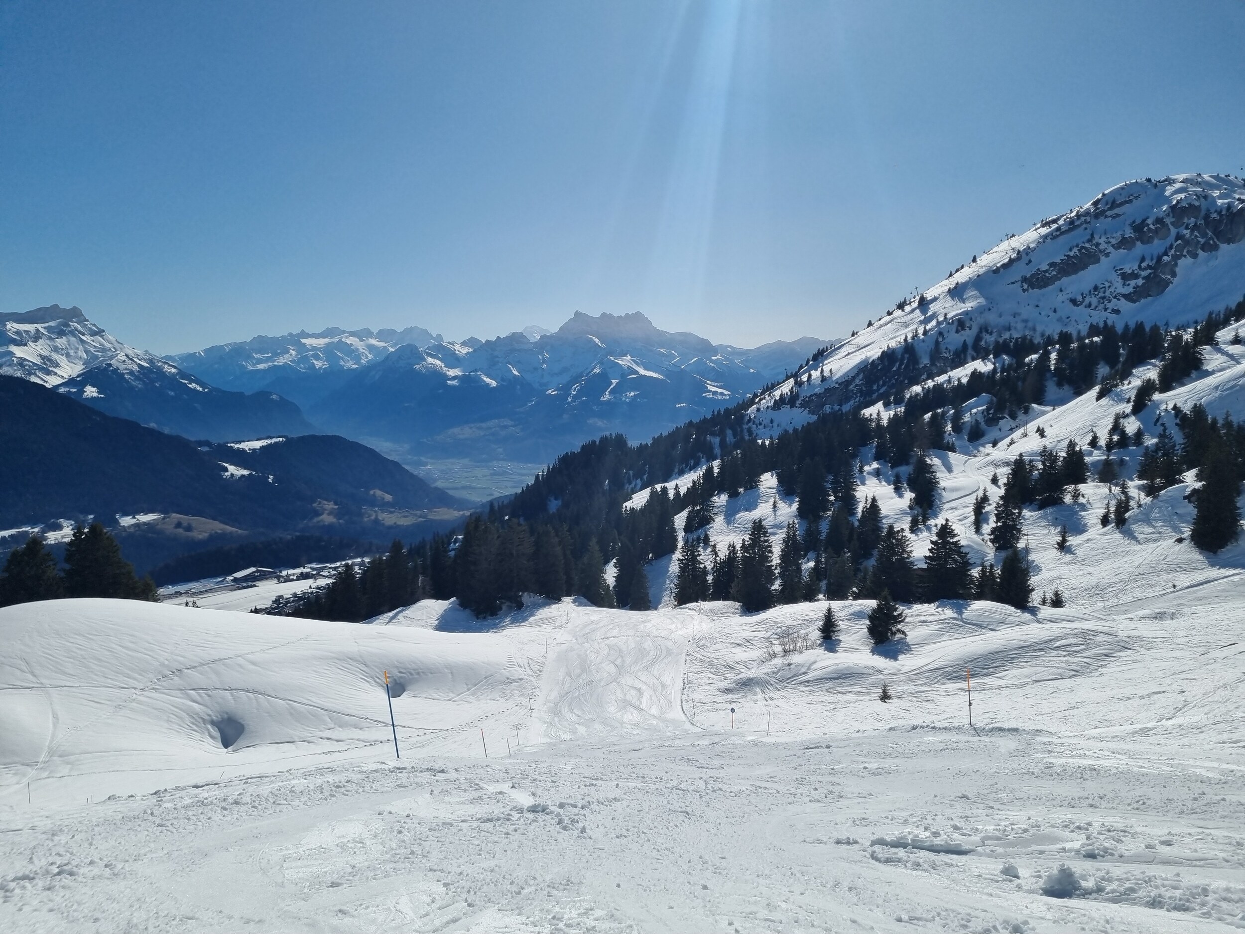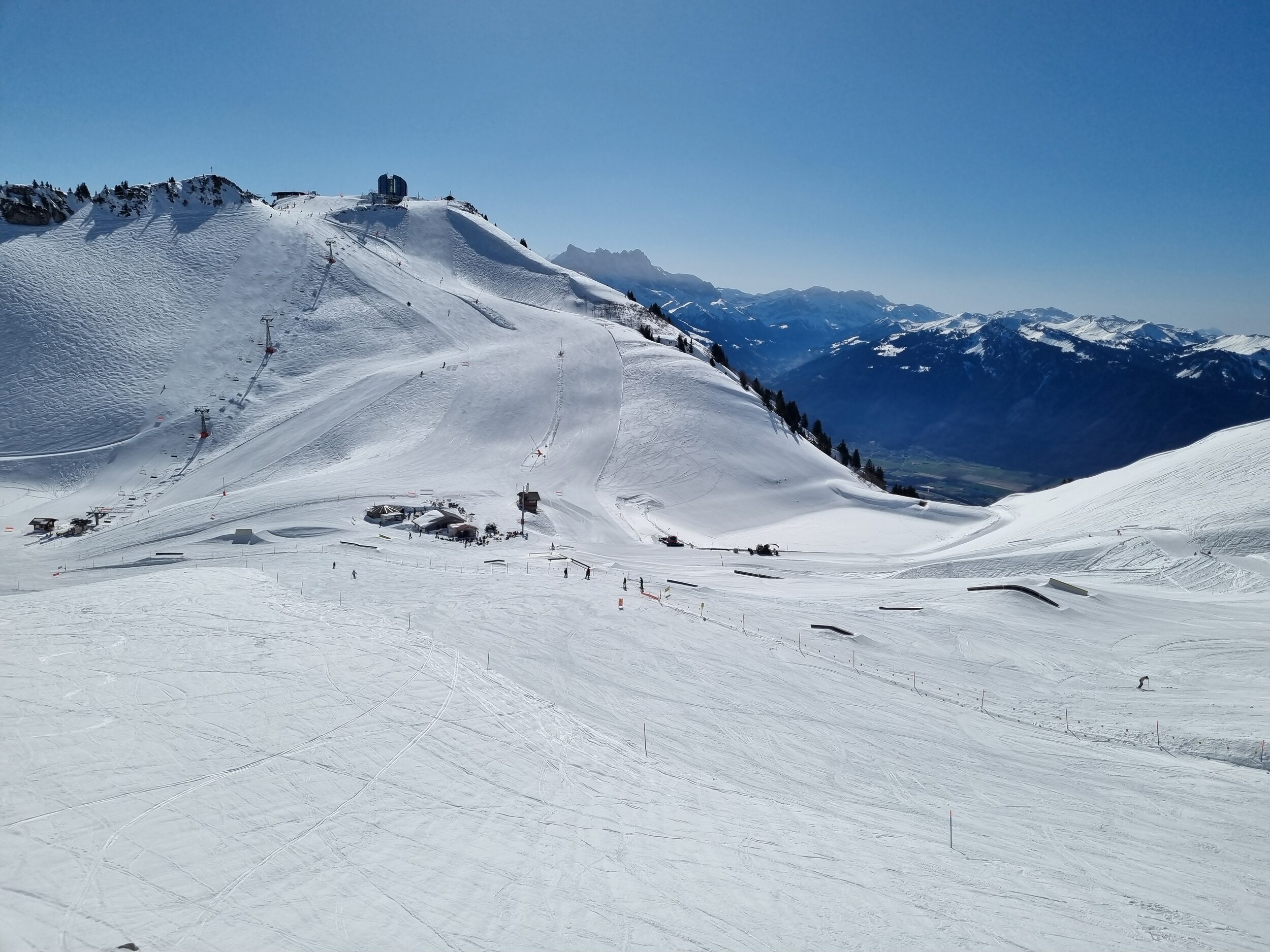 Kurz zusammengefasst: Schnee hats genug, und bis auf die Talabfahrt nach Gryon-Barboleuse, ist praktisch alles offen im Vollbetrieb. Am Vormittag sind die Pisten teils Betonhart und eisig, weichen aber schnell auf, und am Nachmittag herrscht purer Sulzschlacht wie sonst erst Ende April.