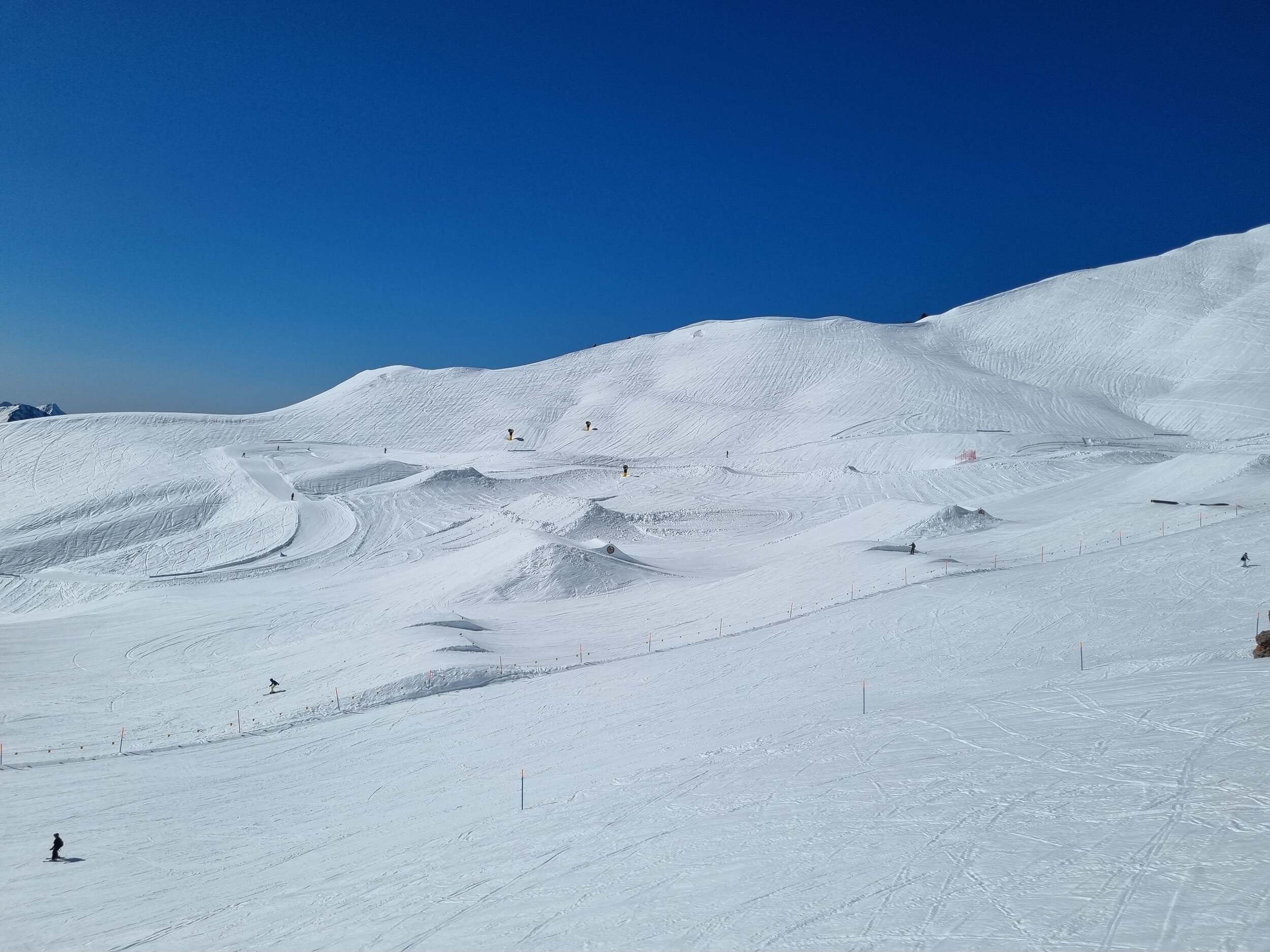 Im Moment sind die Bedingungen unglaublich gut, griffig, viel Naturschnee und menschenleer. Morgen Samstag dann sicher mehr los.