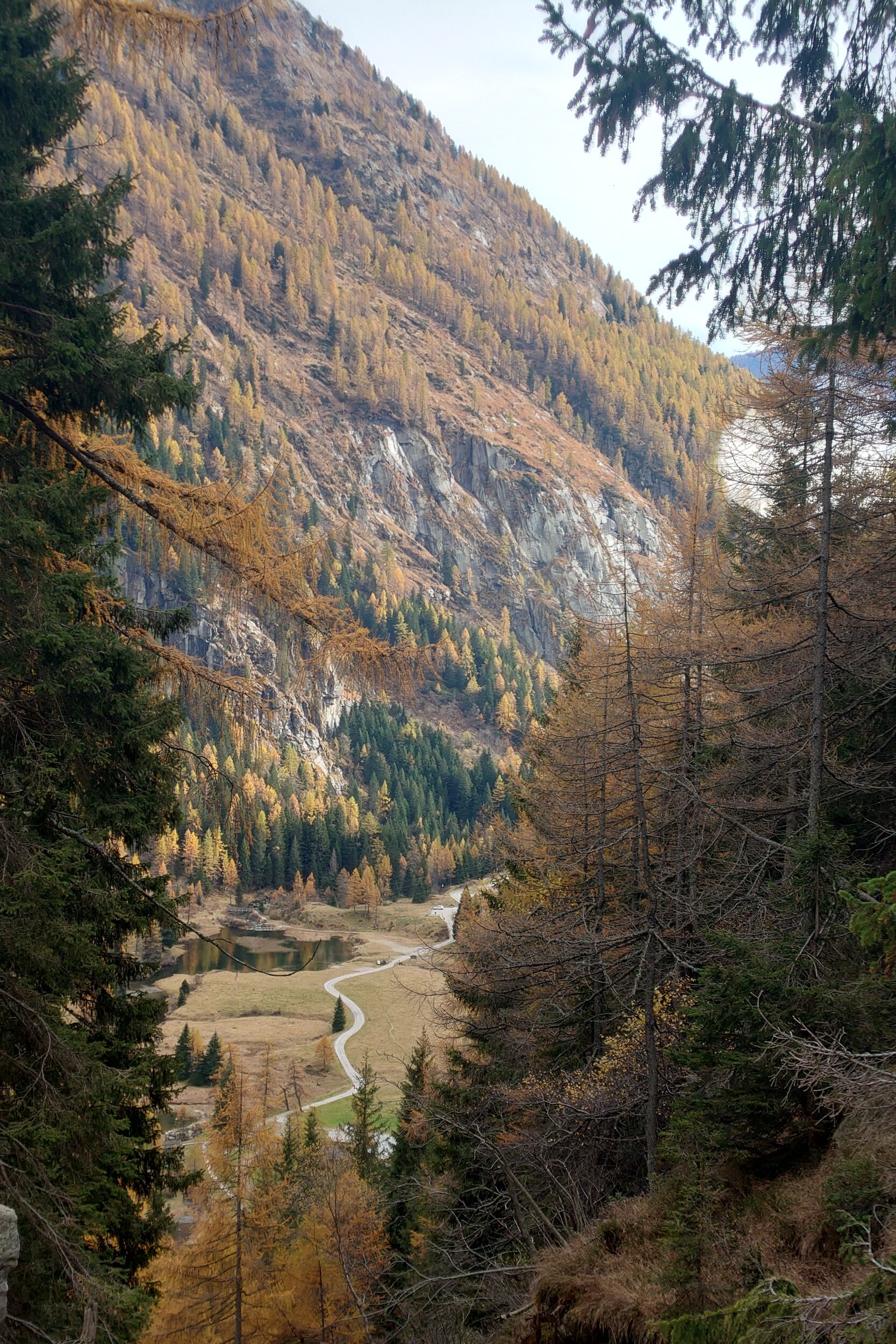 Die Farben der Bäume sind gewaltig, im Tal ist gar nichts los und etwas Wegsuche ist auch gefragt, denn die verschiedenen Kartenapps kennen alle andere Wege. Den Weg zum See habe ich doch noch gefunden und so gab es noch einen sehr erfrischenden Schwumm als Krönung der Tour.