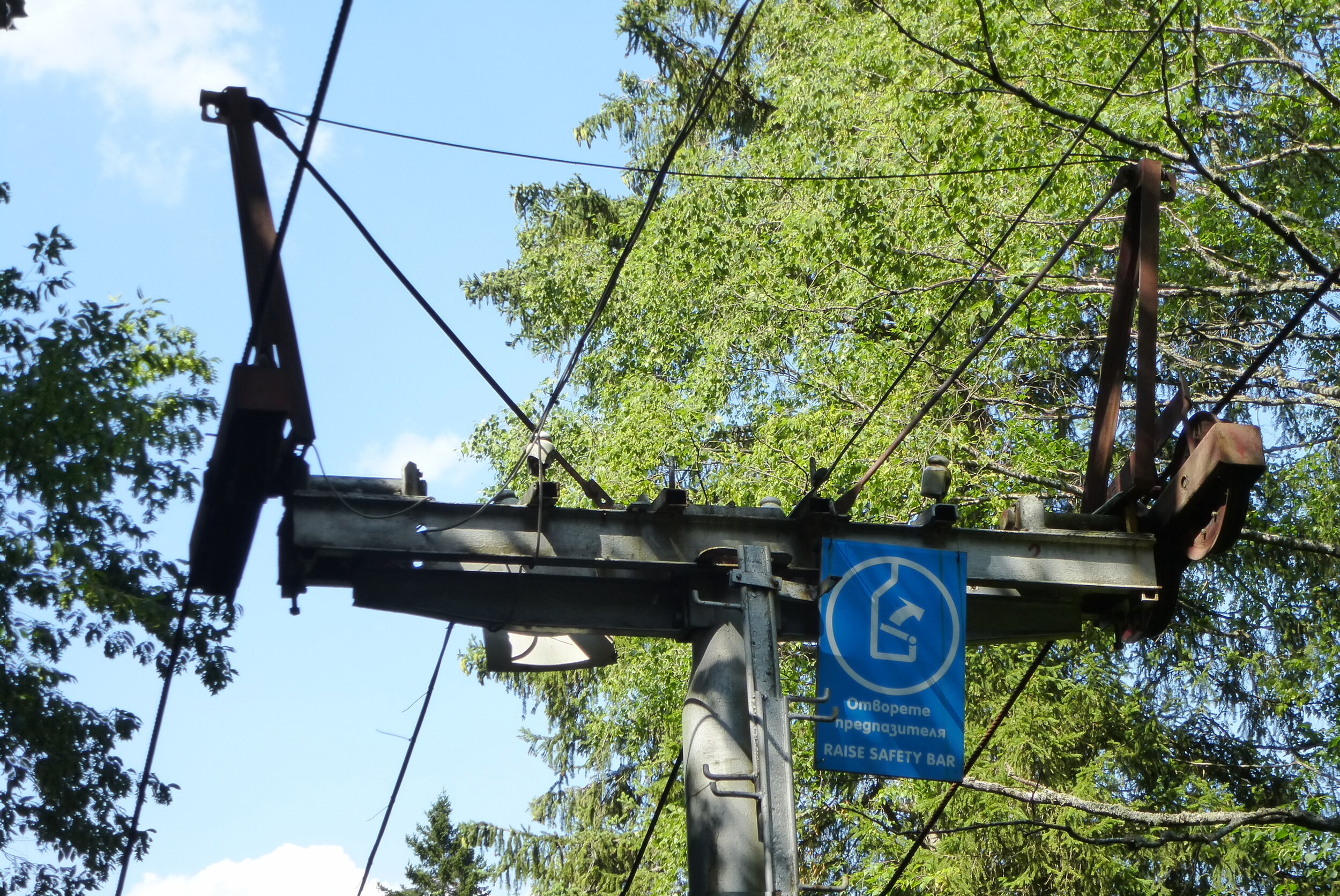 Danach bin ich zur Talstation der DSB Dragalevtsi – Saslona gefahren, die 1955 vom Unternehmen Intransmash gebaut und 2017 stillgelegt wurde. Man muss sagen, dass es damals topmoderne Bahn war; selbst in ganz Österreich gab es erst zwei DSBs in St. Anton am Arlberg (die dritte – die Seekopfbahn – folgte erst ein Jahr später). Die Klemmen wurden von Girak geliefert, und auch die Sesselbauform ist der damaligen Girak-Bauweise sehr ähnlich. Die 1770 m lange Strecke mit 28 Stützen überwindet 441 m HU. Ich habe die Talstation und die ersten 5 Stützen gesehen.