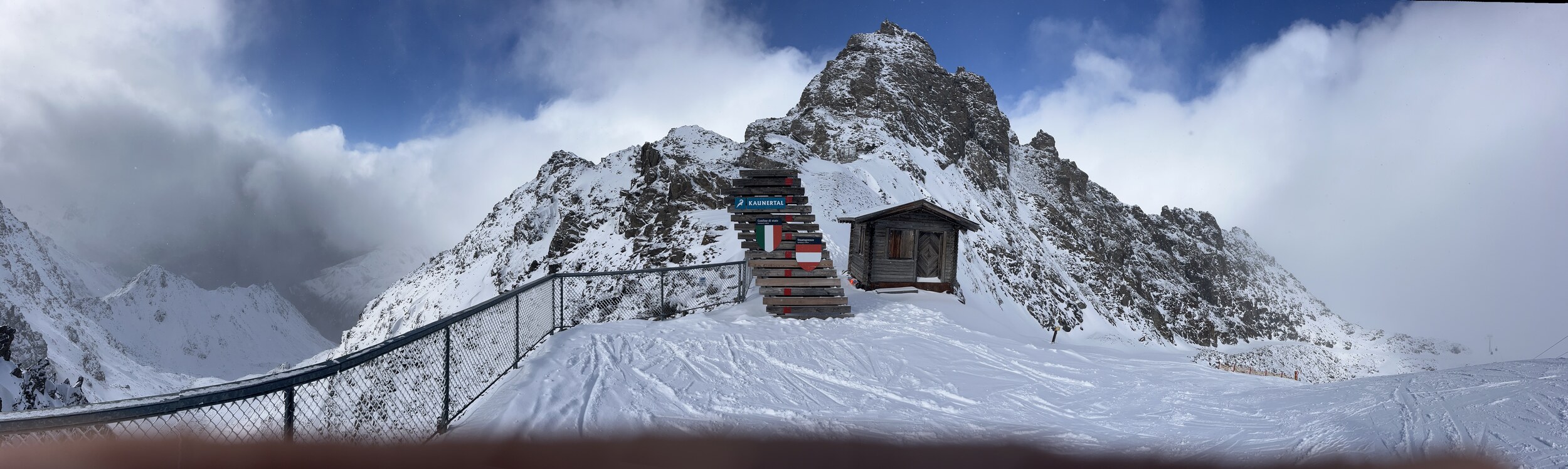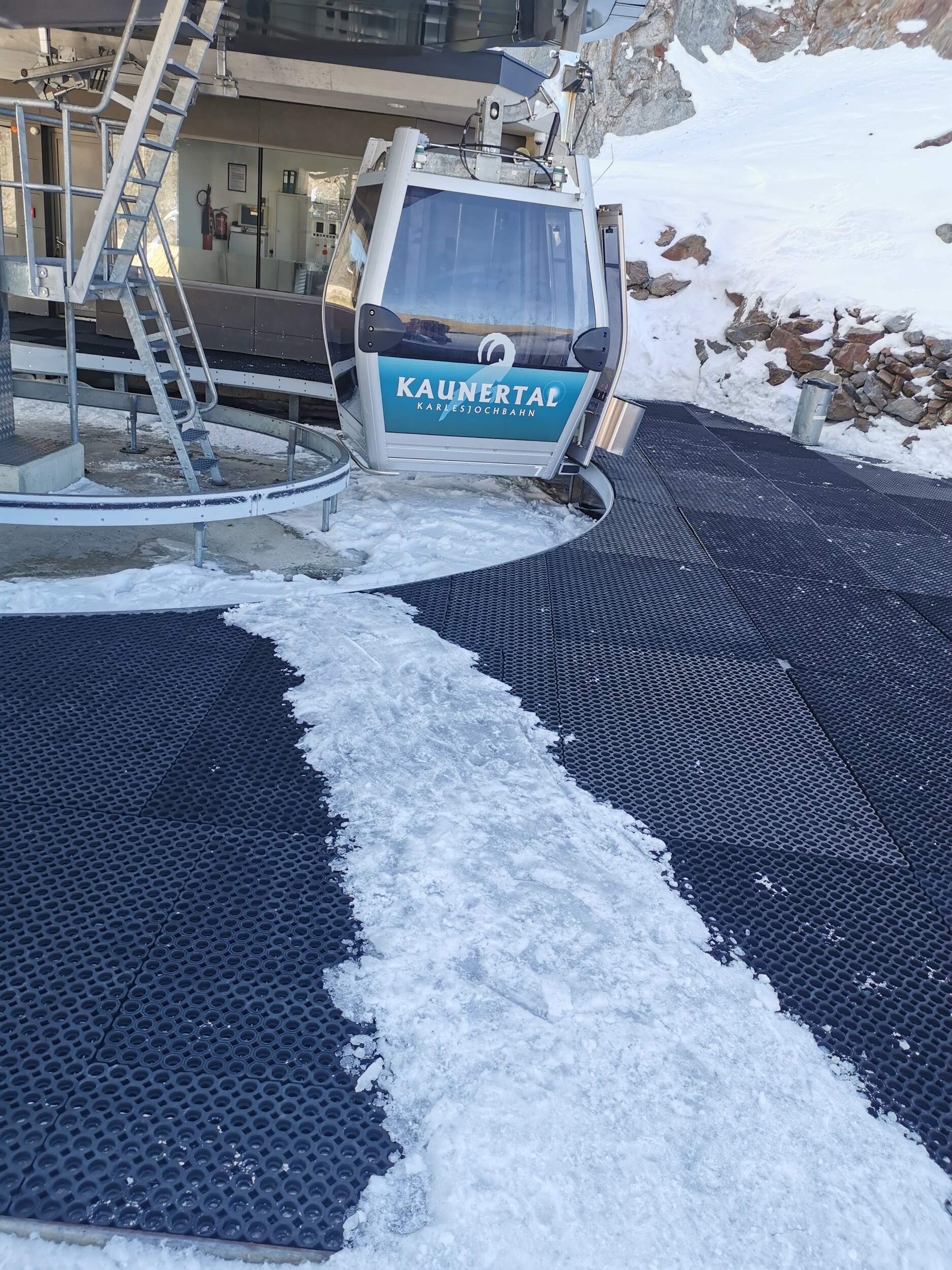Der Wind hat mittlerweile aufgefrischt. Ab der Bergstation vom neuen SL kommt man wahrscheinlich nur mit Schieben zum Tunnel. Am Falginjoch sind drei Varianten offen. Blick vom Joch Richtung Nauders: Am Nörderlift fehlt noch Schnee. Die Eisgrotte sieht traurig aus. Hier der Tunnel und neuer SL auf einem Bild: Wirklich voll war es nie, ab Mittag dann noch weniger. Am Karleskogel wurden die belegten Stücke freigegeben. Dadurch vermeidet man eine Eisplatte, die unten rausgekommen ist. Die EUB stockt manchmal, das Wetter hält sich noch sonnig.