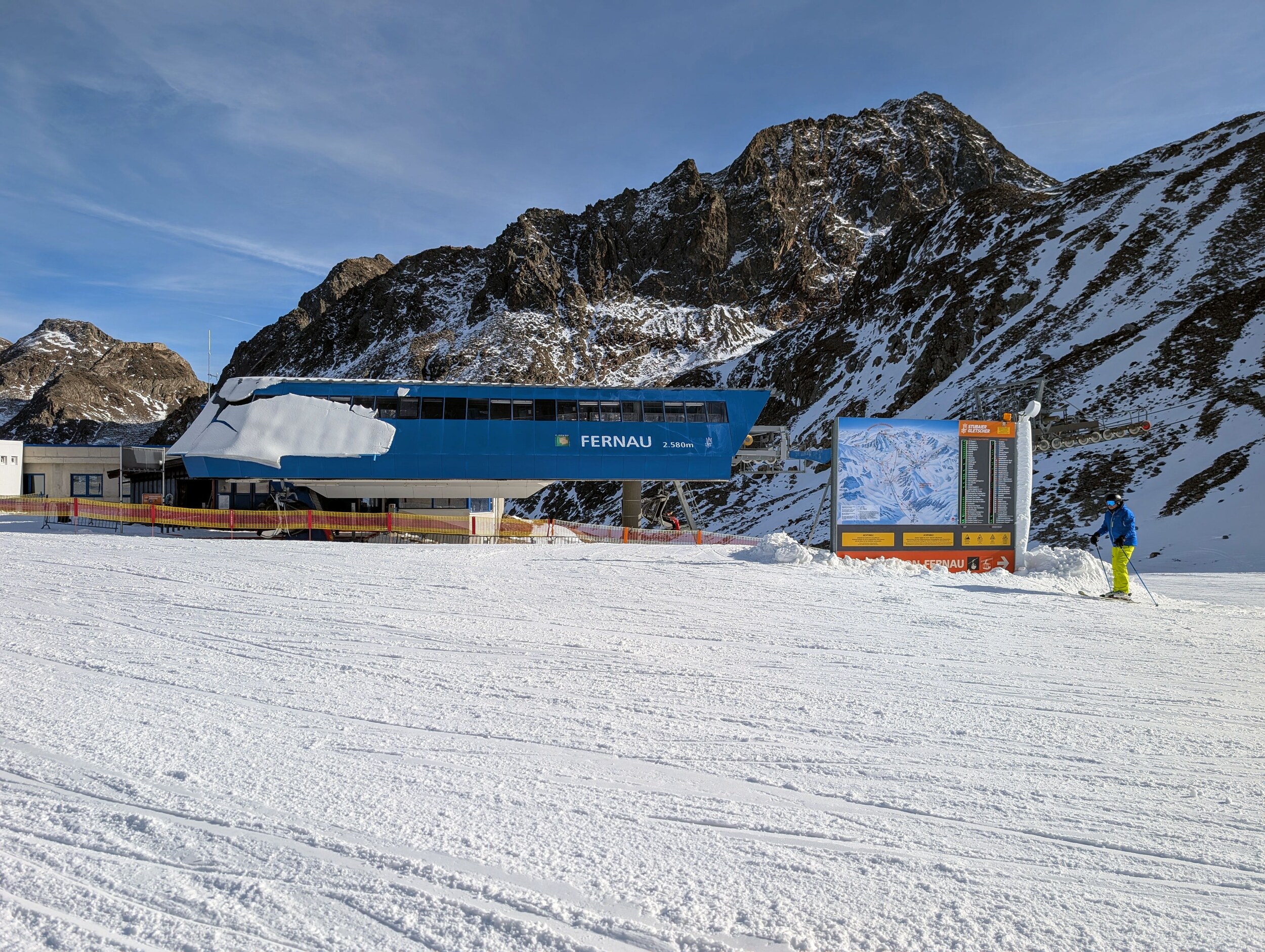 So 9:30 beginnt der Skitest, das hab ich jetzt gerade so geschafft nachdem ich den Junior noch in die Schule bringen musste, dafür ist 9:30 am Gletscher eh der absolute best case vom Verkehr im Inntal :)