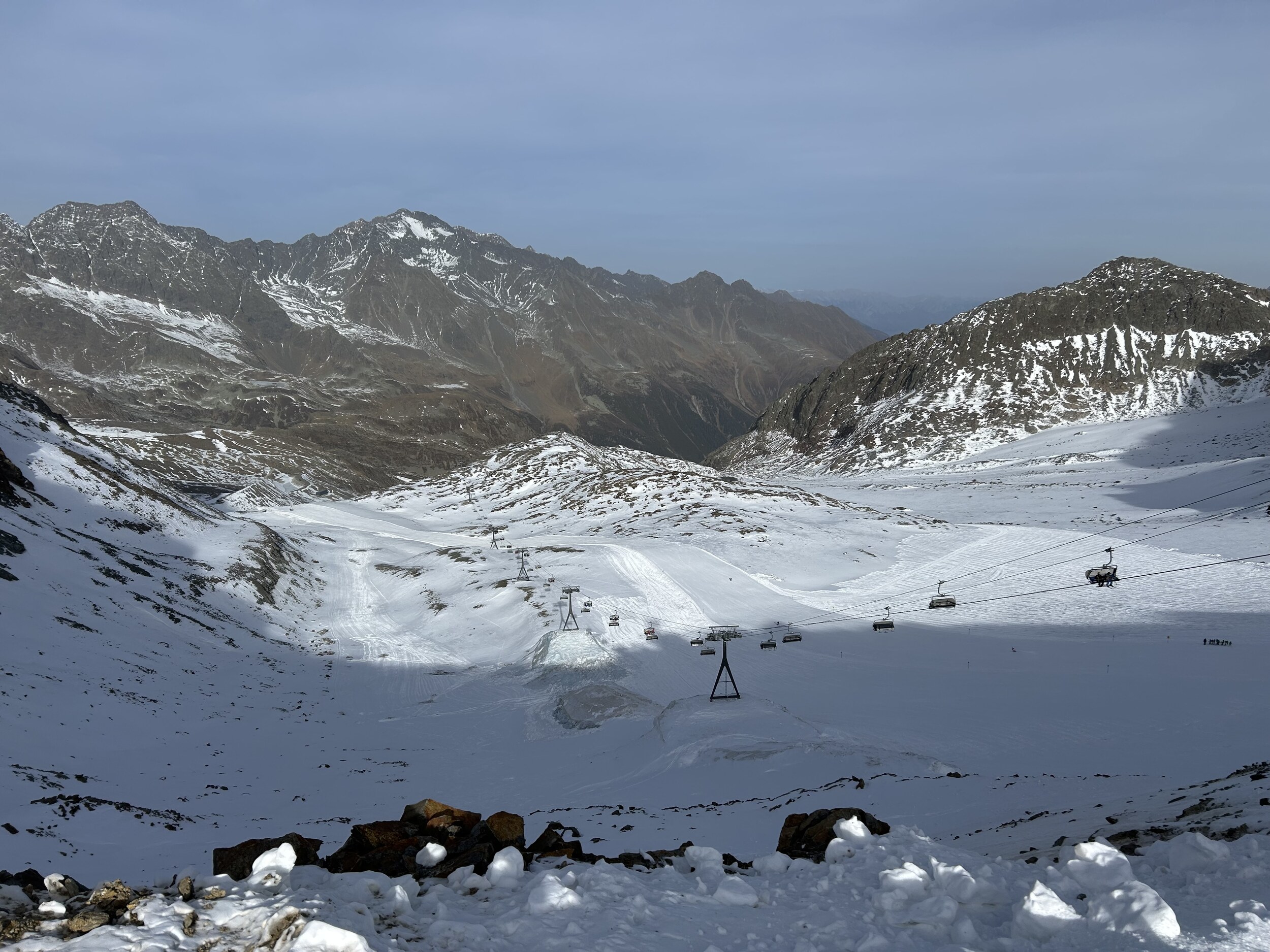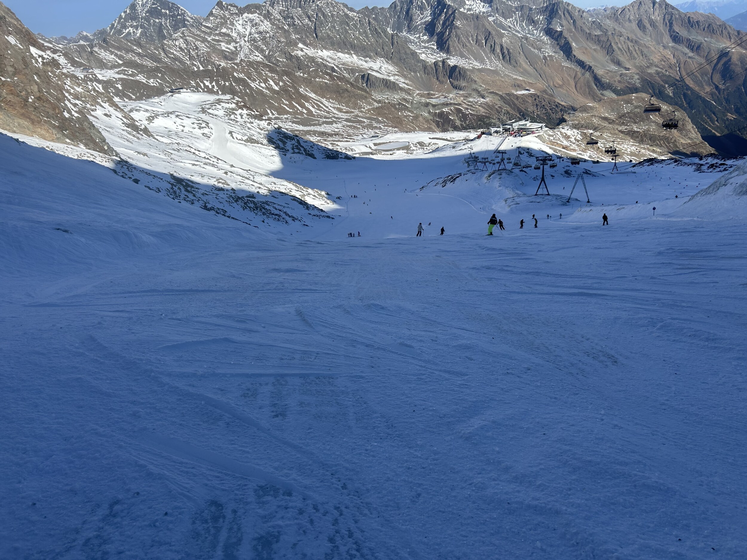 Abgesehen von den wirklich argen Steinen nach dem Liftausstieg, fand ich die Eisjochpiste heute mit Abstand am besten, weil sie abgesehen vom kurzen Tragödienhang kaum abgerutscht und sehr griffig war.